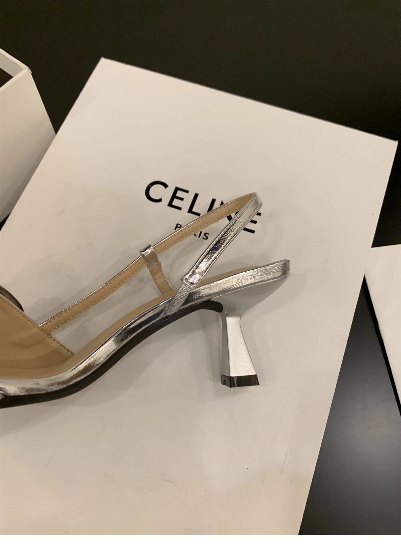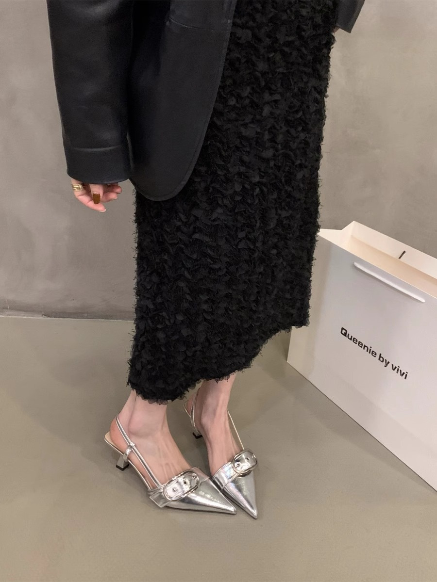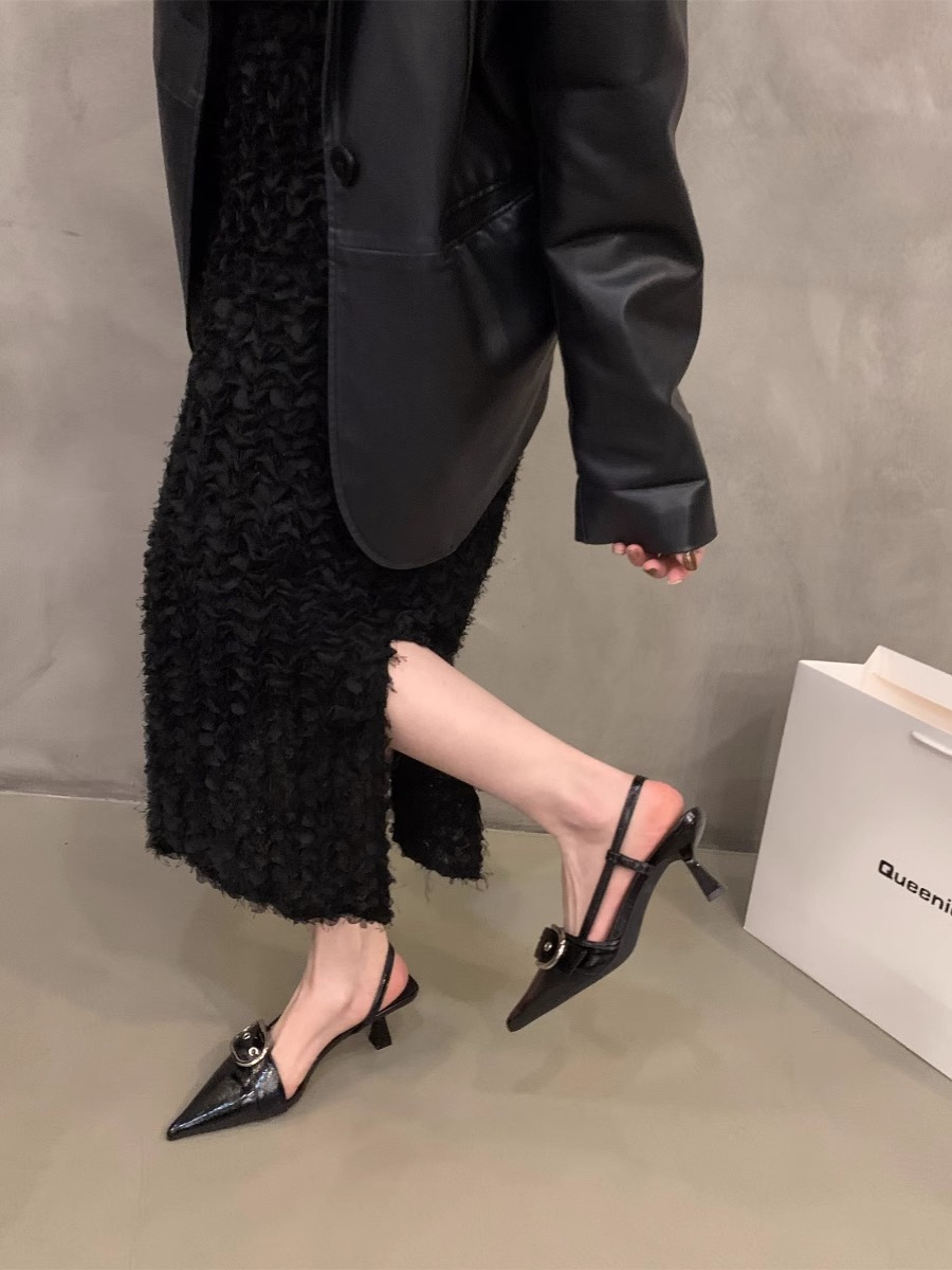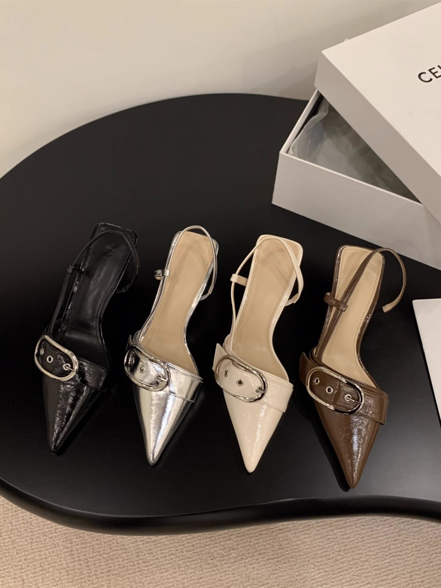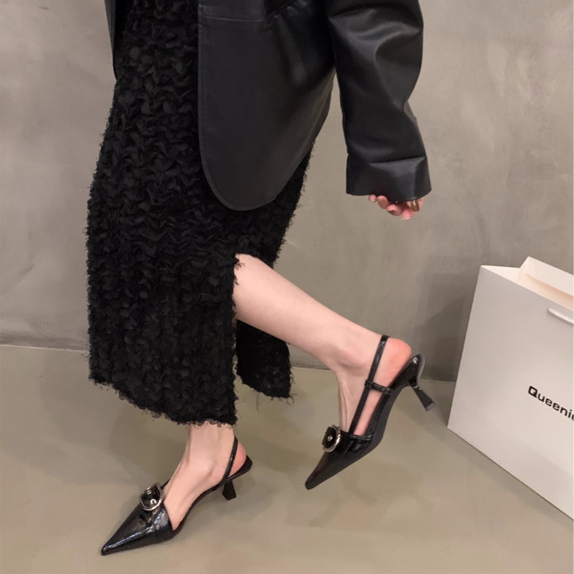 슈퍼 우아한 Baotou 포인팅 벨트 버클 얕은 하이힐 여성 2024 봄과 여름 여성을위한 새로운 스틸레토 힐 하이힐 샌들스토어 가기