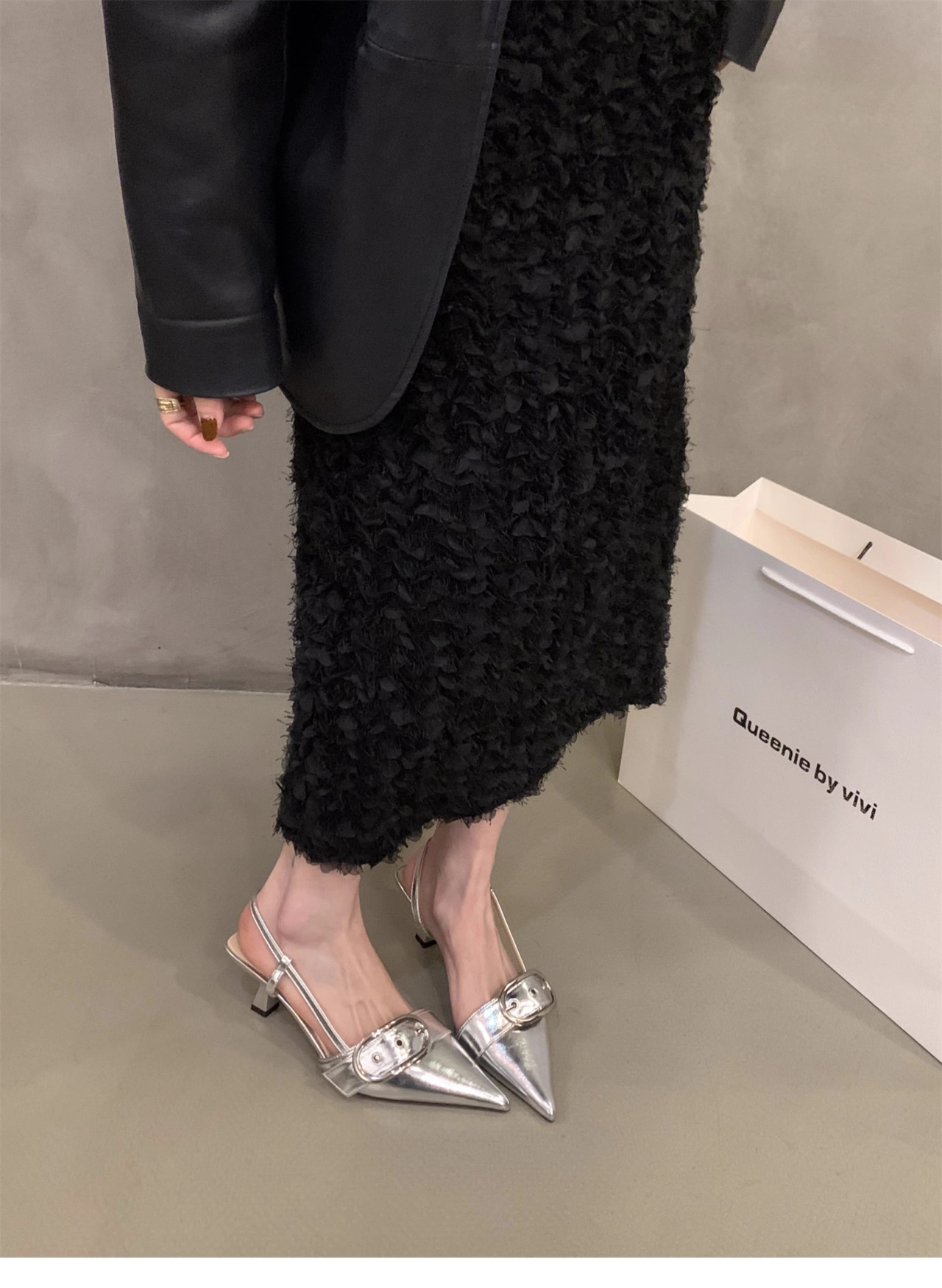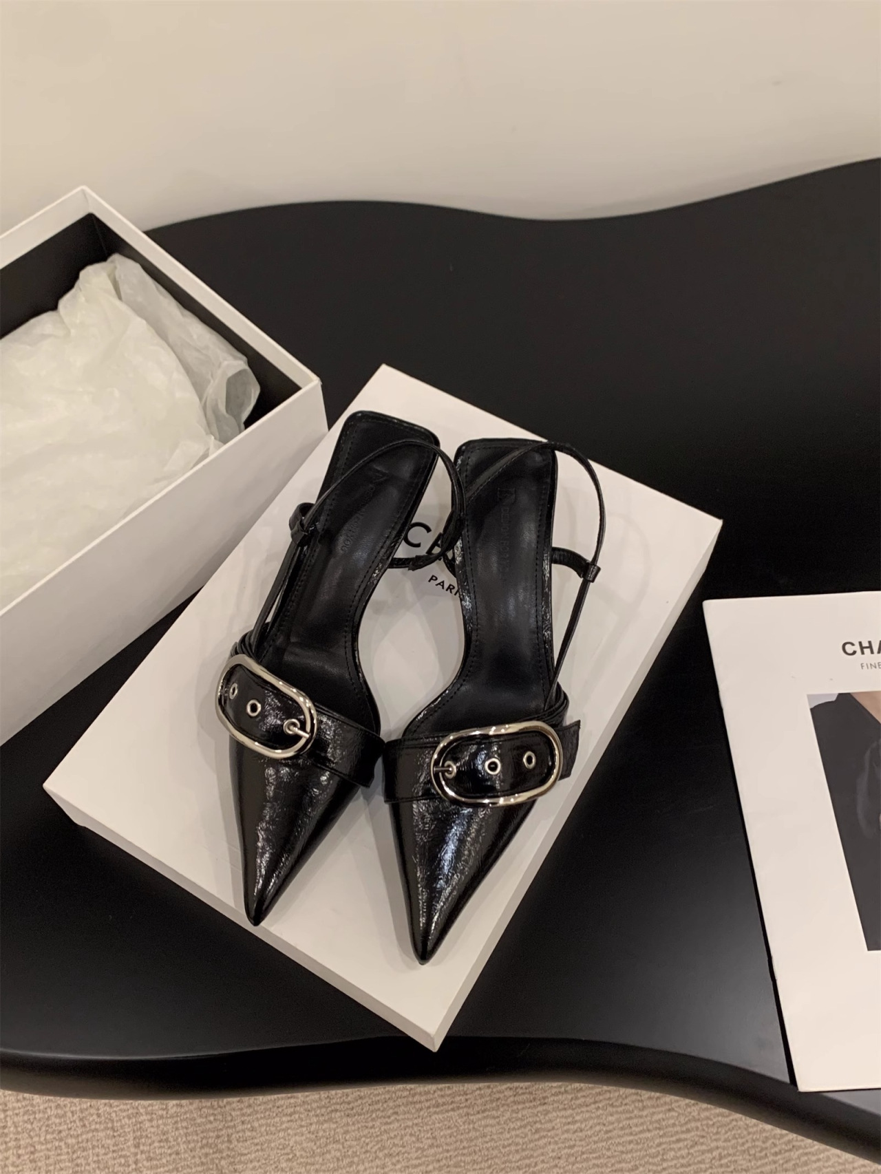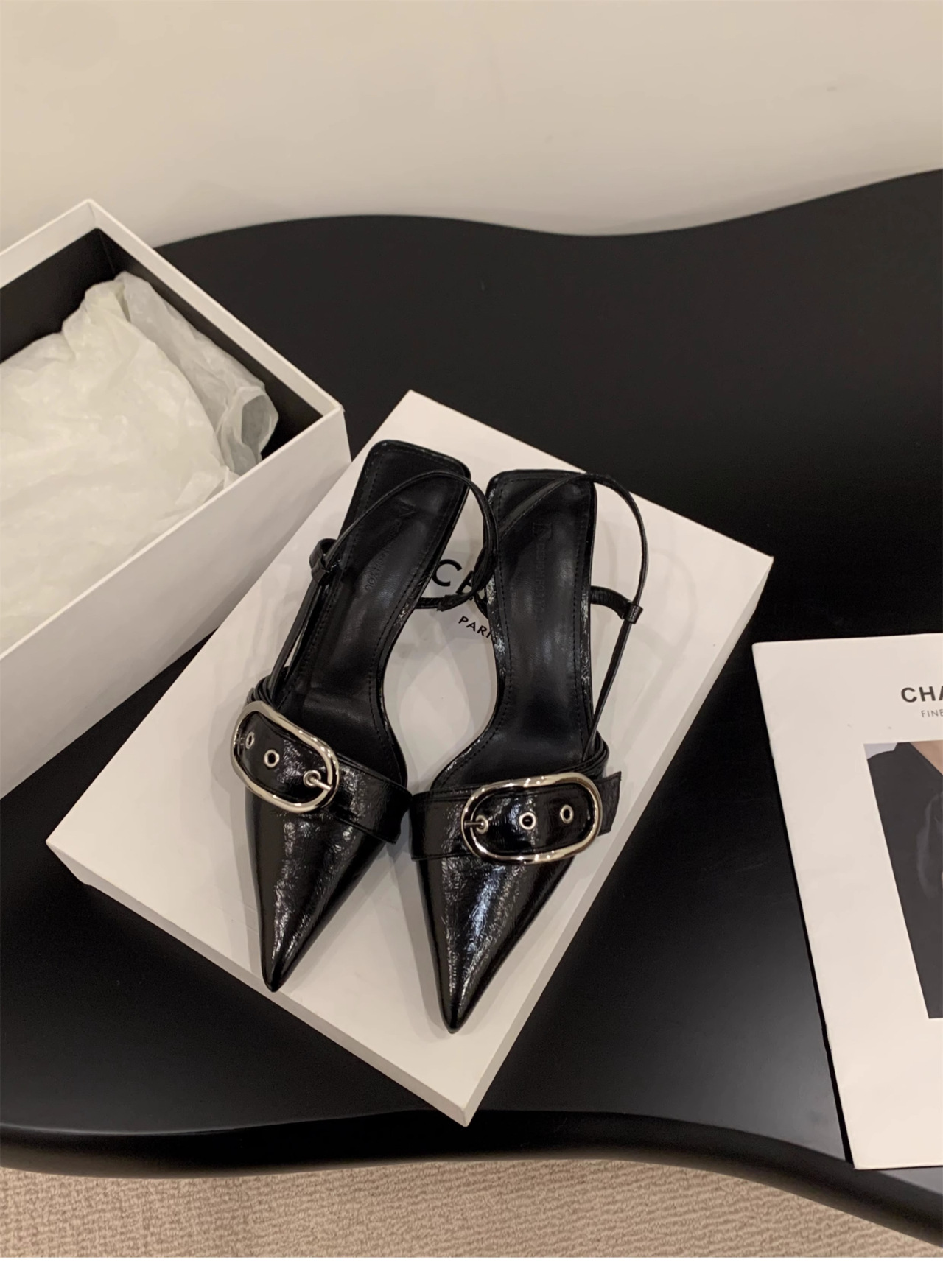 슈퍼 우아한 Baotou 포인팅 벨트 버클 얕은 하이힐 여성 2024 봄과 여름 여성을위한 새로운 스틸레토 힐 하이힐 샌들