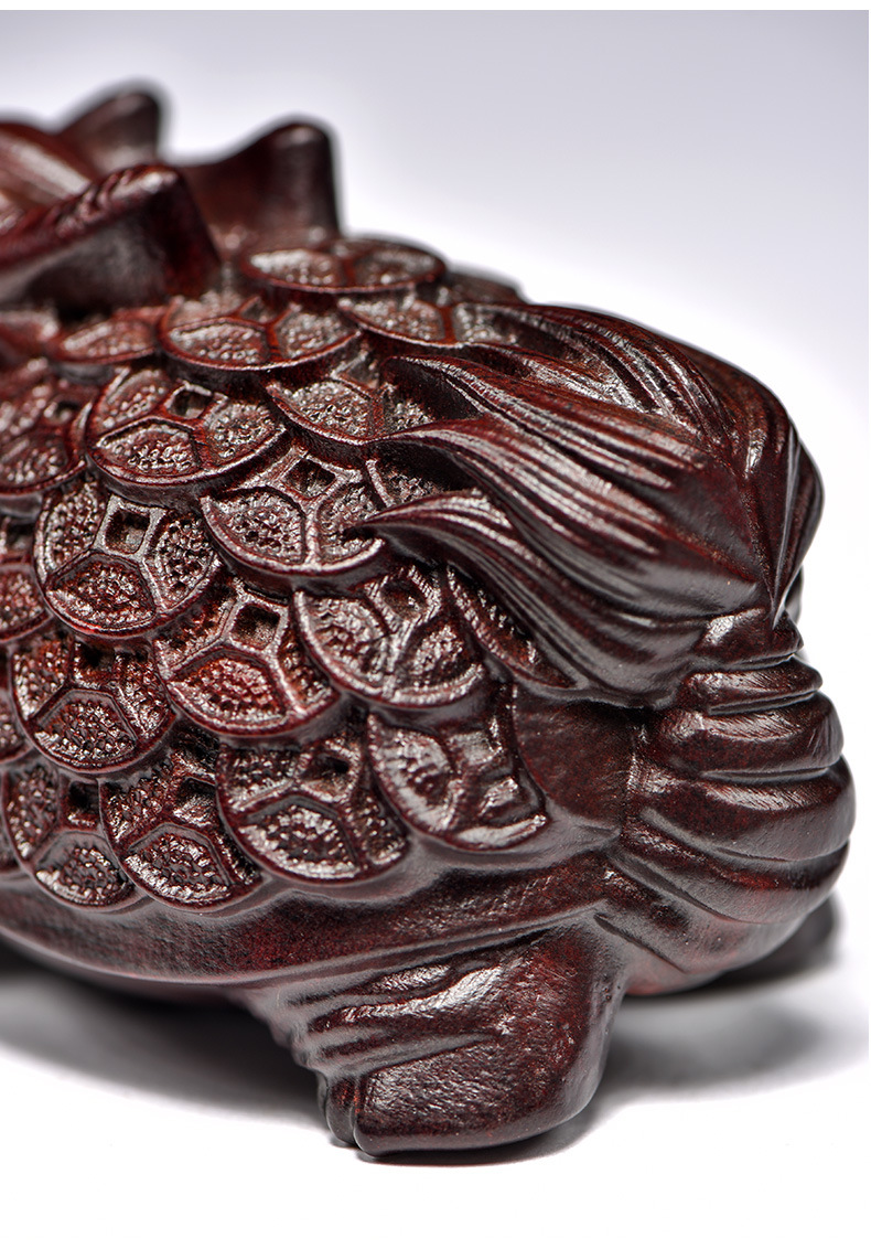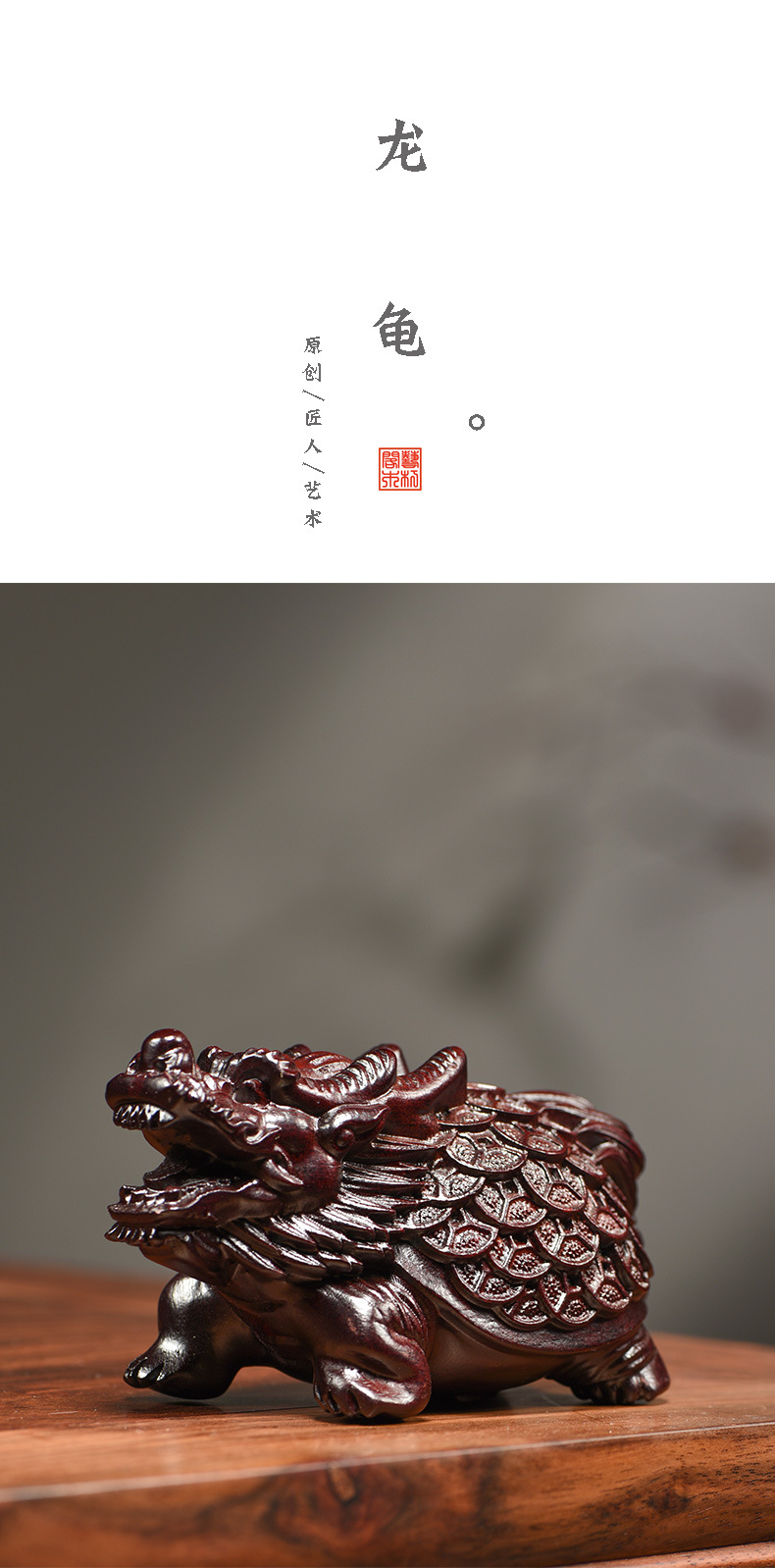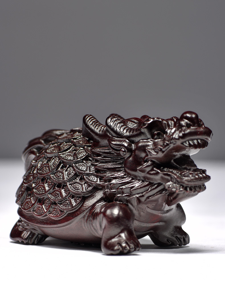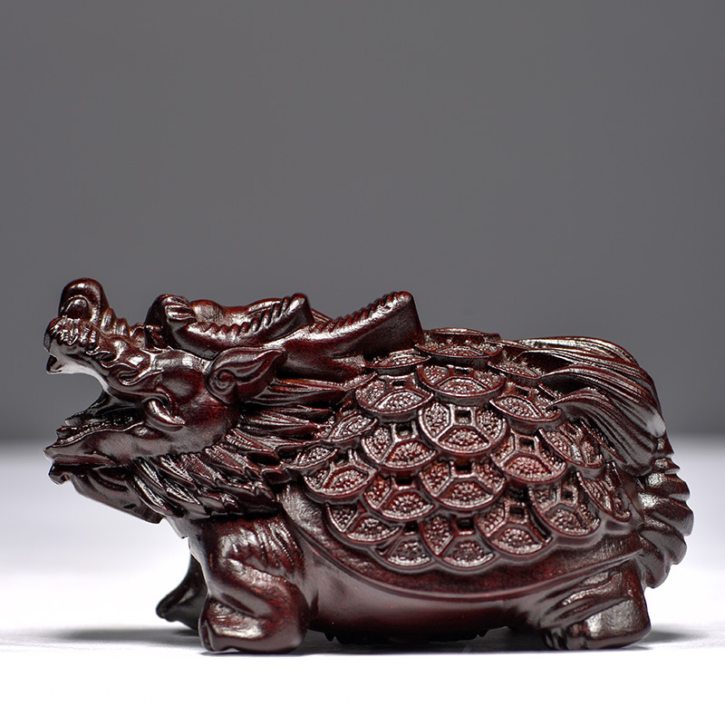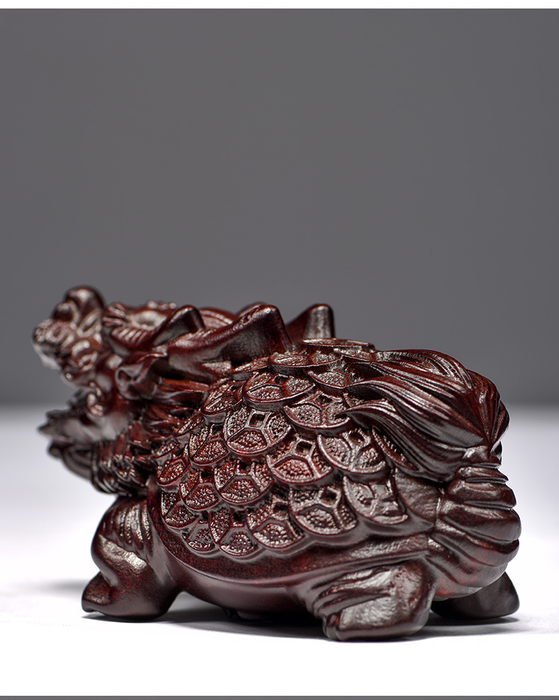 Ebony Wood 조각 8 개의 다이어그램 용 거북이 황금 거북이 장식품 거실 사무실 데스크탑 장식