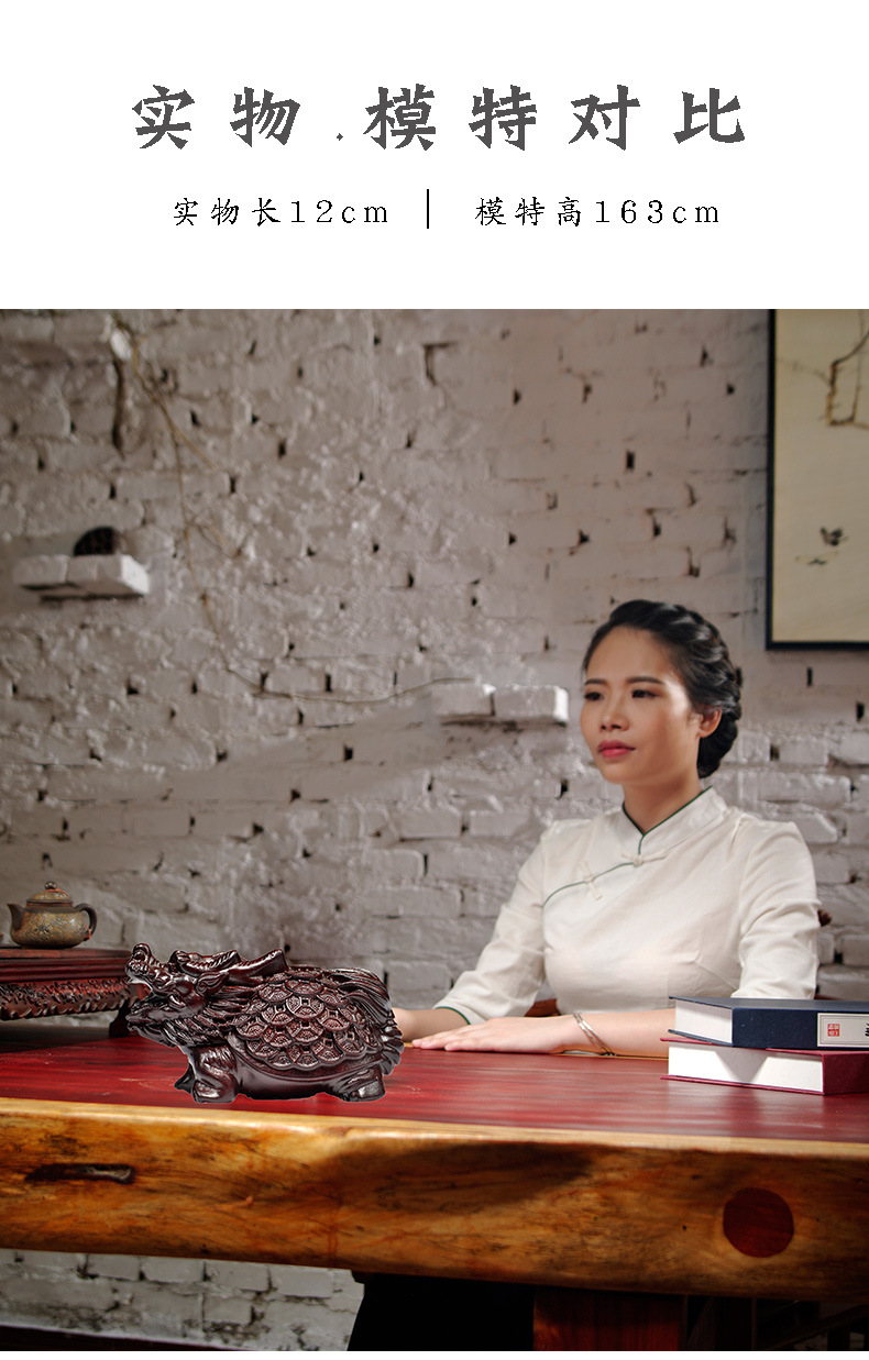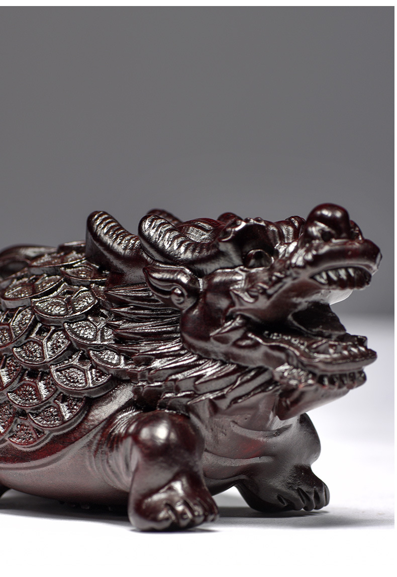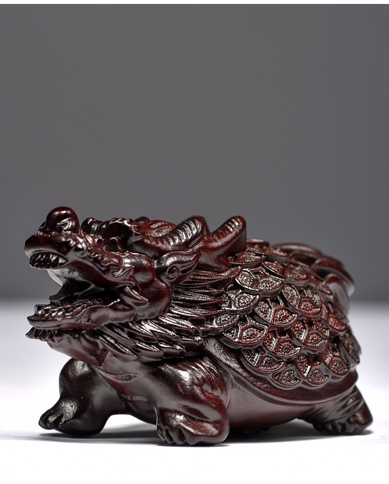 Ebony Wood 조각 8 개의 다이어그램 용 거북이 황금 거북이 장식품 거실 사무실 데스크탑 장식스토어 가기