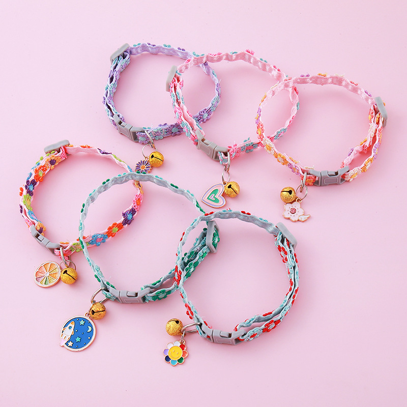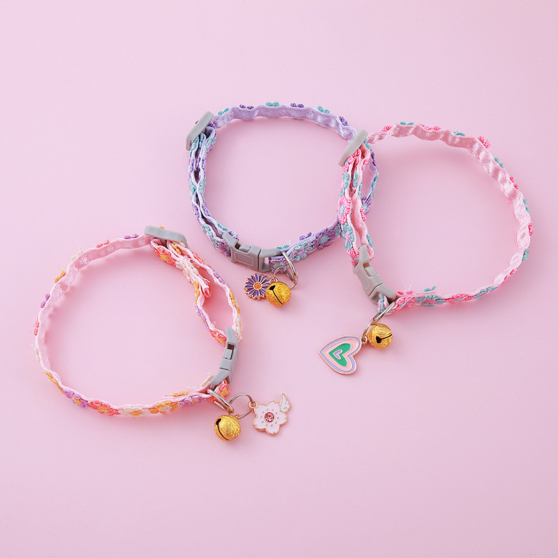 국경 간 애완 동물 용품 바람에 다채로운 레이스 칼라 벨 고양이 강아지 칼라 도매 공장 직접 판매스토어 가기
