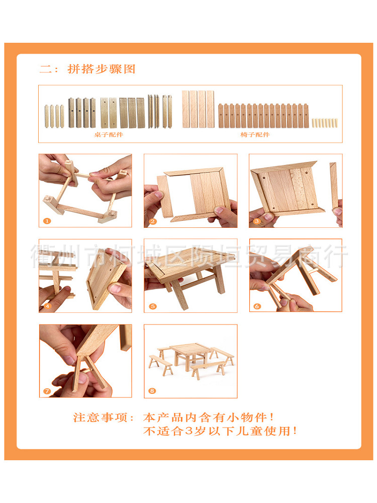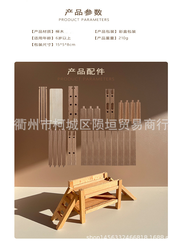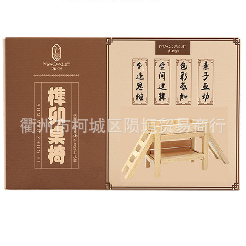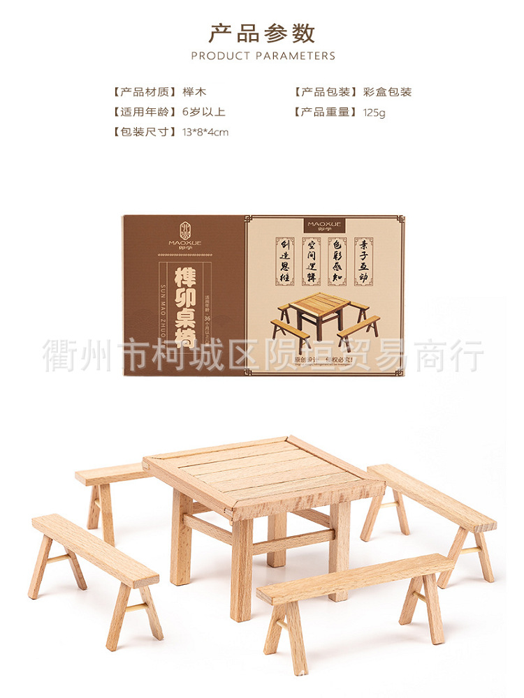 국경 간 AliExpress 학교 수학 교육 광고 과학적으로 조립 된 창조적 인 Mortise 및 Tenon 미니 테이블 및 의자 모델 Kongming Luban 잠금스토어 가기