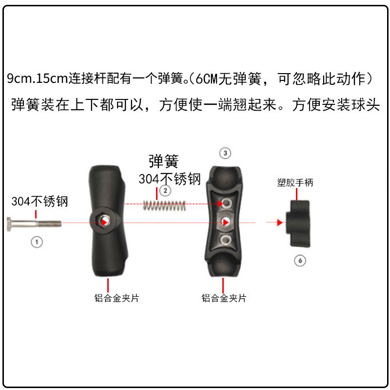 25mm 1.0inch 볼 헤드 커넥팅 로드 오토바이 GoPro 액션 카메라 홀더 클램프 암 다중 사이즈