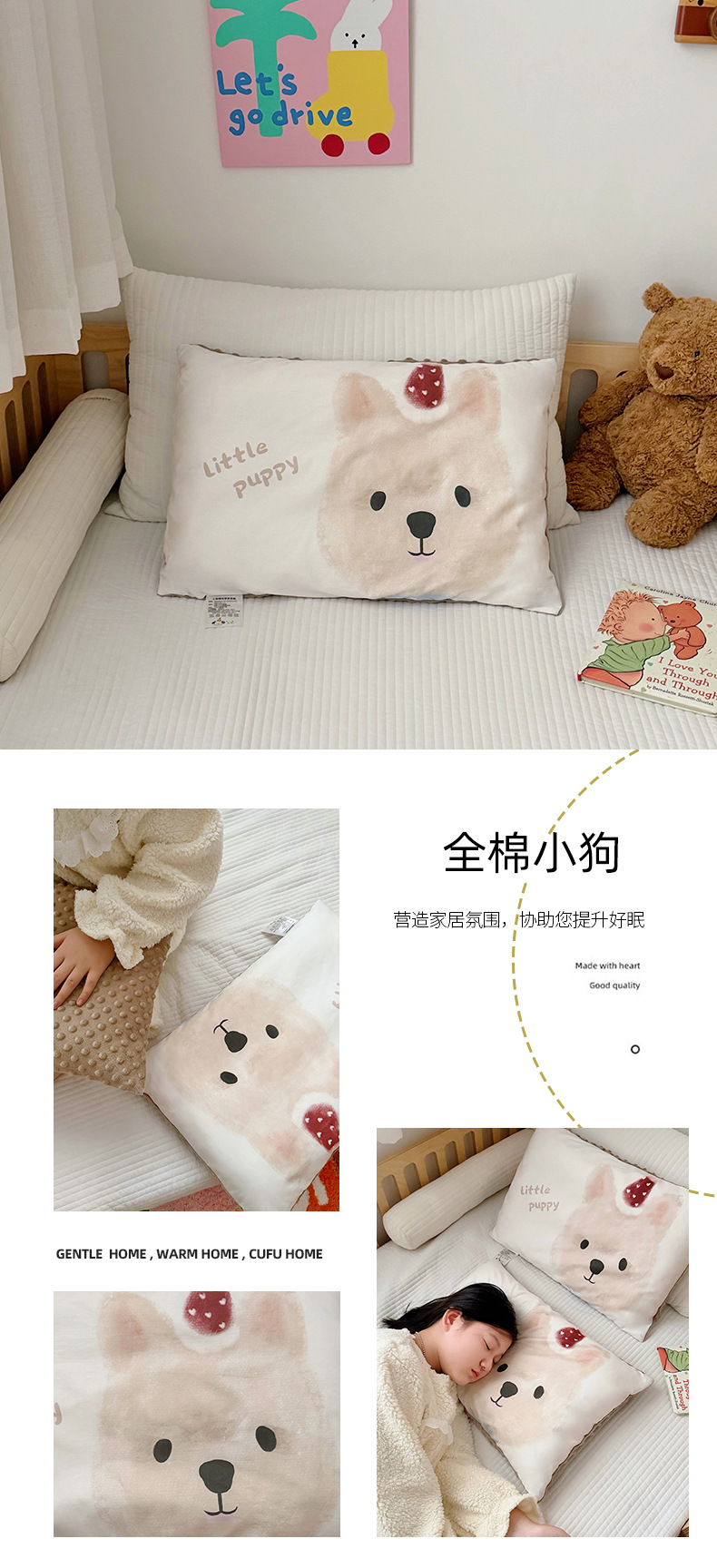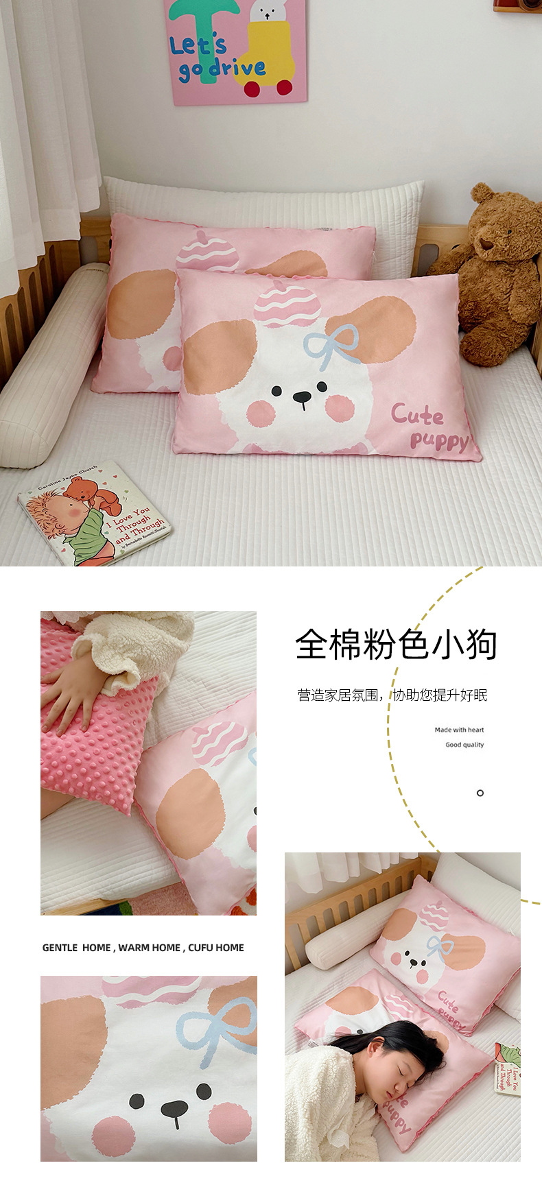 • 전면 면 소재 엠보싱 베개 – 핑크 강아지