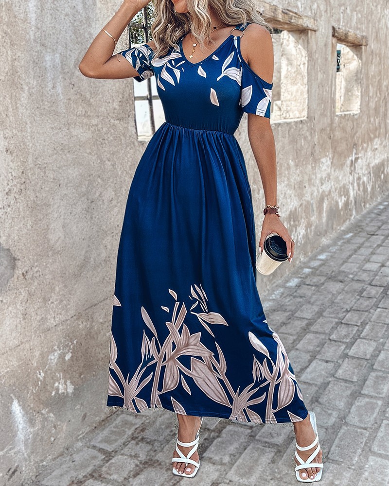 아마존 국경 무역 유럽과 미국 여성의 2024 여름 패션 어깨 인쇄 허리 원피스 주름 원피스스토어 가기