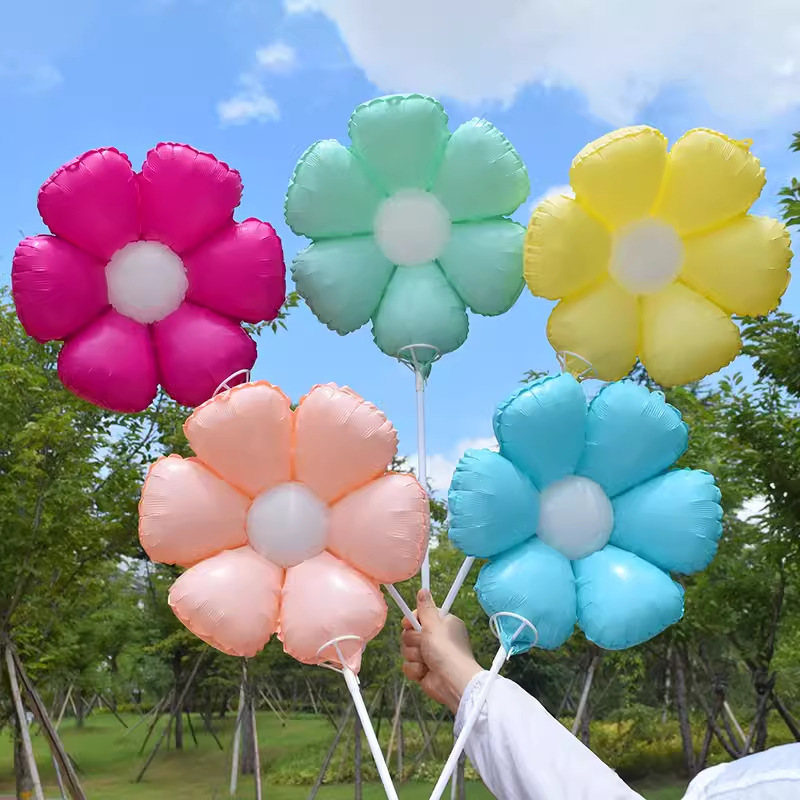 Ins 스타일 인터넷 연예인 데이지 해바라기 캔디 컬러 휴대용 스틱 풍선 생일 파티 야외 피크닉 사진 장식