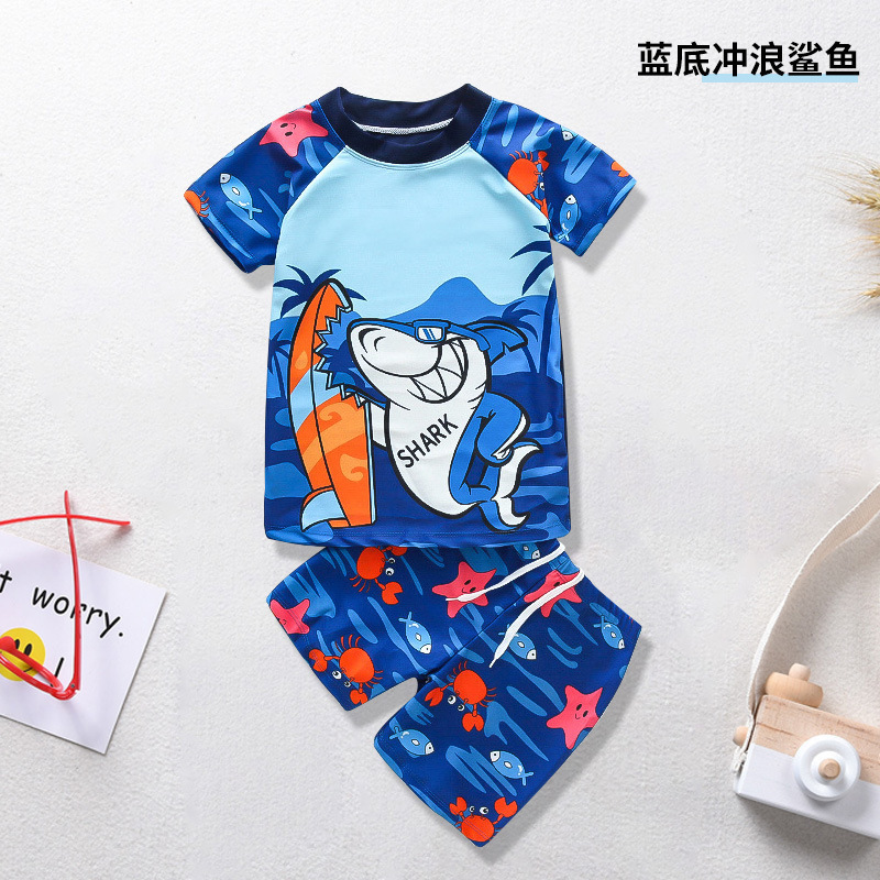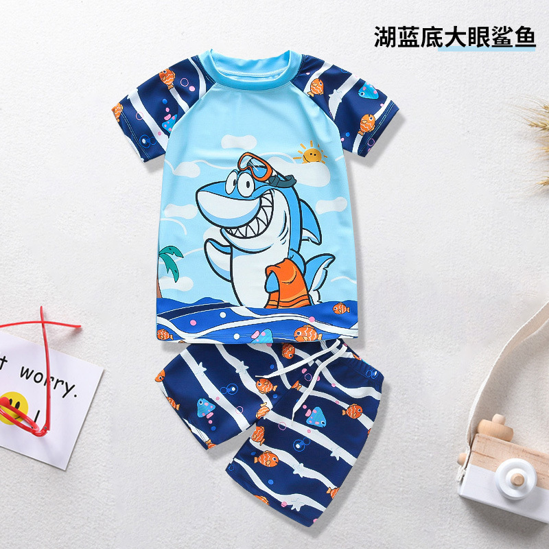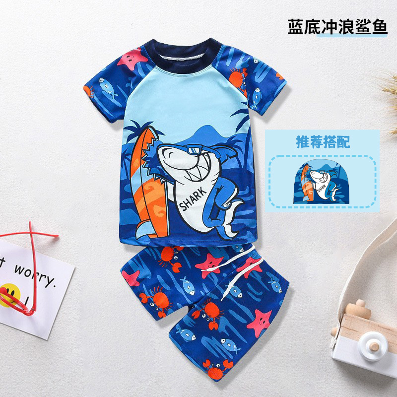 공장 아울렛 소년 수영복 여름 짧은 소매 만화 2024 소년 분할 세트 수영 수영 모자 어린이 수영 트렁크스토어 가기