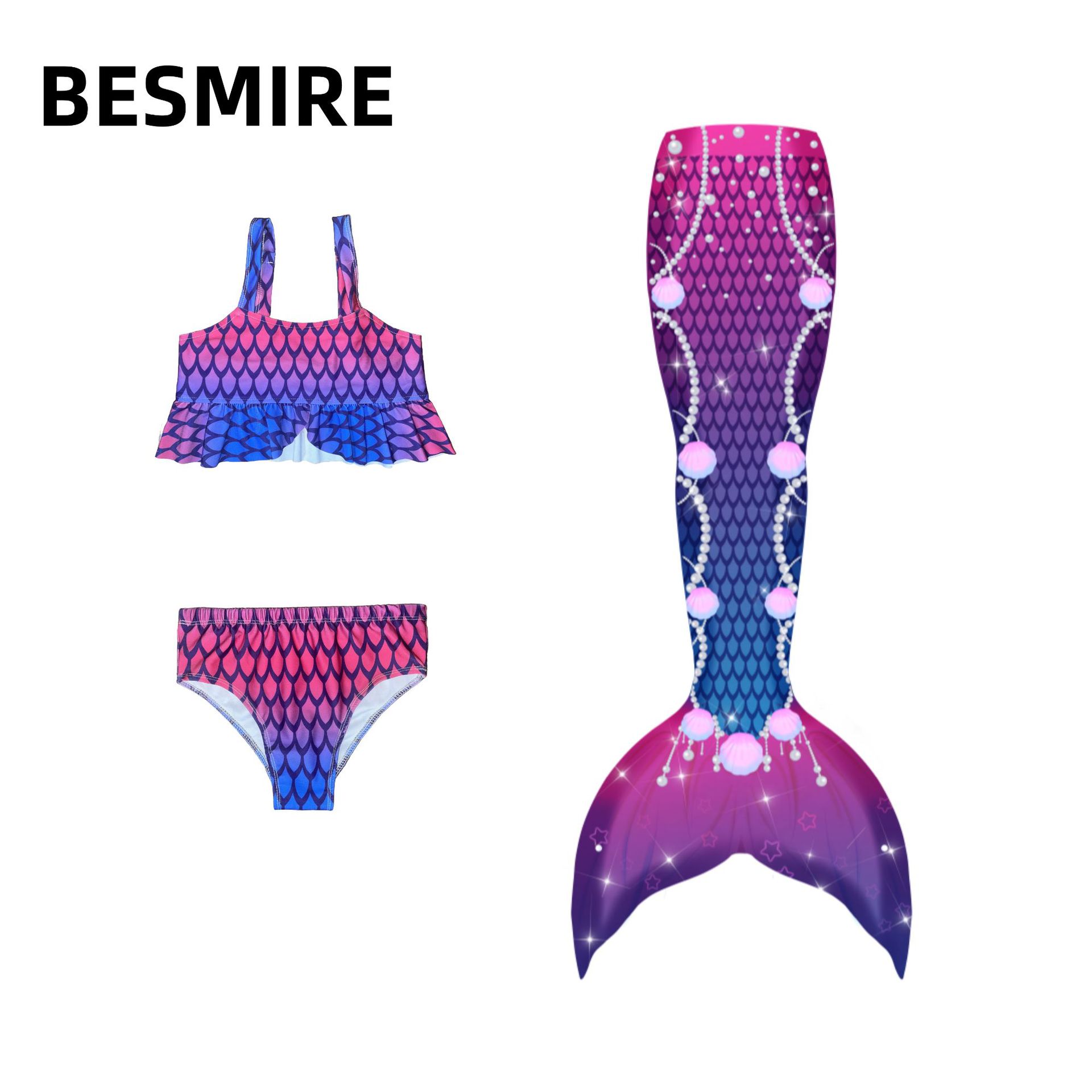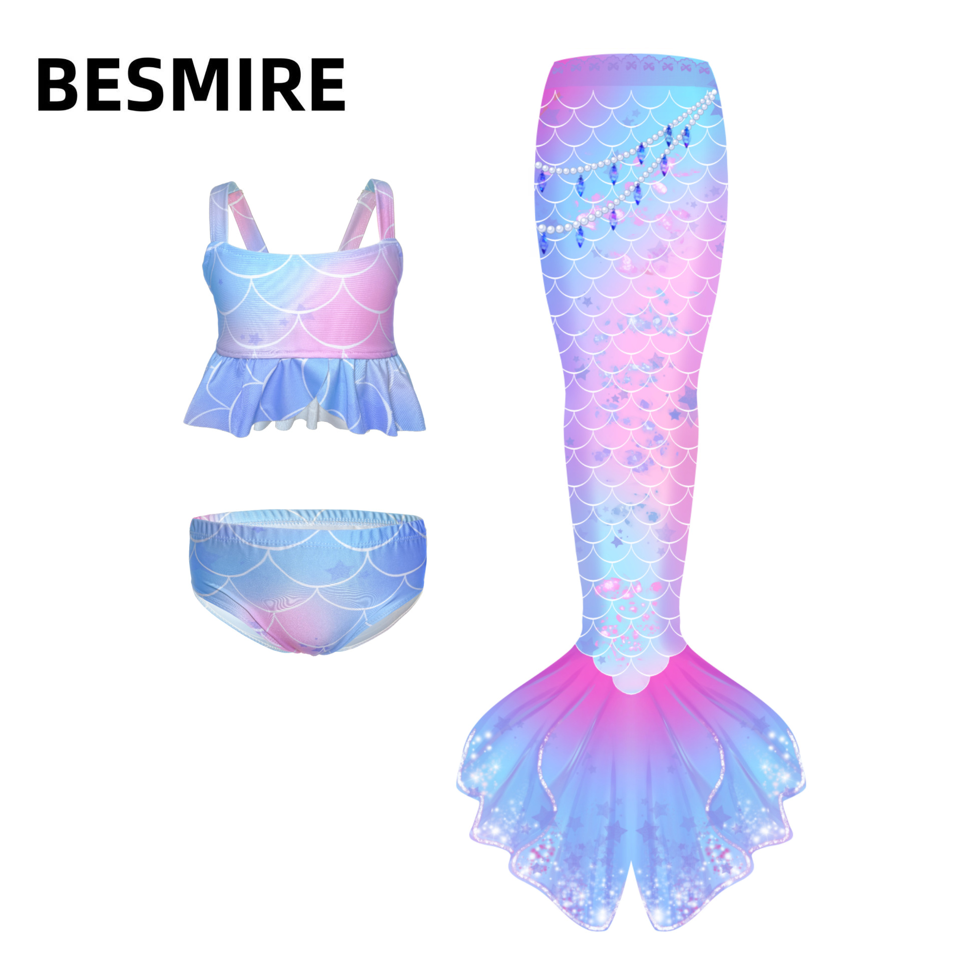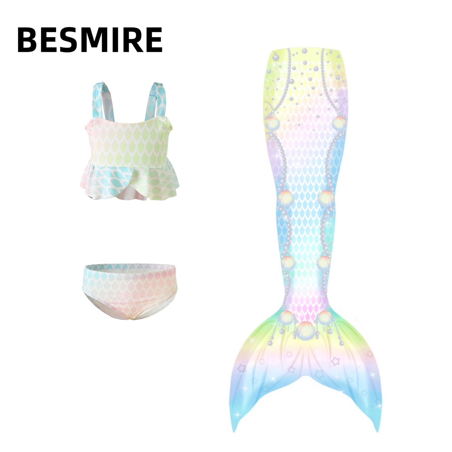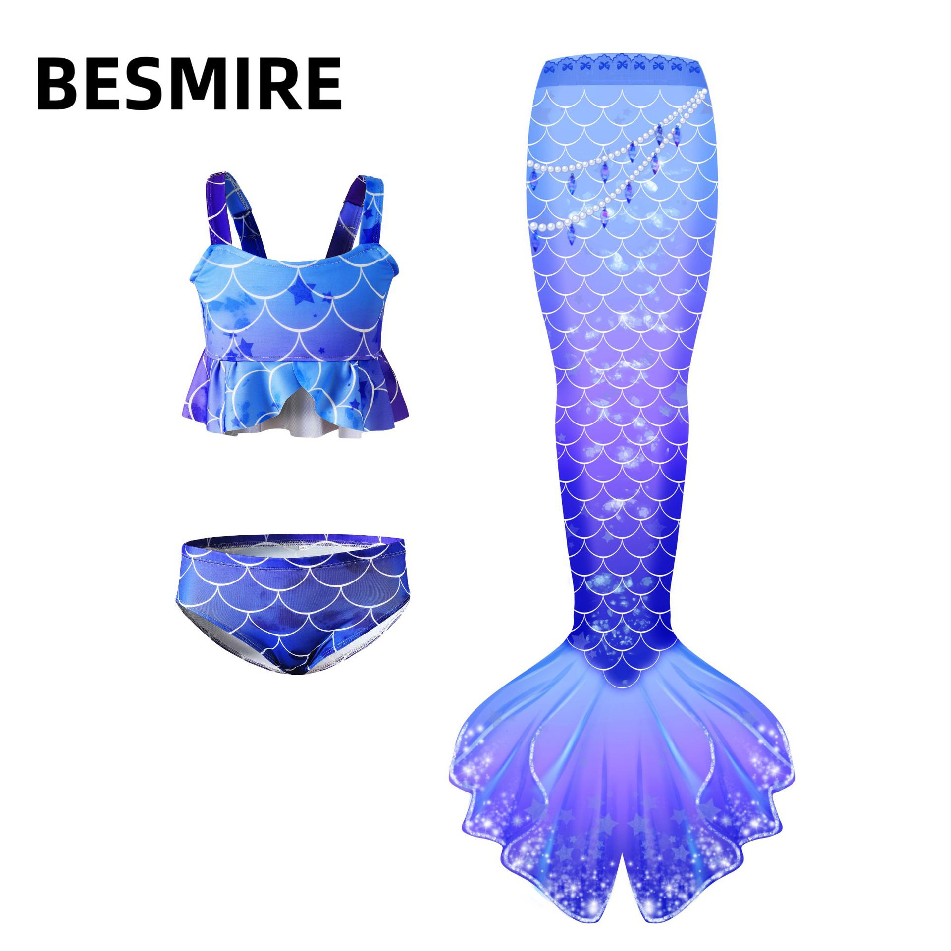 어린이 인어 수영복 대형 중소형 소녀 공주 원피스 공연 의류 3 피스 세트 여성 스플릿 비키니 수영복