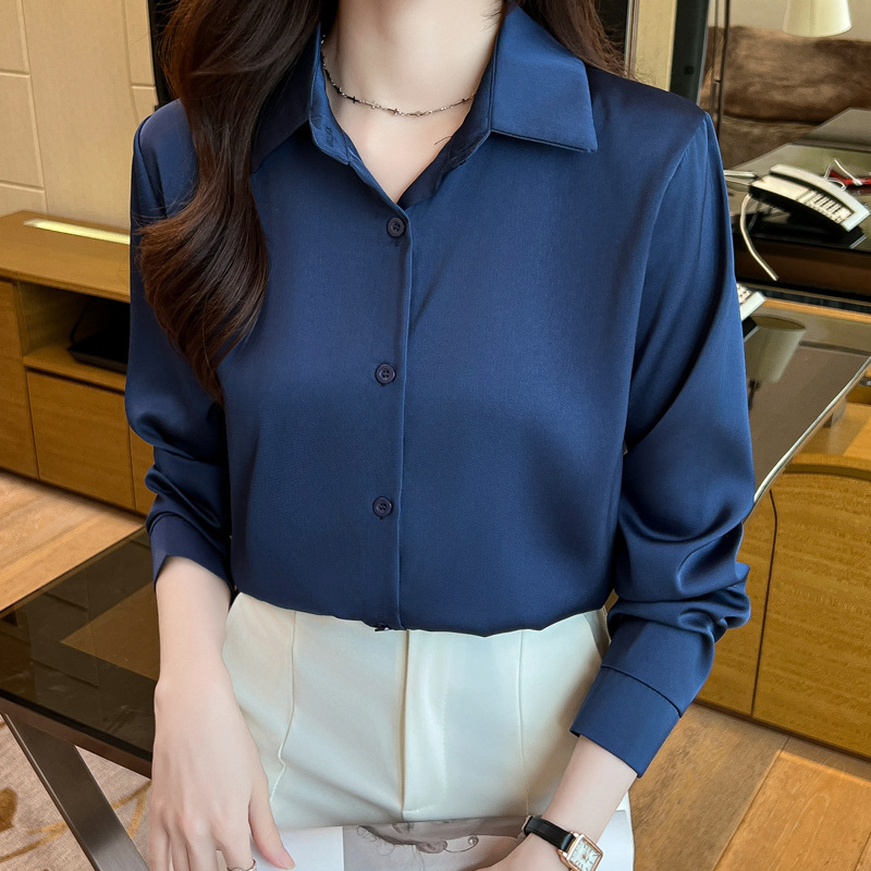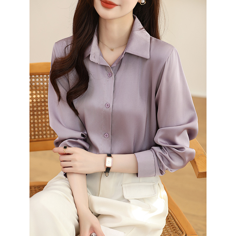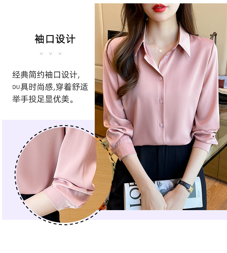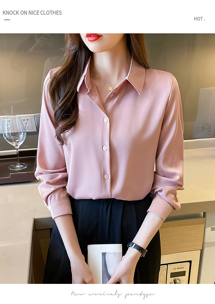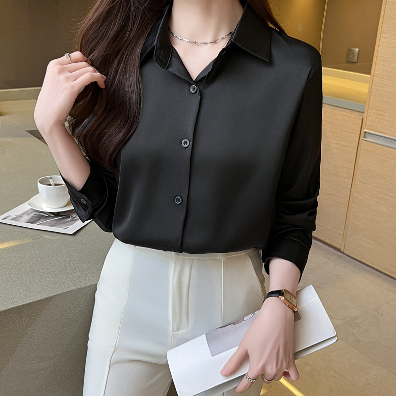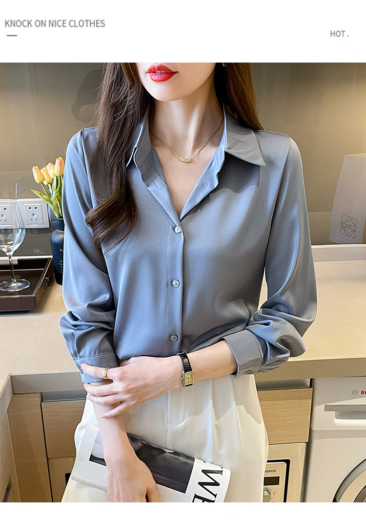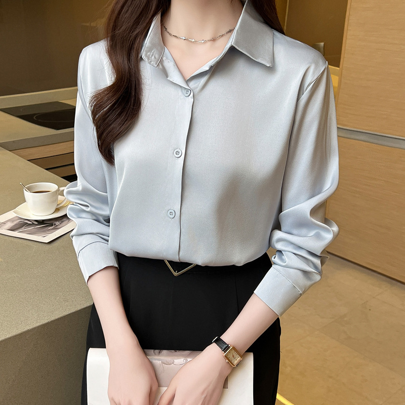 봄 2024 17 컬러 5 사이즈 높은 감각 비 주름 방지 새틴 셔츠 여성의 단색 아세테이트 셔츠 도매스토어 가기