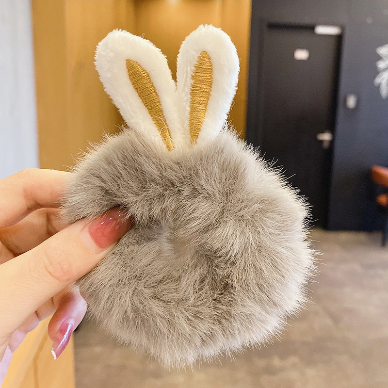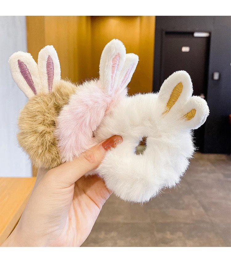 가을 겨울 토끼 귀 모양 어린이용 플러시 헤어밴드 여자 아기용 더블 포니테일 머리끈 고무줄 헤어 액세서리 고탄성스토어 가기