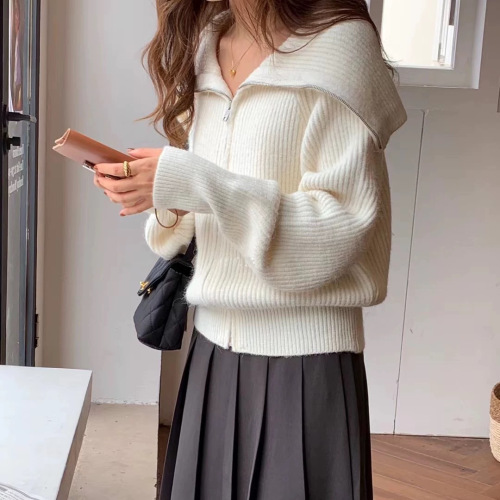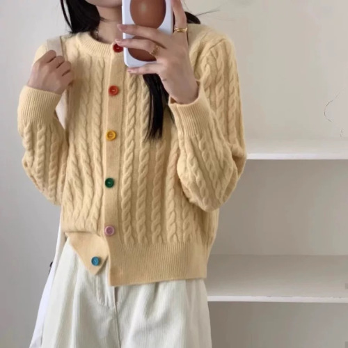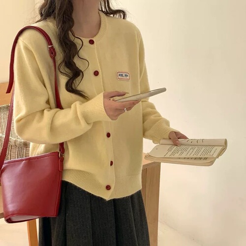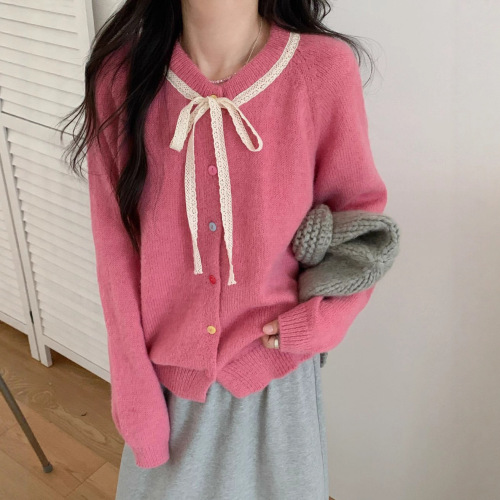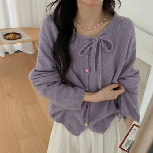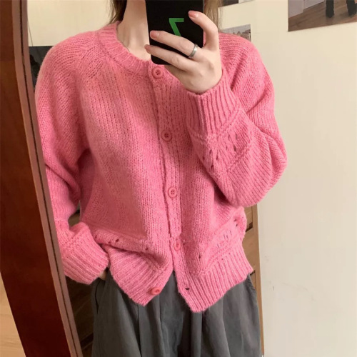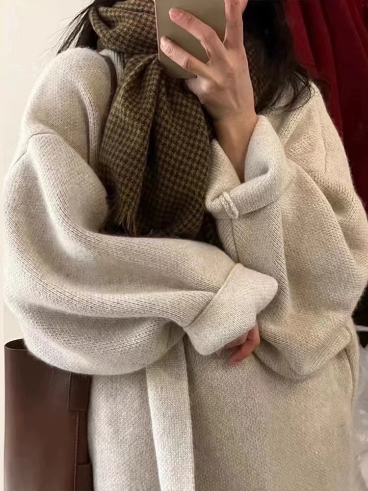 게으른 향기로운 스타일 무릎 중간 길이 니트 카디건 여성용 루즈 스위트 소프트 왁스 젠틀 솔리드 컬러 스웨터 코트