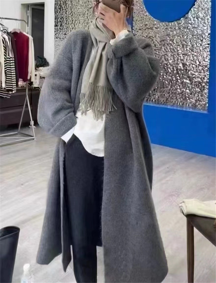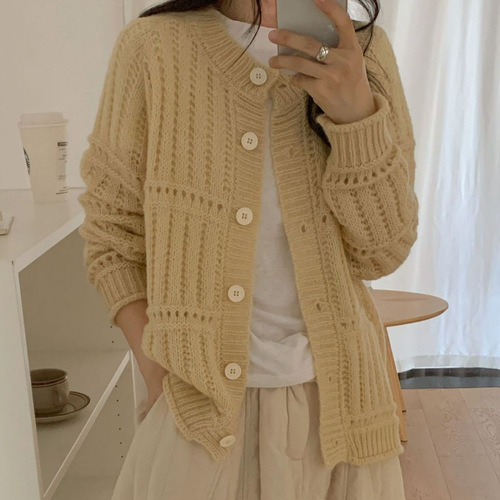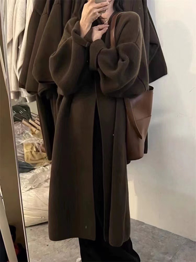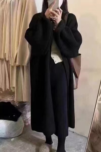 게으른 향기로운 스타일 무릎 중간 길이 니트 카디건 여성용 루즈 스위트 소프트 왁스 젠틀 솔리드 컬러 스웨터 코트스토어 가기