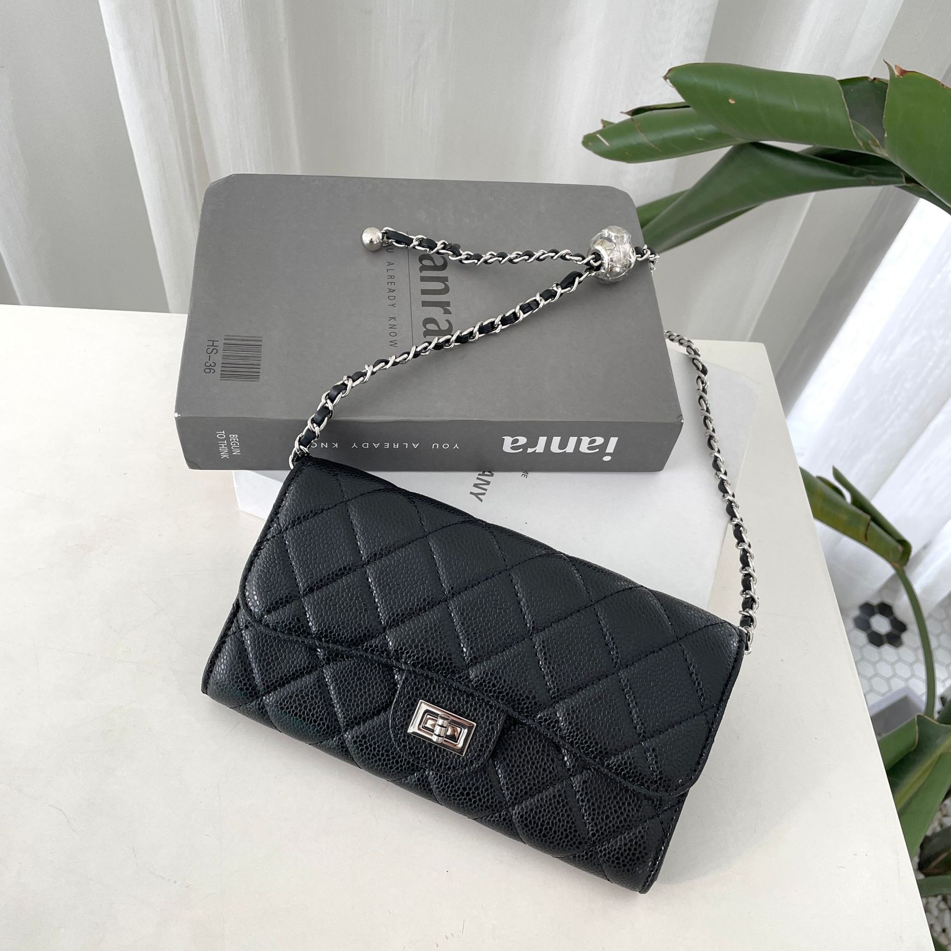 작은 샤넬 스타일 올 매치 미니 스퀘어 백 캐비아 하이 레벨 블랙 휴대 전화 가방 싱글 숄더 크로스 바디 다이아몬드 격자 무늬 체인 백스토어 가기