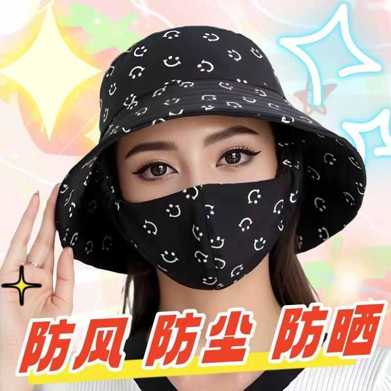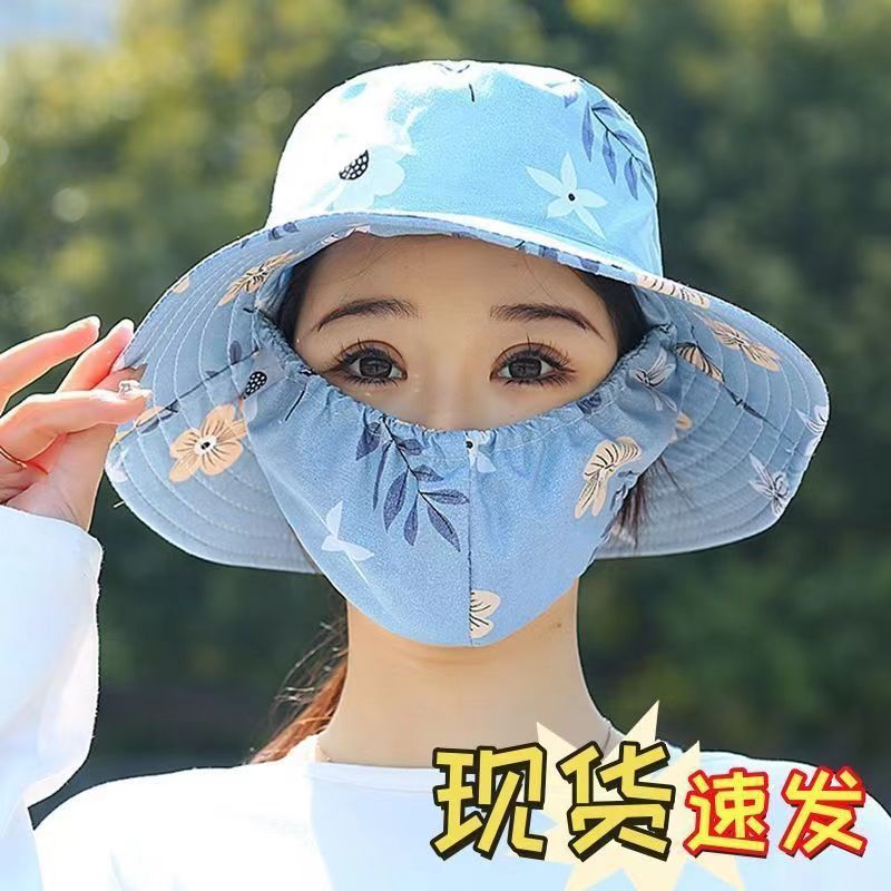 새로운 자외선 차단 야외 마스크 일체형 모자, 여름 여성용 햇빛 가리개 모자, 얼굴 가리개, 자외선 차단, 사이클링 및 차 따기용 모자스토어 가기