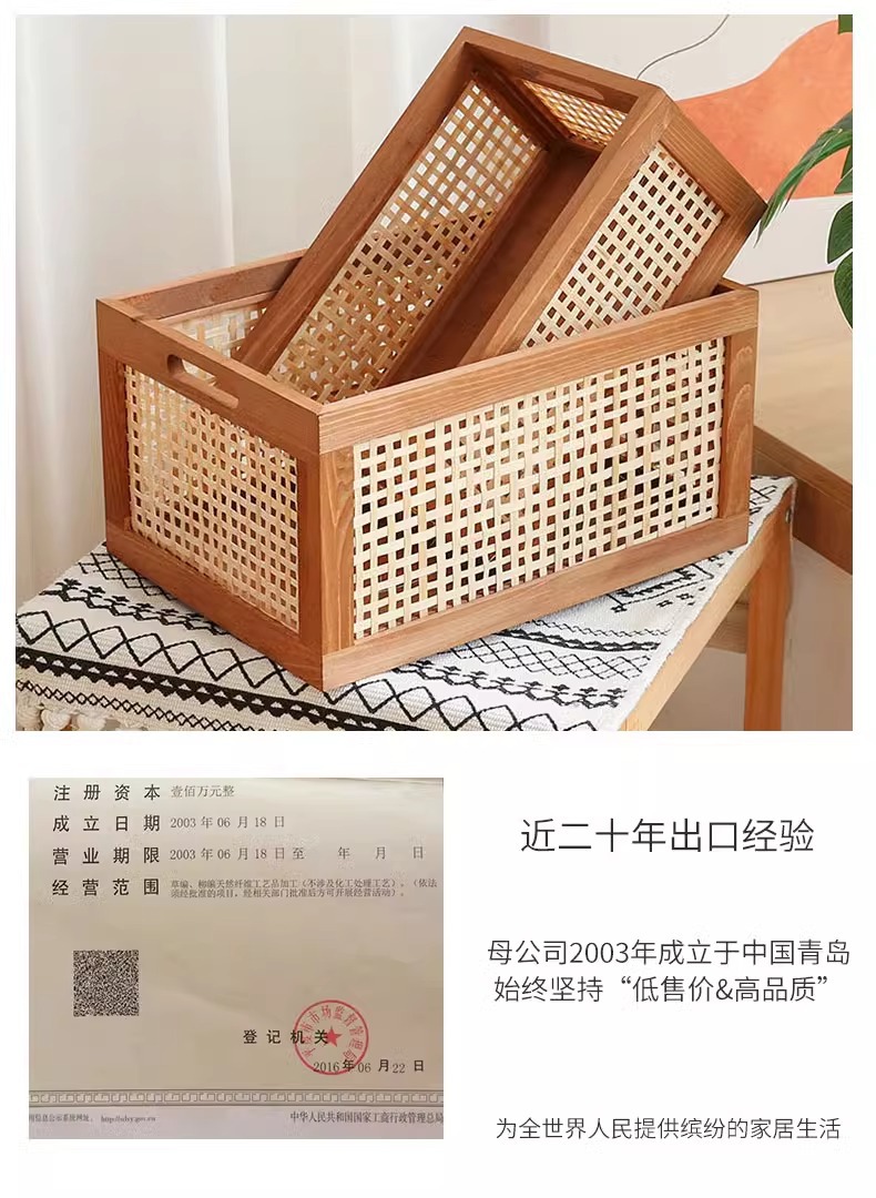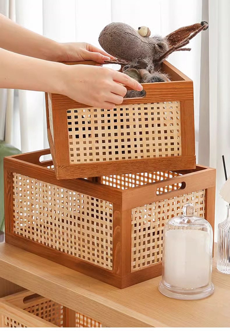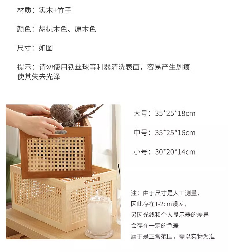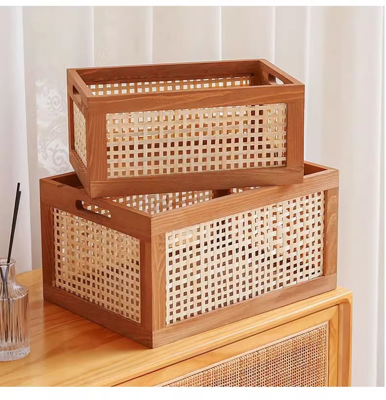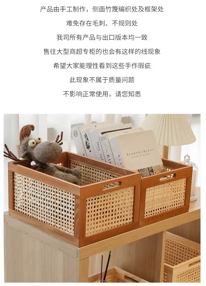 일본식 레트로 스타일 단단한 나무 대나무 보관 바구니 데스크탑 저장 상자 홈 거실 책 간식 잡화 보관 프레임