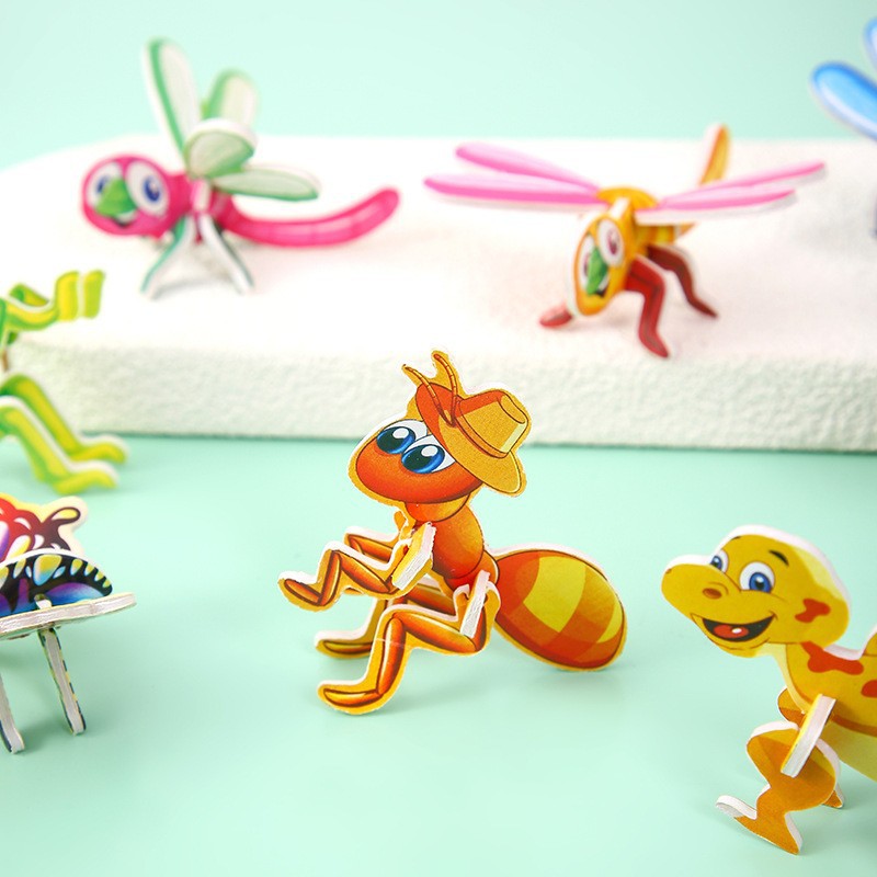 3D 재미있는 곤충 3 차원 퍼즐 어린이 창조적 인 DIY 장난감 3 ~ 6 세 조기 교육 손으로 조립 퍼즐 카드
