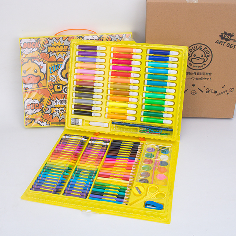 새로운 G.DUCK 작은 노란색 오리 84 피스 어린이 그림 세트 68 마크 펜 문구 선물 상자 67 피스 브러쉬 세트