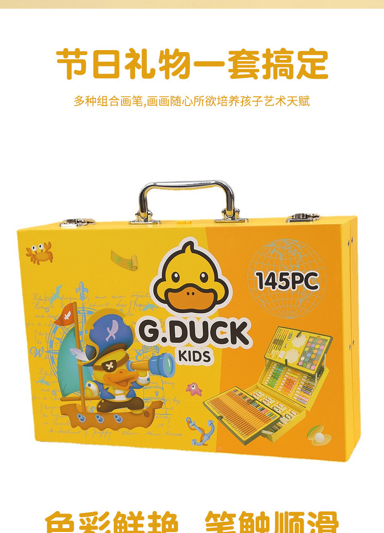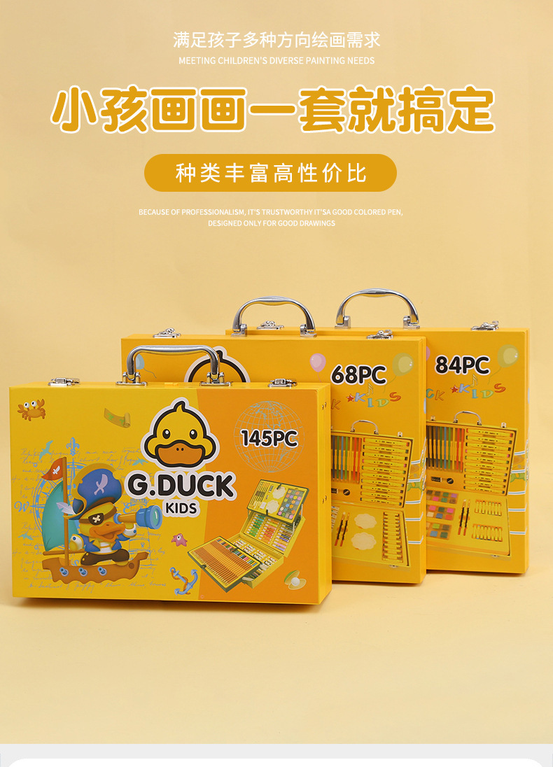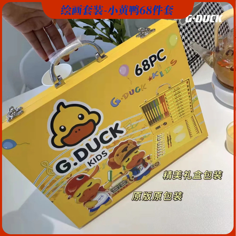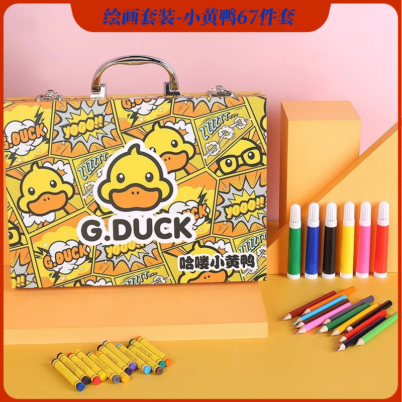 새로운 G.DUCK 작은 노란색 오리 84 피스 어린이 그림 세트 68 마크 펜 문구 선물 상자 67 피스 브러쉬 세트스토어 가기