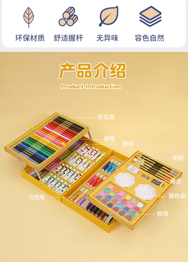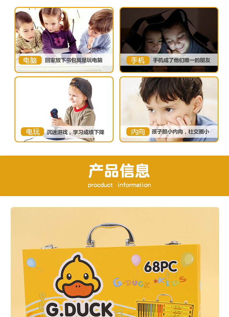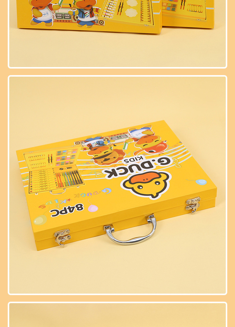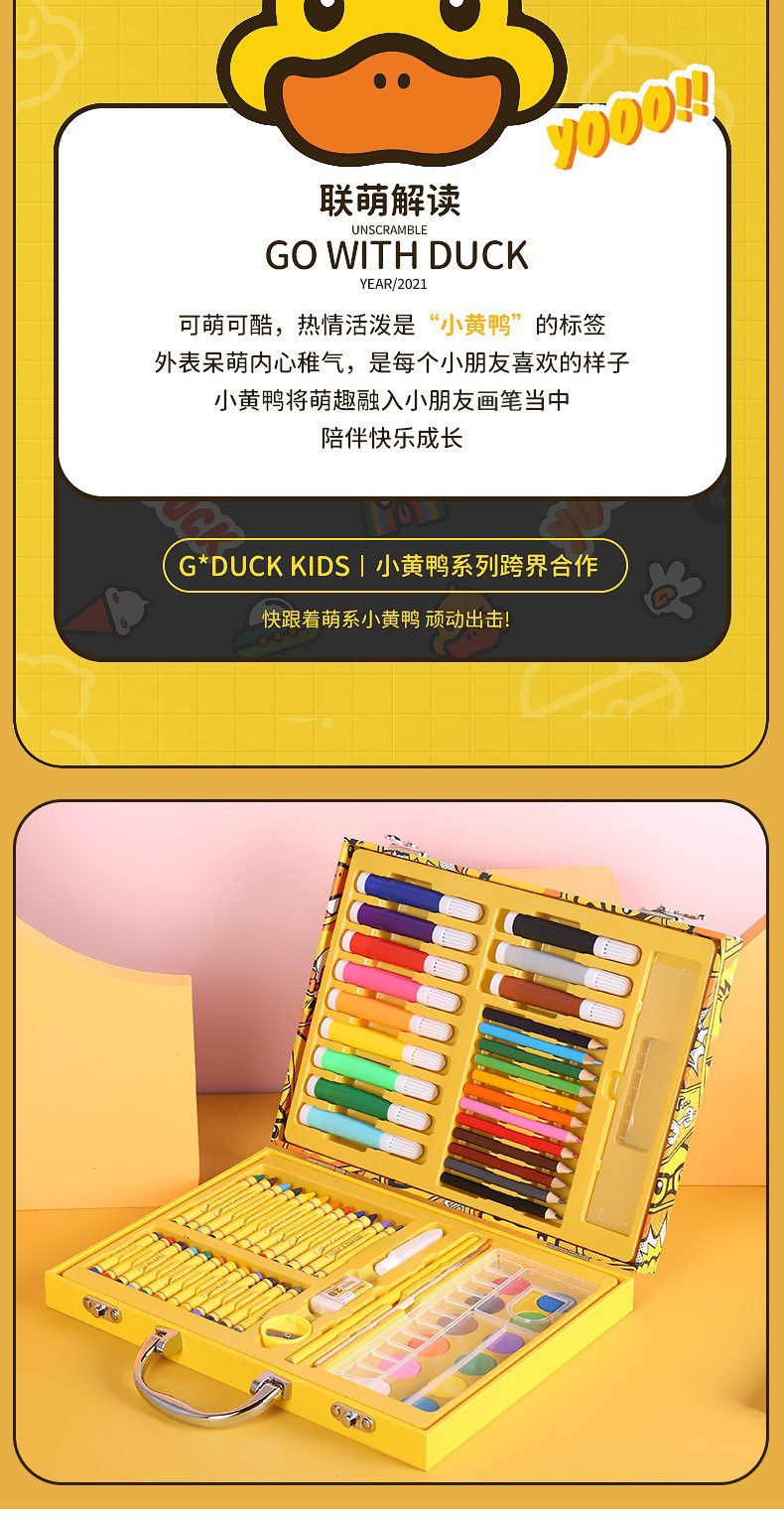 새로운 G.DUCK 작은 노란색 오리 84 피스 어린이 그림 세트 68 마크 펜 문구 선물 상자 67 피스 브러쉬 세트스토어 가기