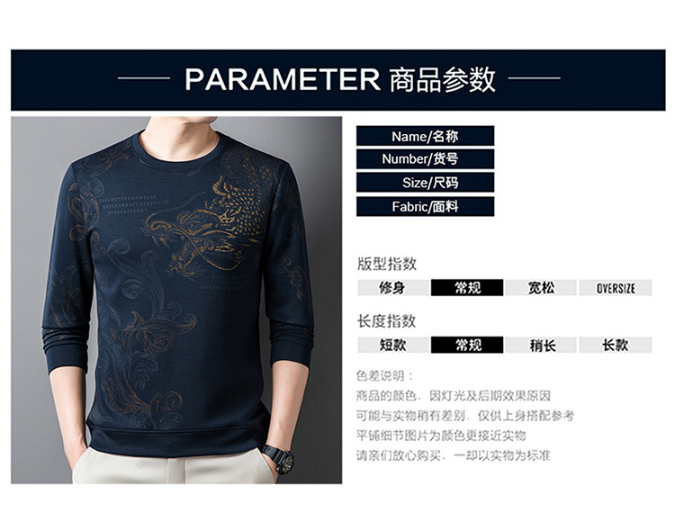 2024新款春季龙图卫衣长袖打底衫休闲时尚商务卫衣男潮流t