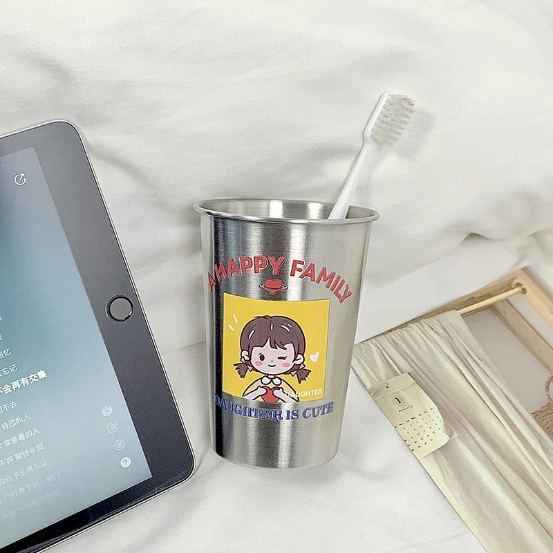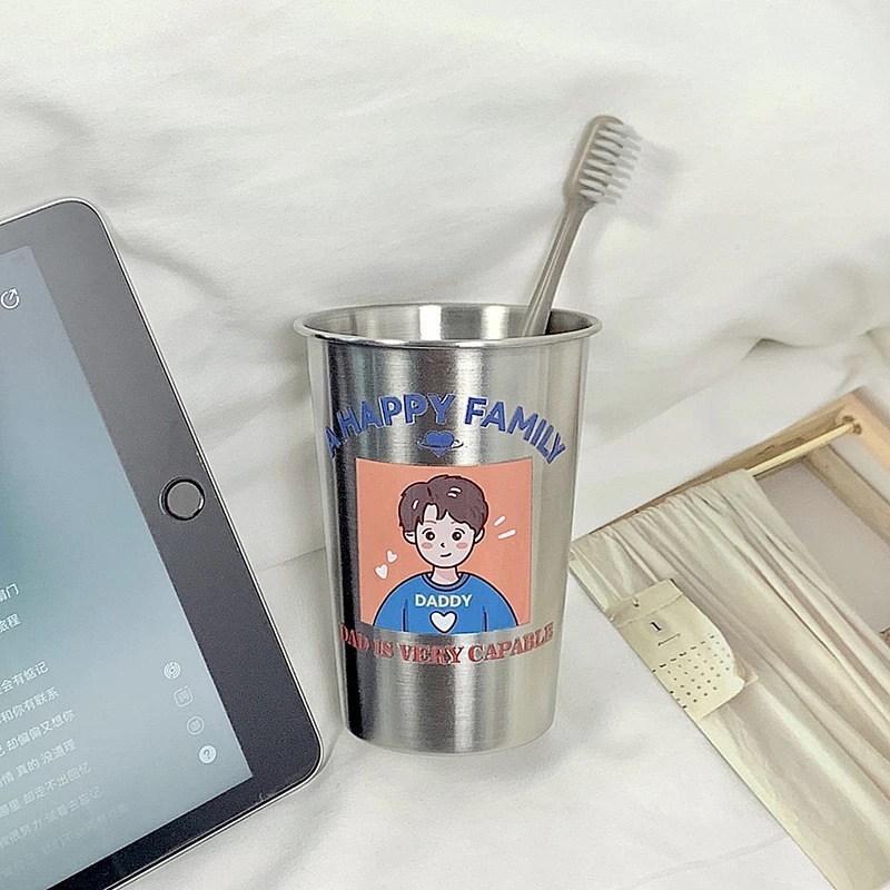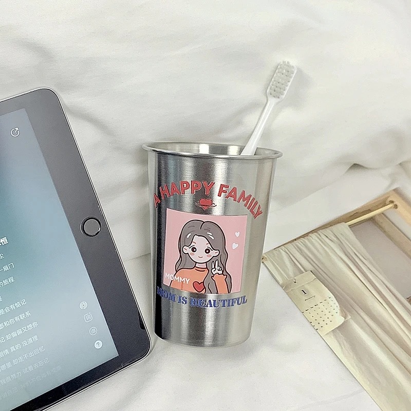 물음표 소년 소녀 두꺼운 드롭 저항 스테인레스 스틸 커플 칫솔 컵 간단한 가글 컵 크리에이티브 가글 컵스토어 가기