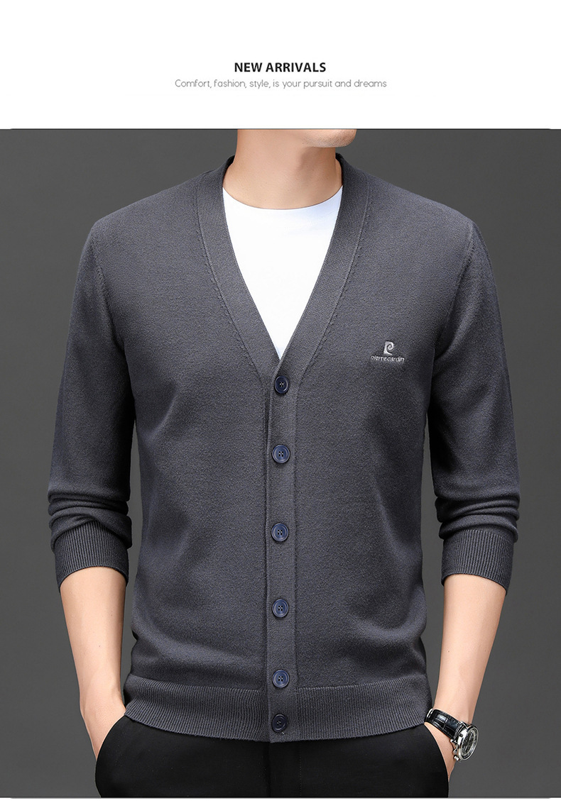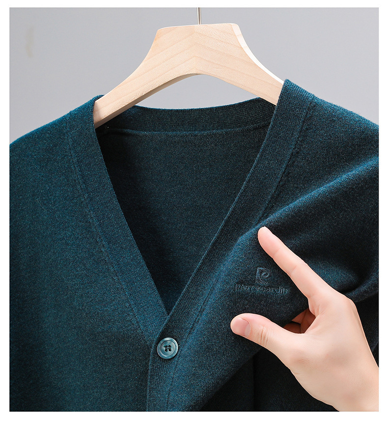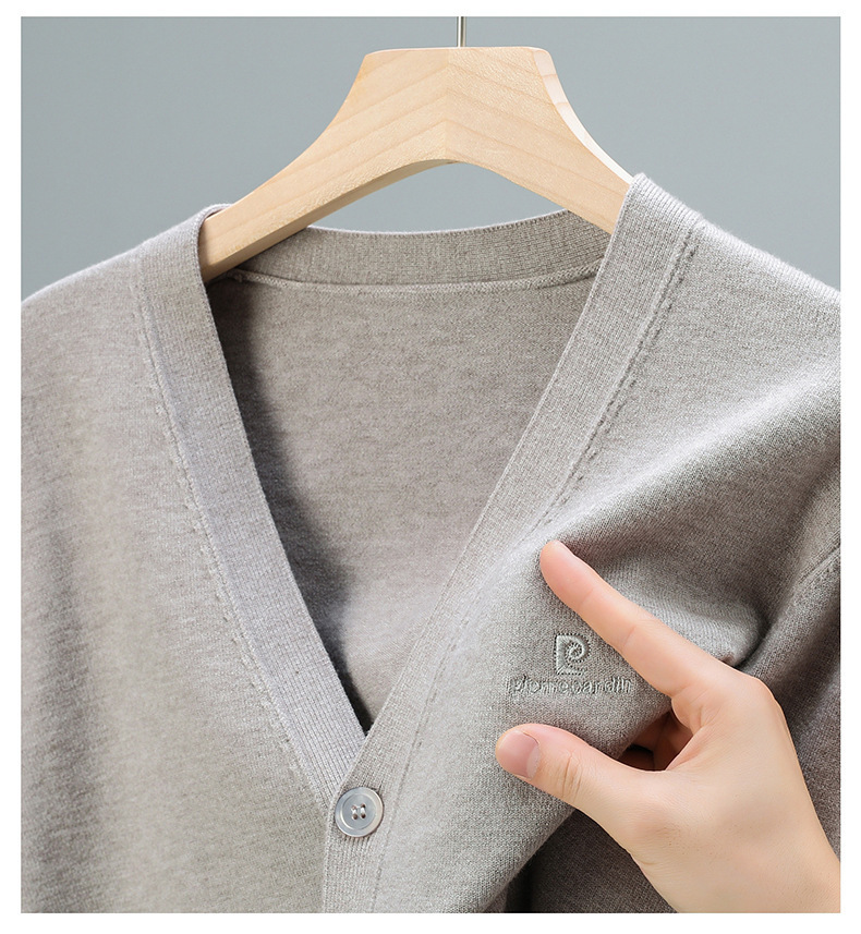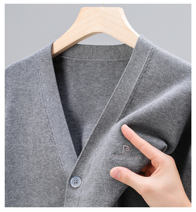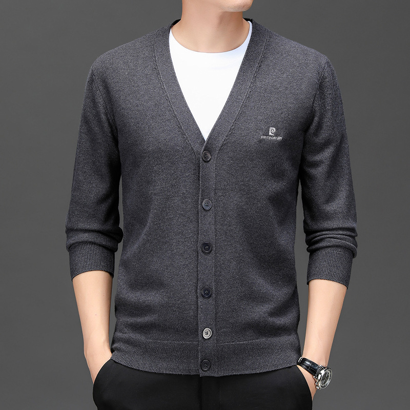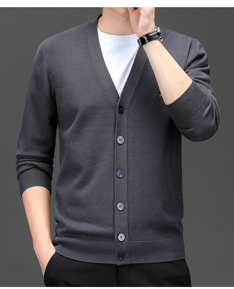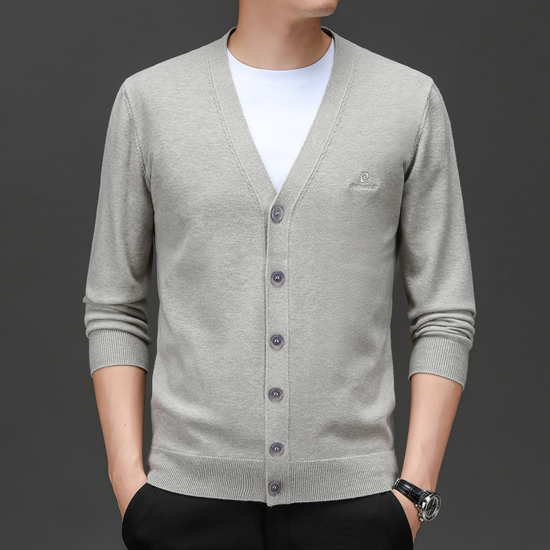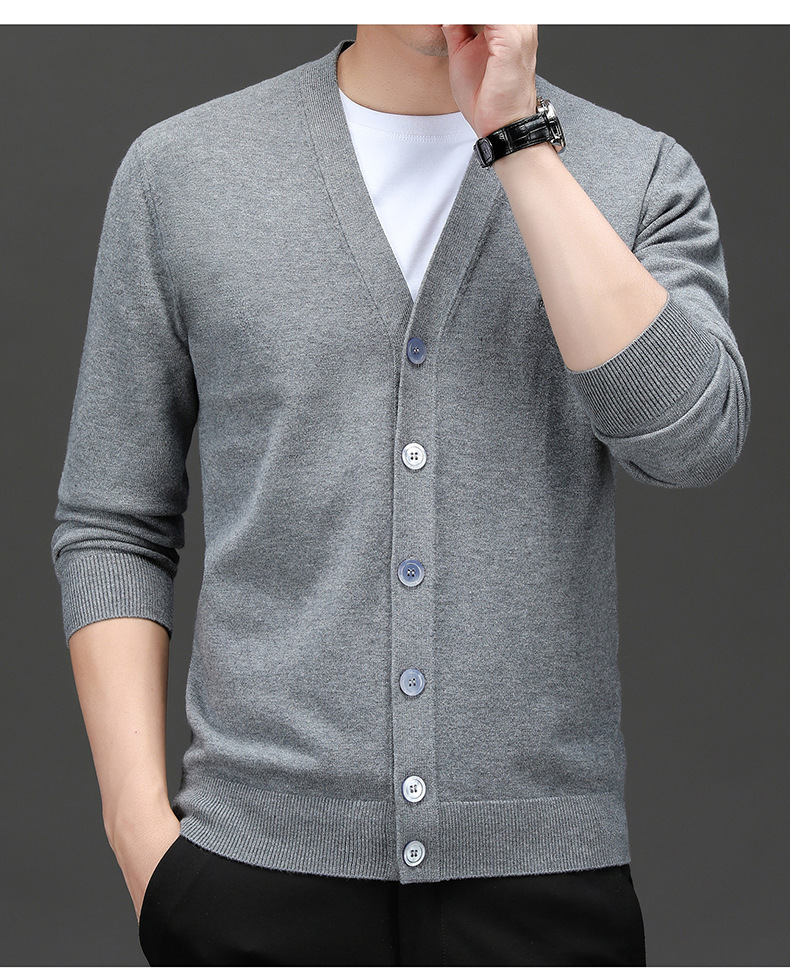 봄 새로운 단색 어깨 느슨한 카디건 남자 하이 엔드 V 넥 남자 니트 카디건스토어 가기