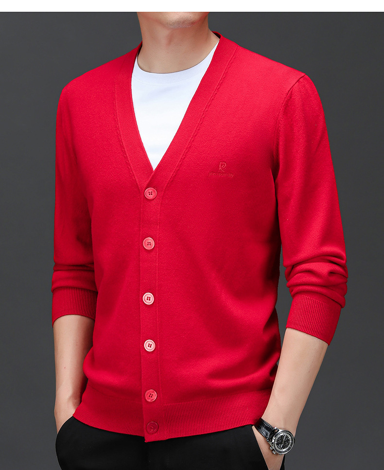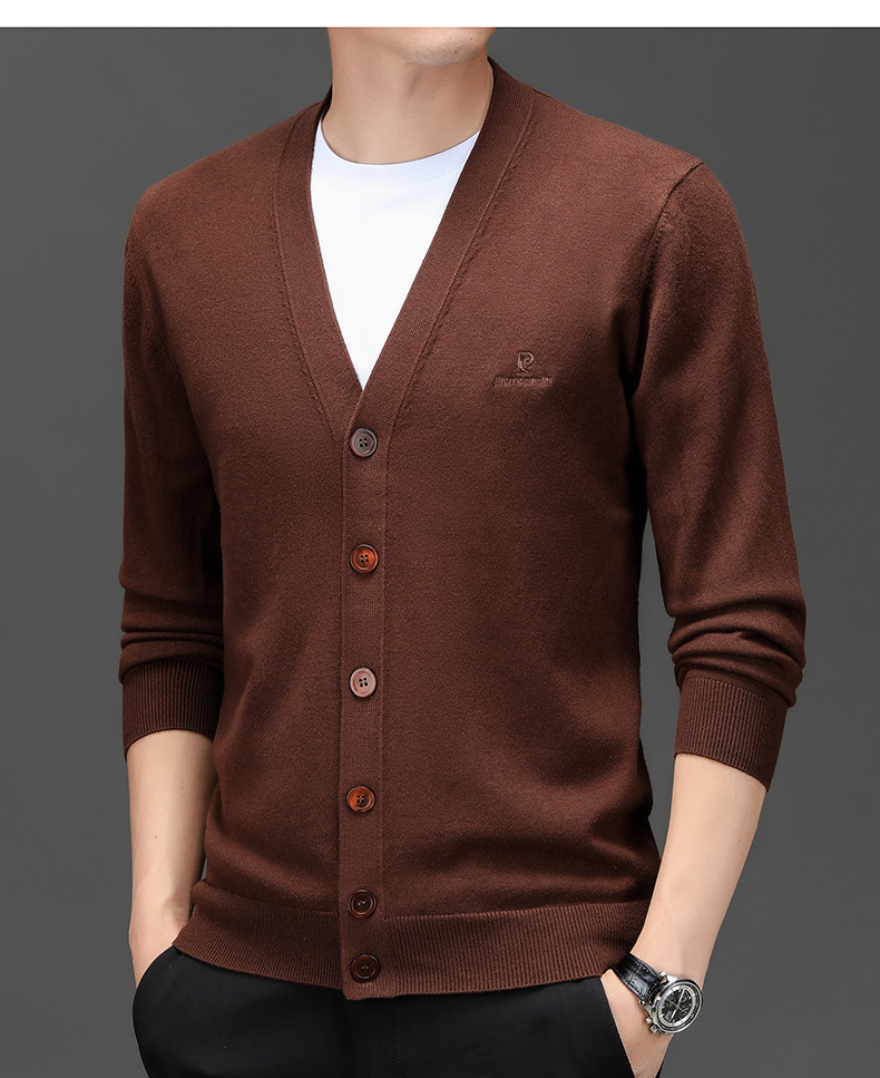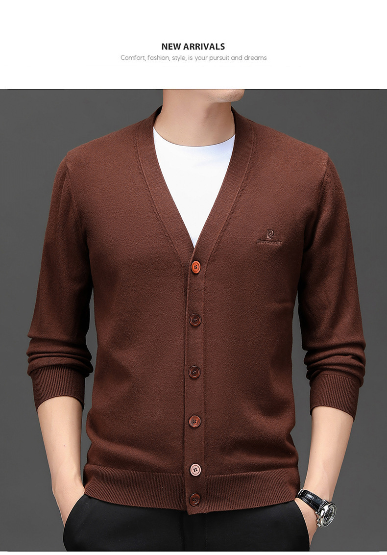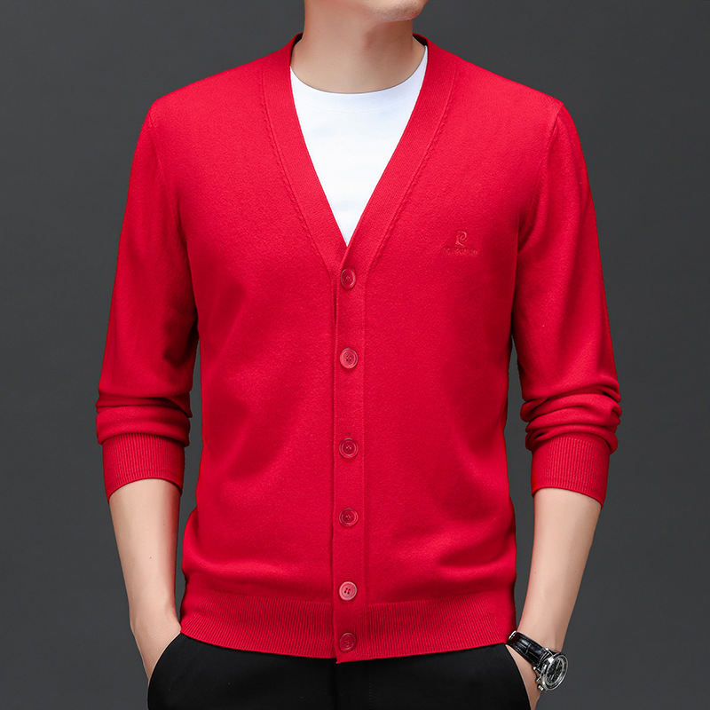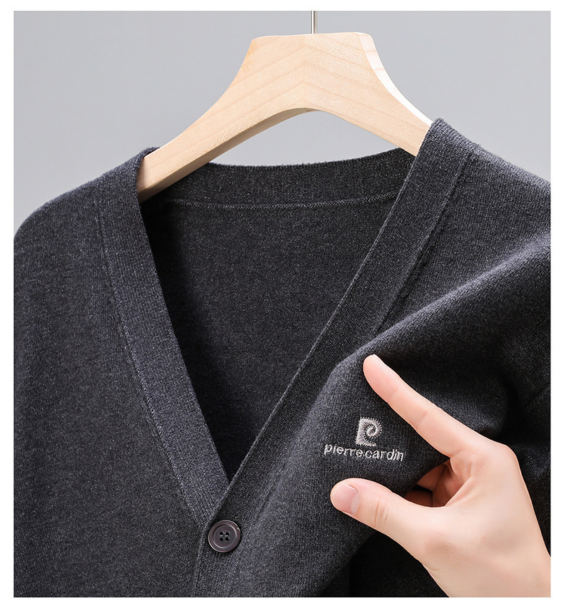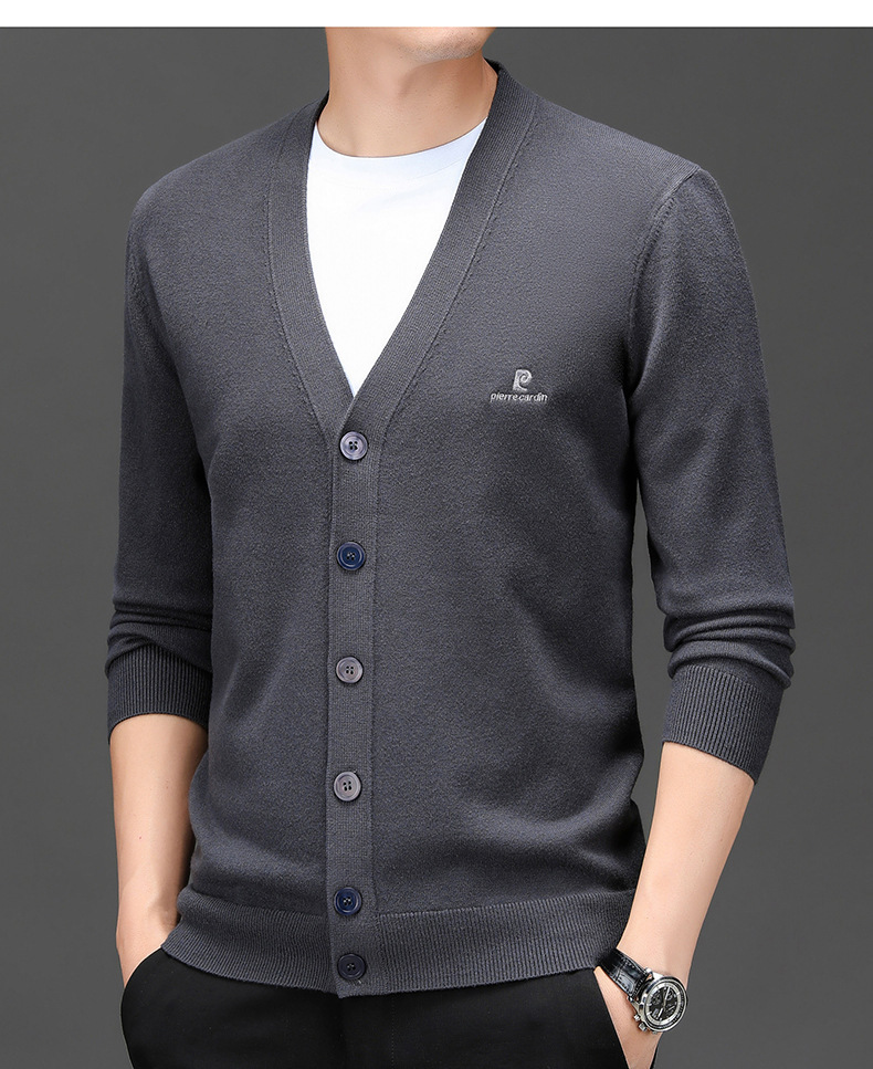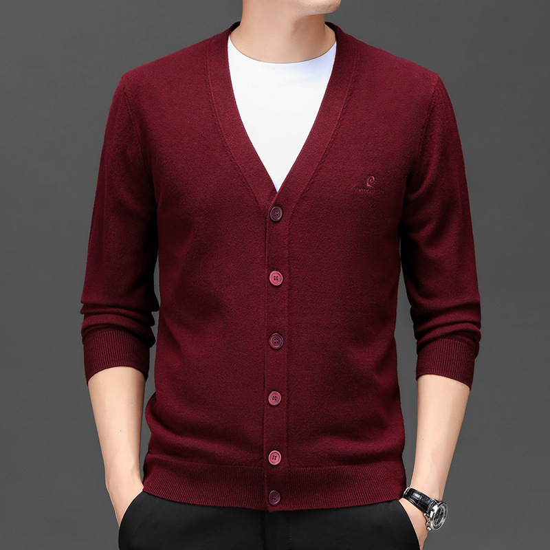 봄 새로운 단색 어깨 느슨한 카디건 남자 하이 엔드 V 넥 남자 니트 카디건스토어 가기