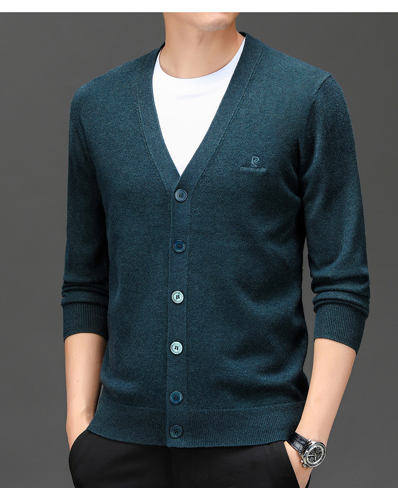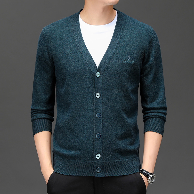 봄 새로운 단색 어깨 느슨한 카디건 남자 하이 엔드 V 넥 남자 니트 카디건