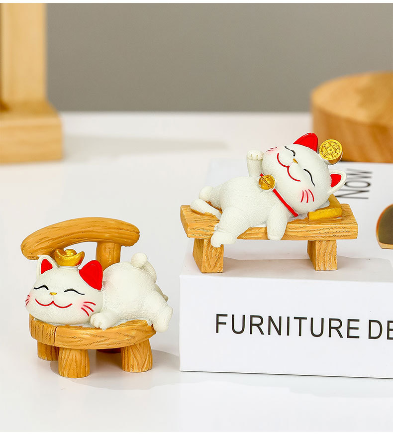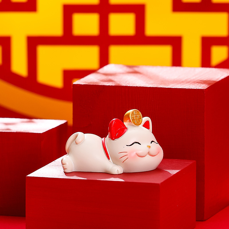 거짓말과 승리 행운의 고양이 작은 장식품 귀여운 고양이 사무실 데스크탑 장식 워크 스테이션 감압 선물 홈 인테리어스토어 가기