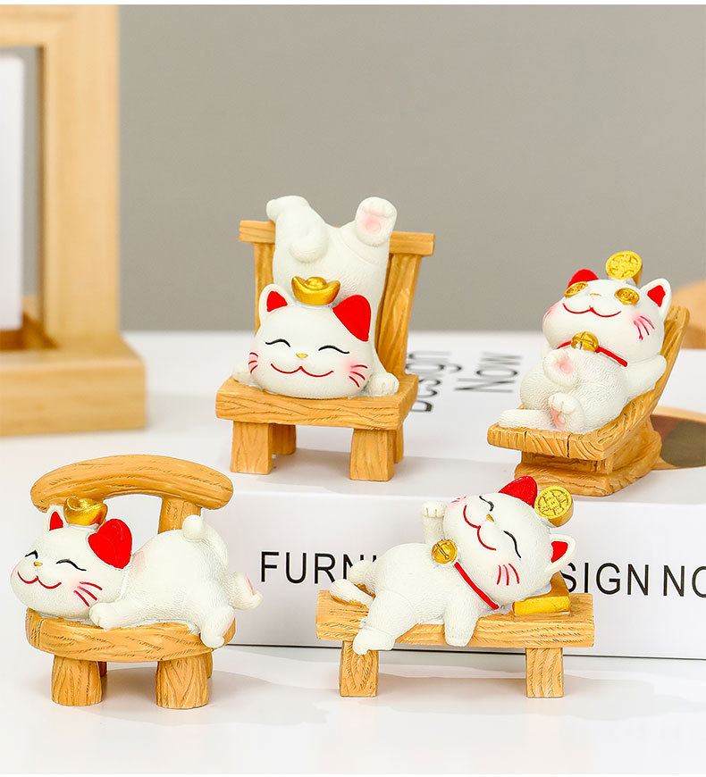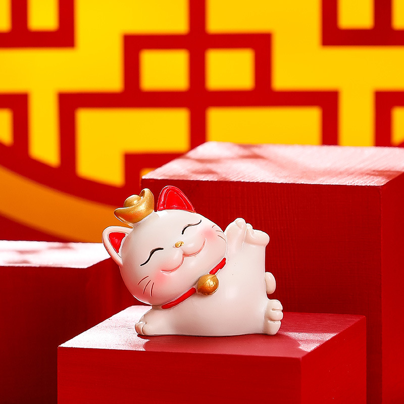 거짓말과 승리 행운의 고양이 작은 장식품 귀여운 고양이 사무실 데스크탑 장식 워크 스테이션 감압 선물 홈 인테리어