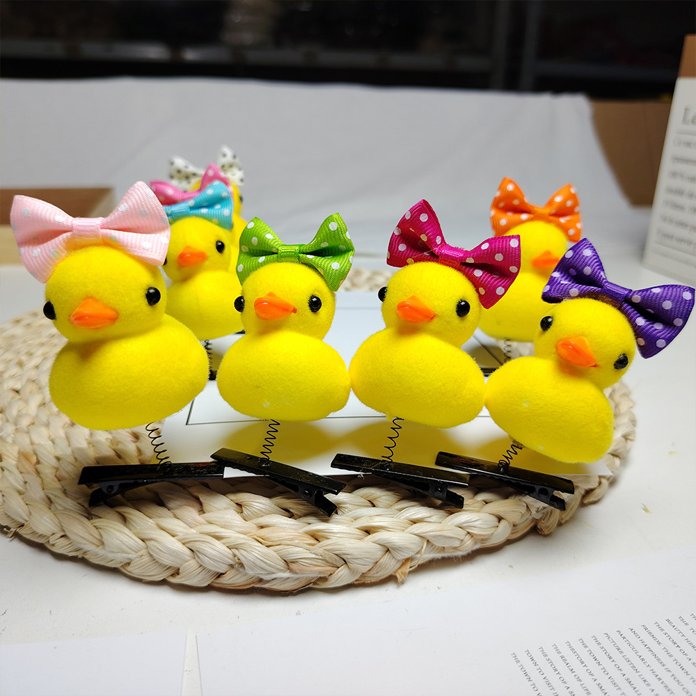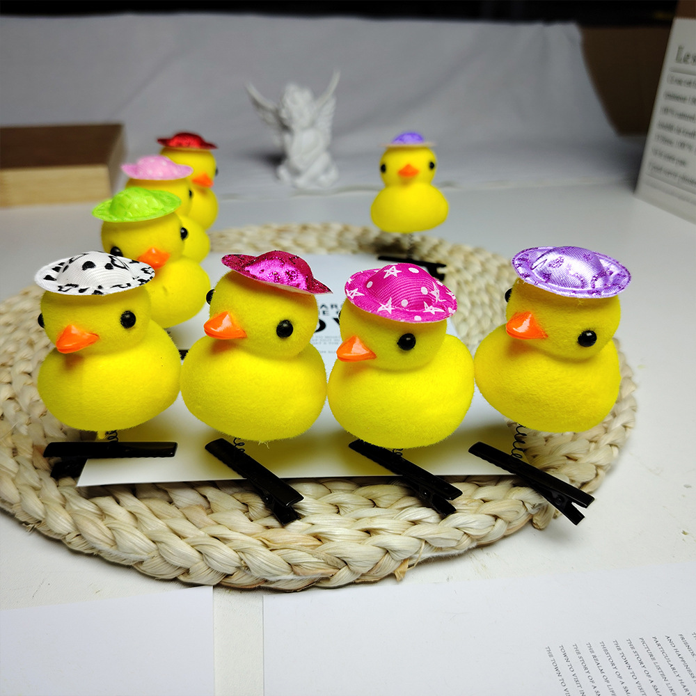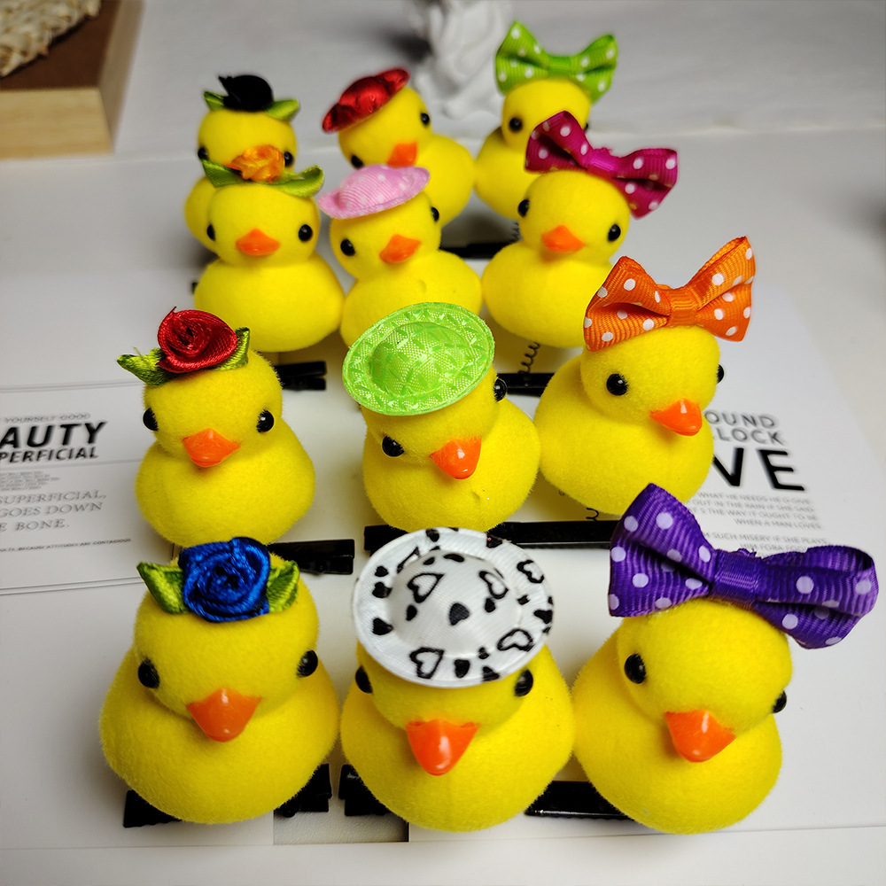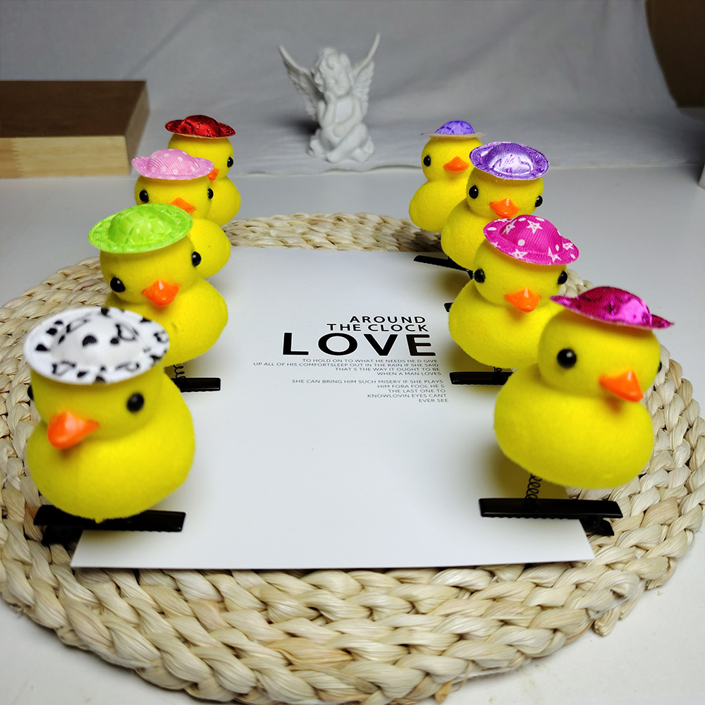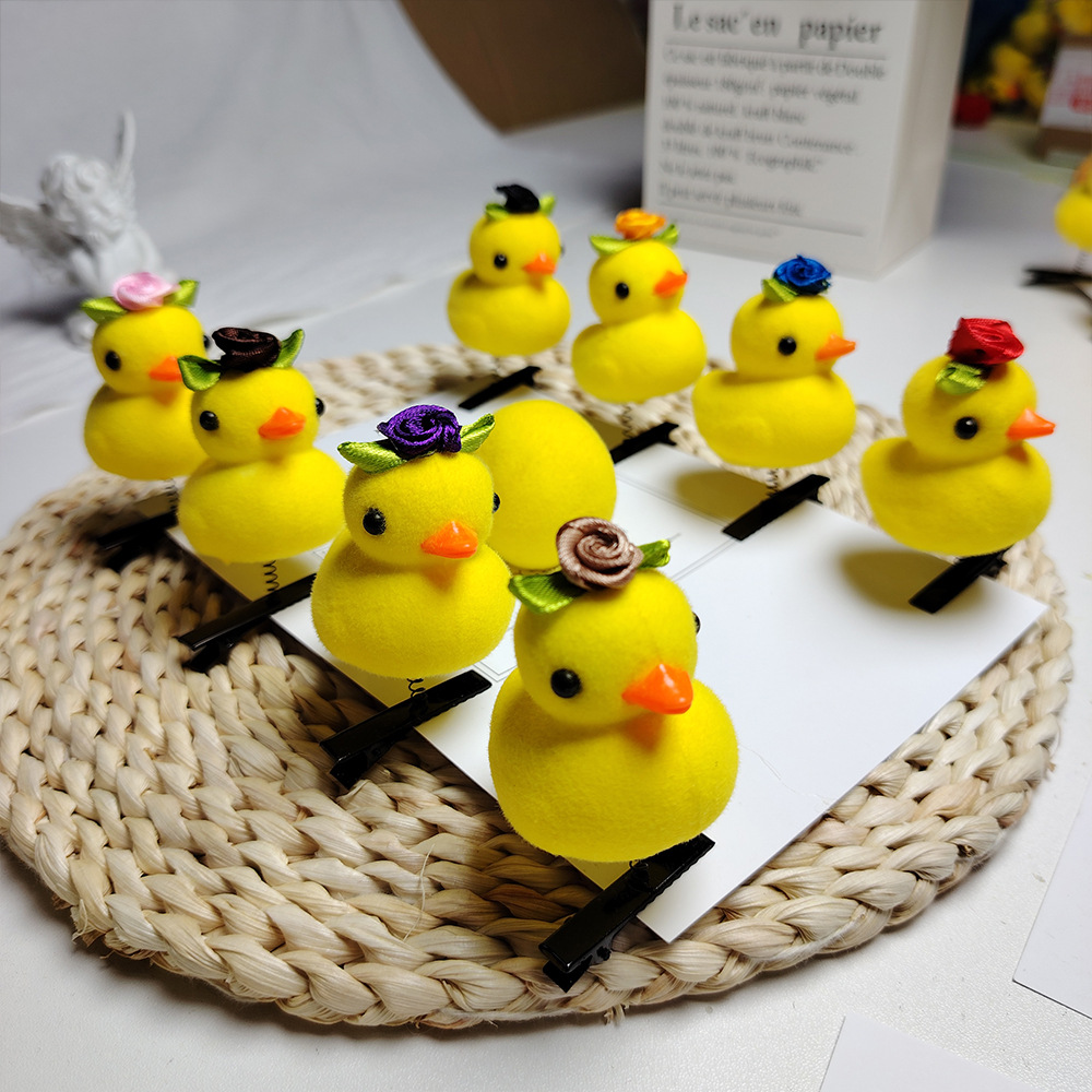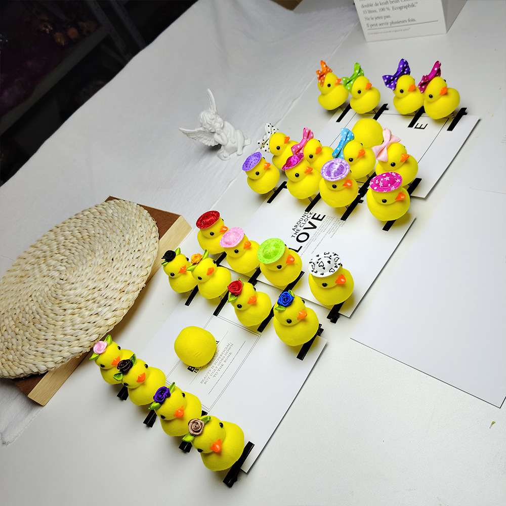 귀엽고 부드러운 작은 노란색 오리 머리핀, 인터넷 연예인 같은 스타일, 귀여운 유물, 입체 머리 장식, 노점 야시장 도매