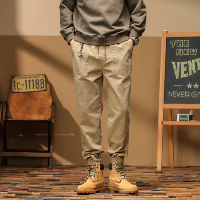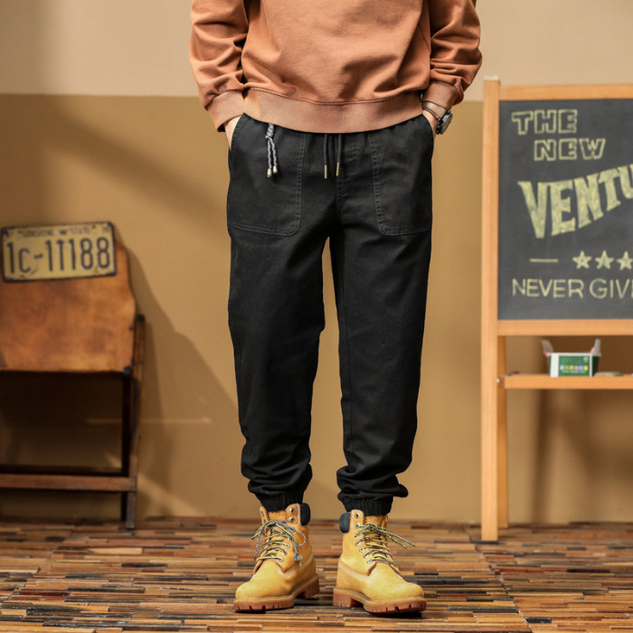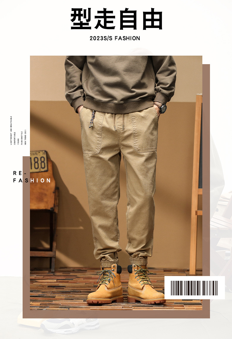 2024 여름 빗 면화 슬림 핏 캐주얼 바지 콘-핏 바지 자른 작업 바지 남자 할란 스포츠 바지 남자스토어 가기