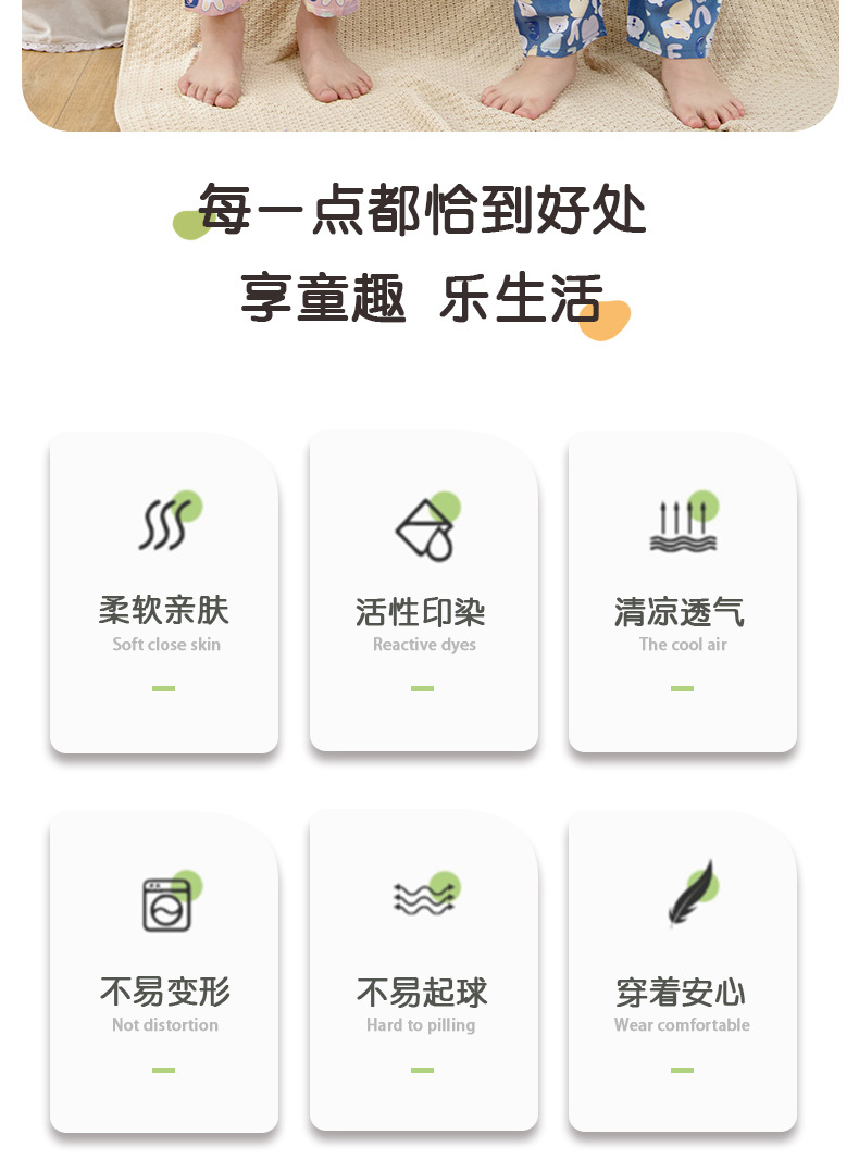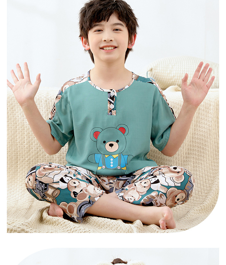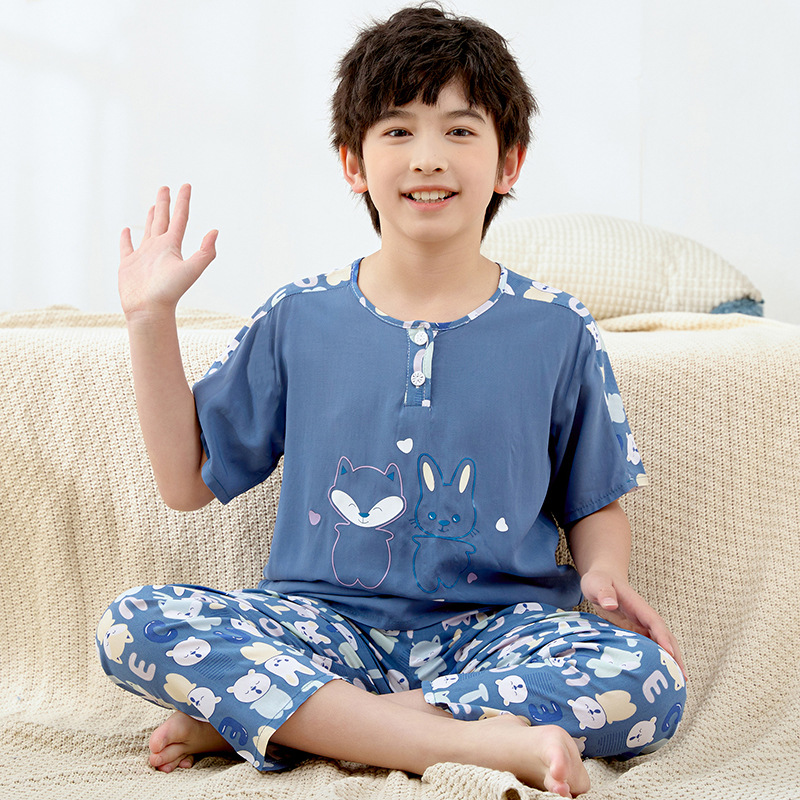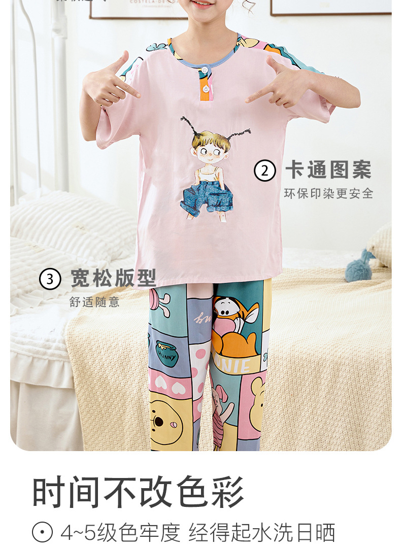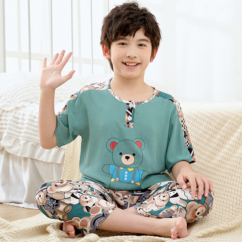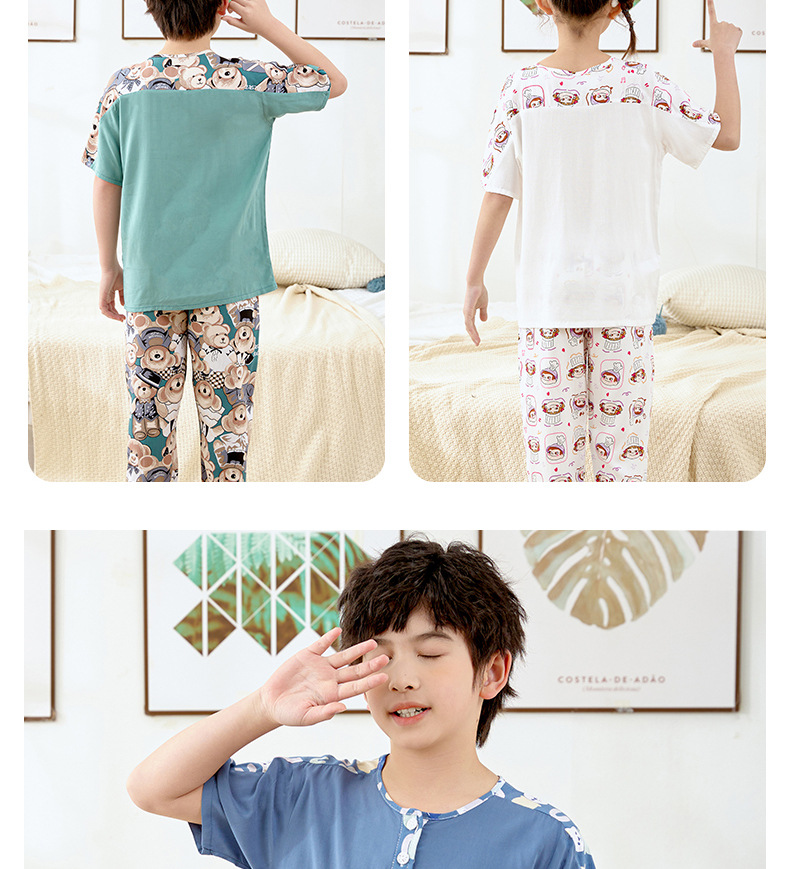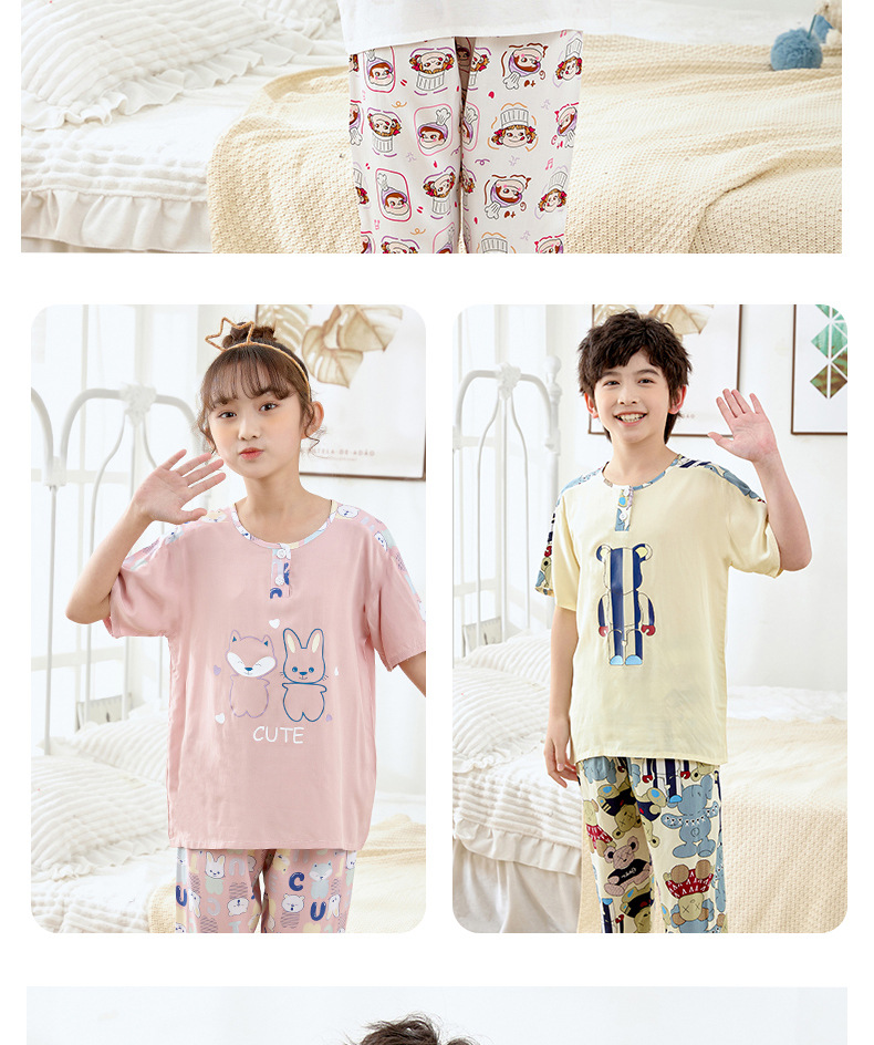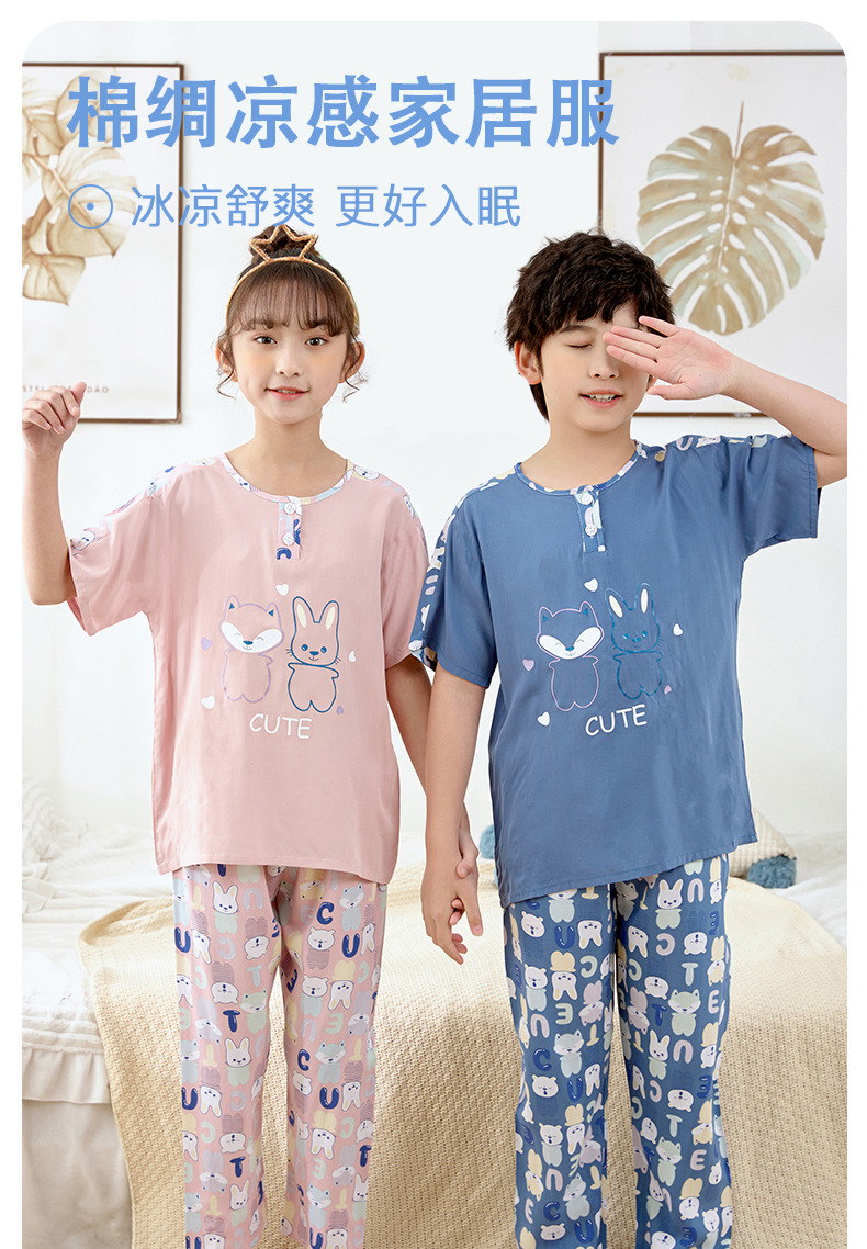 여름 아동면 파자마 짧은 소매 바지면 실크 세트 소년 소녀 에어컨 의류 홈 의류 헤어 세대스토어 가기