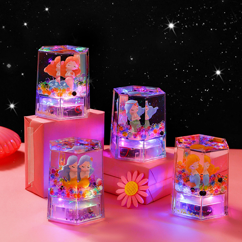 빛나는 거품 구슬 인어 기름 방울 액체 모래 병 창조적 인 선물 바탕 화면 장식 플라스틱 음악 상자