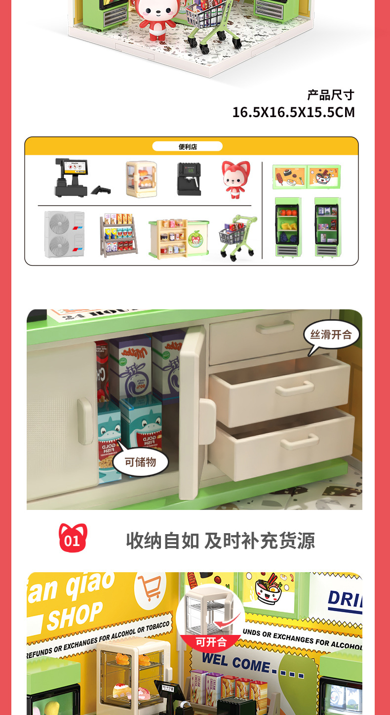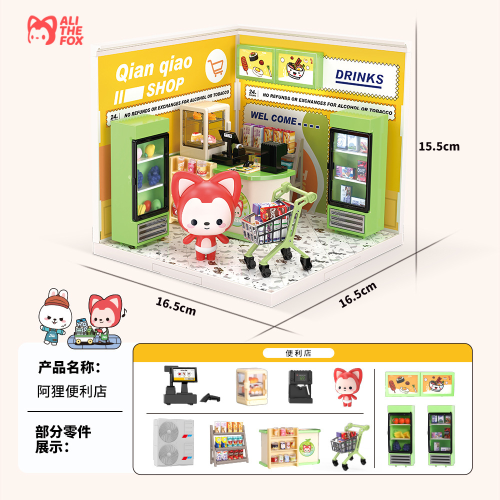 알리 시리즈 미니어처 빌딩 블록 매장 편의점 DIY 캐빈 수동 조립 버클 조립 장난감 창조적 인 진자