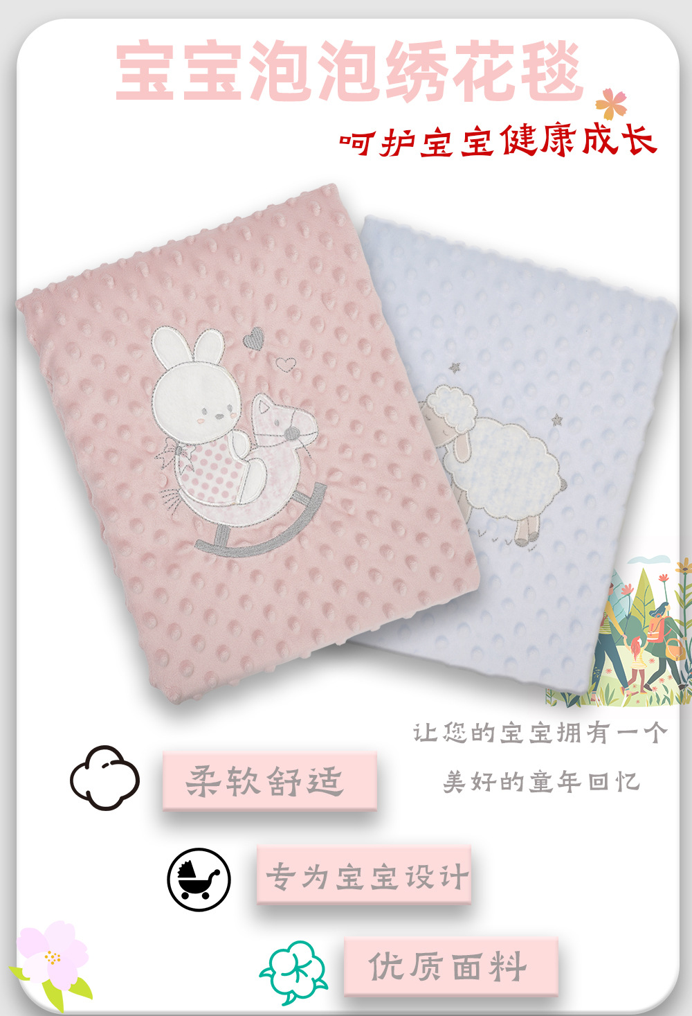 공장 도매 새로운 디자인 아기 자수 거품 담요 아기 사계절 사용 가능한 담요 담요스토어 가기