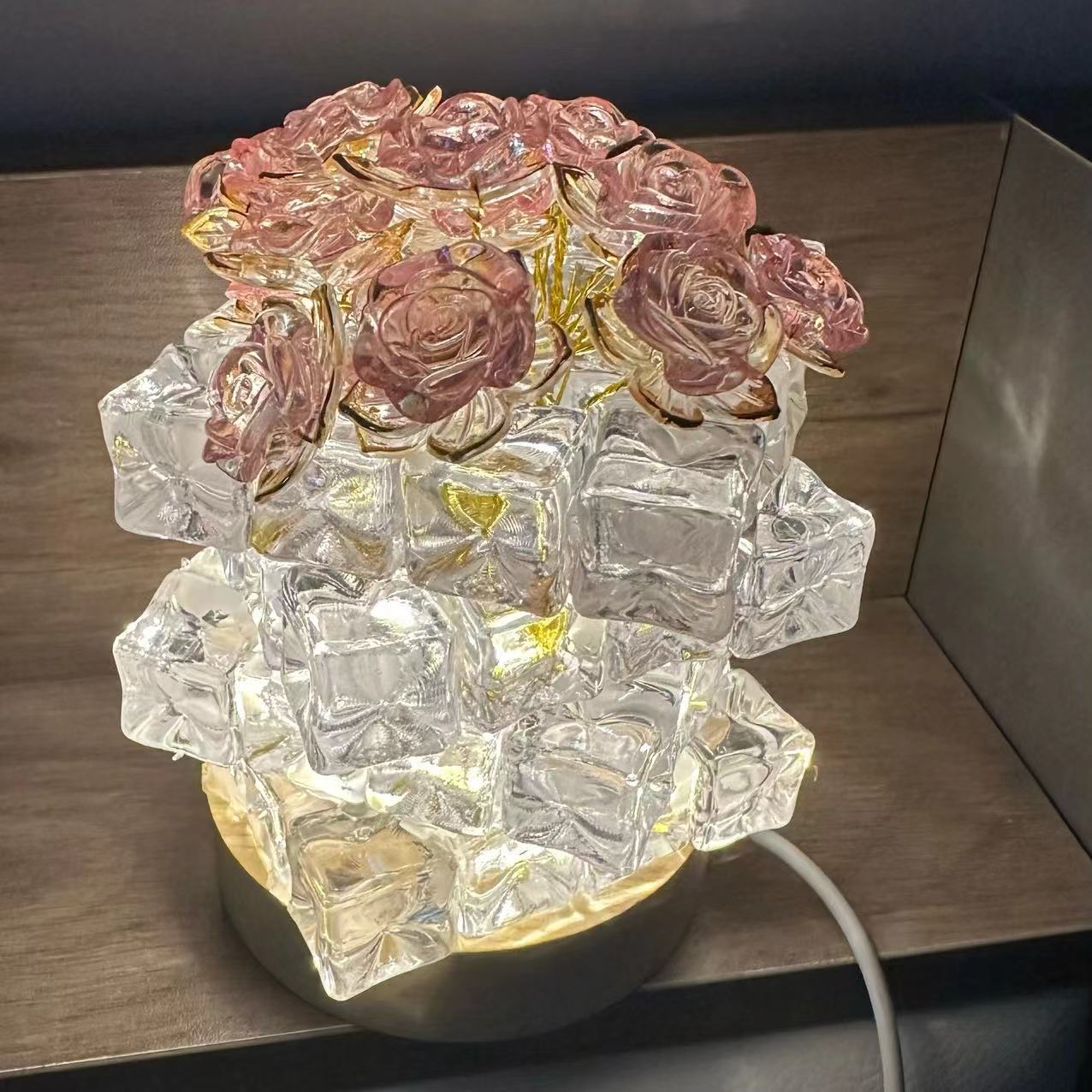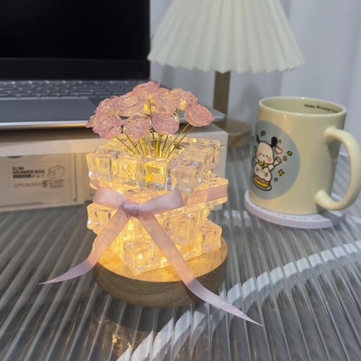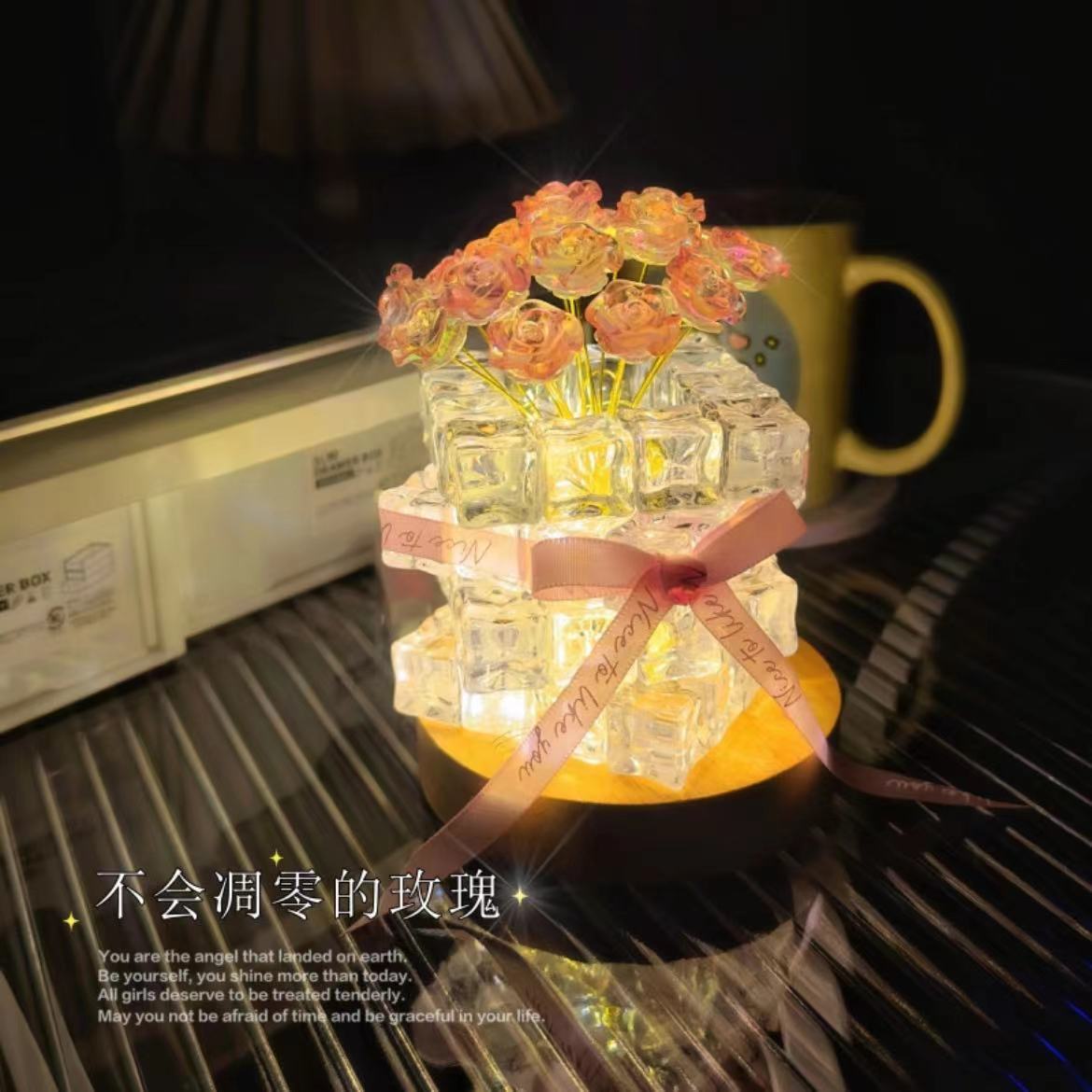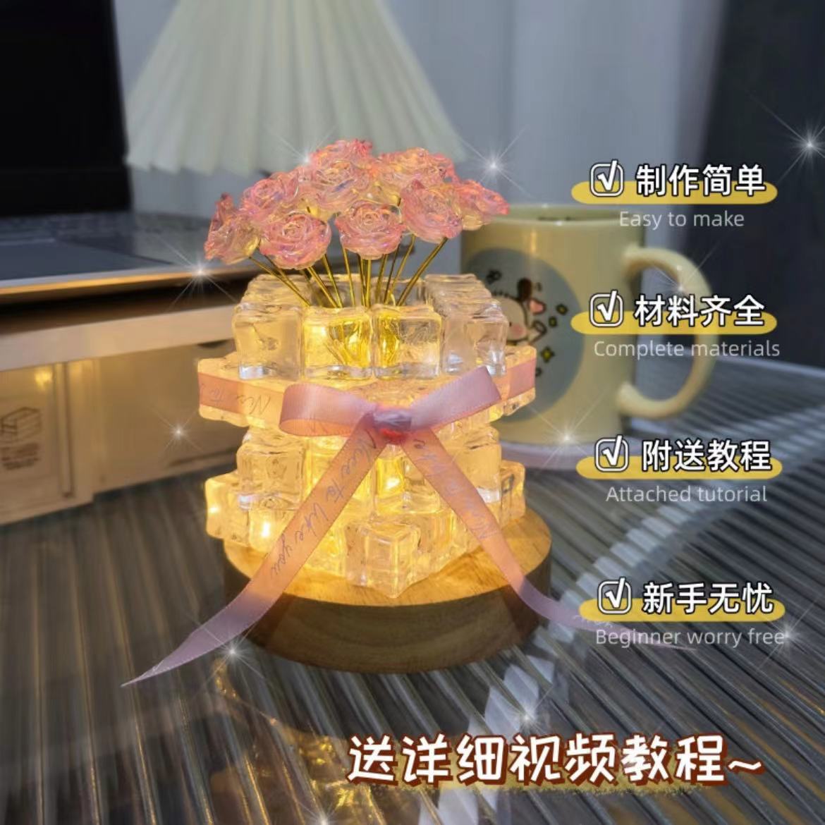 여자 친구 커플 BFF 발렌타인 데이 생일 선물을위한 수제 DIY 로즈 아이스 나이트 라이트 소재 가방
