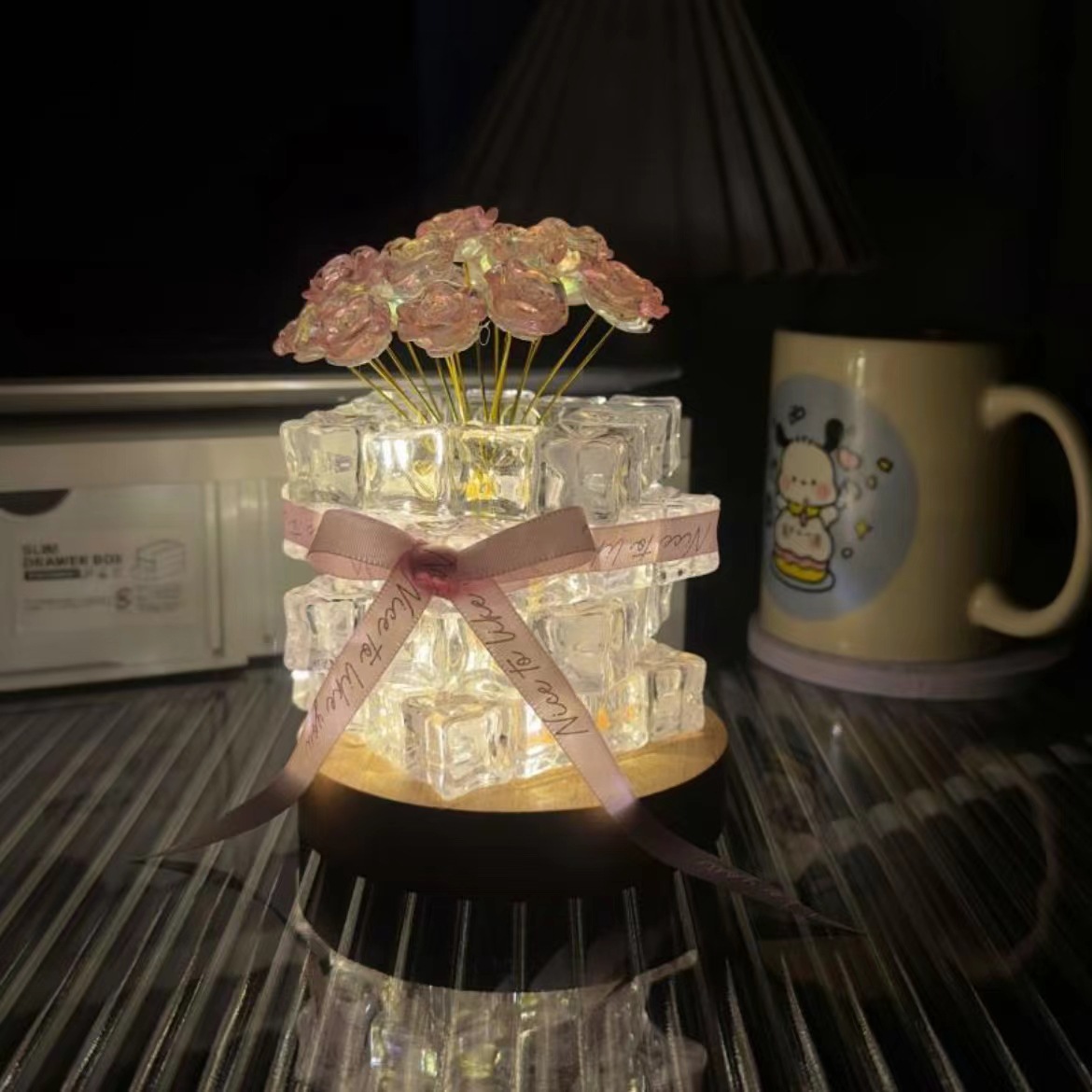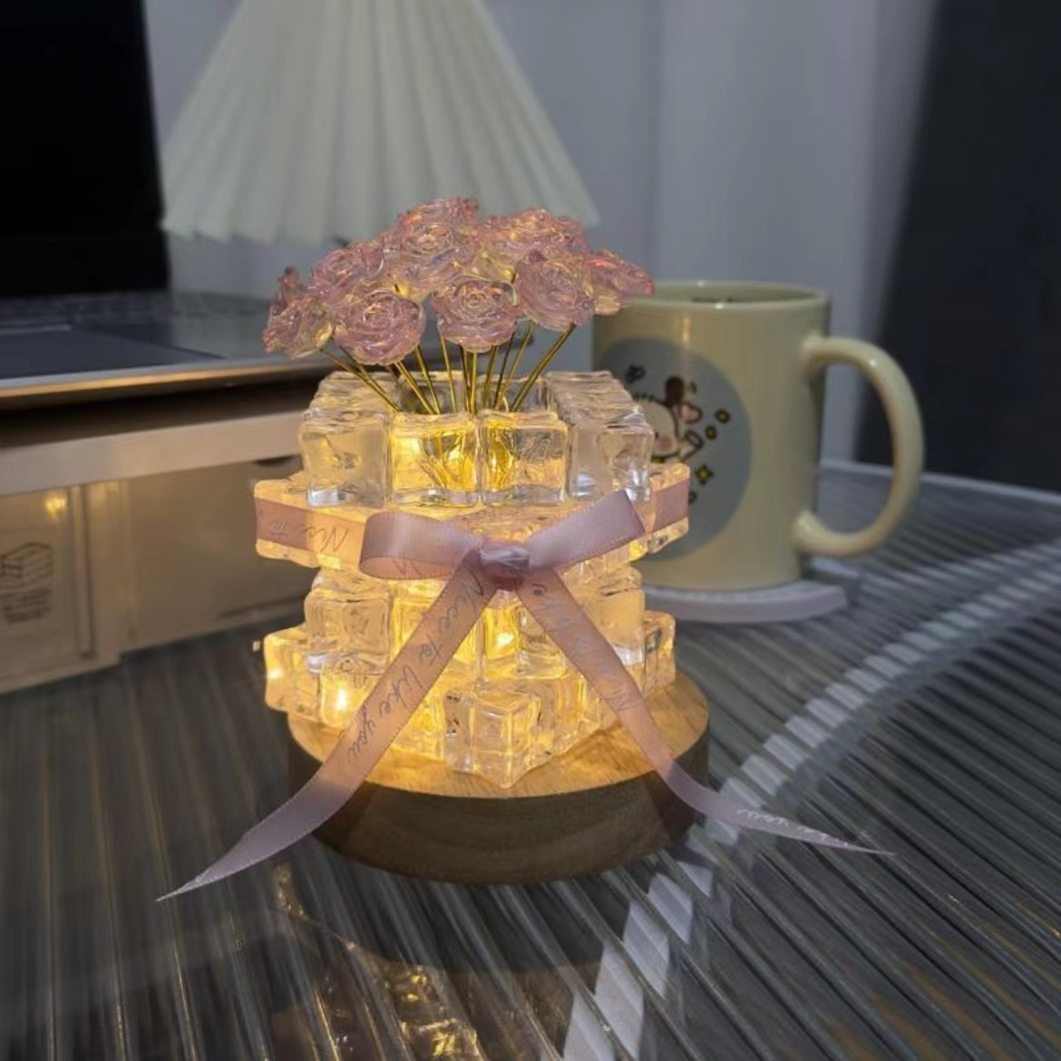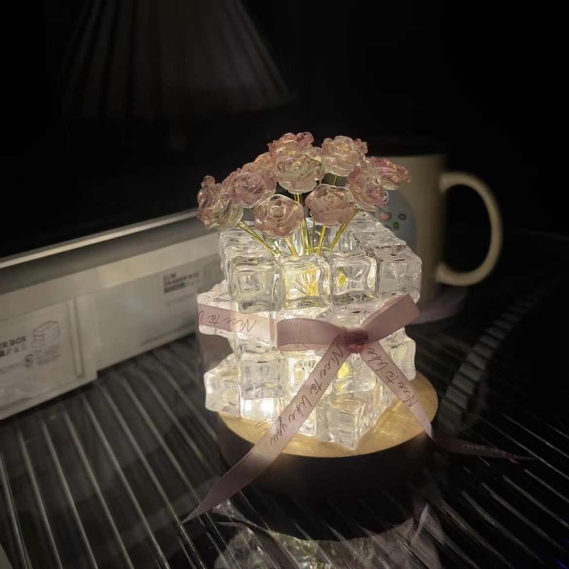 여자 친구 커플 BFF 발렌타인 데이 생일 선물을위한 수제 DIY 로즈 아이스 나이트 라이트 소재 가방