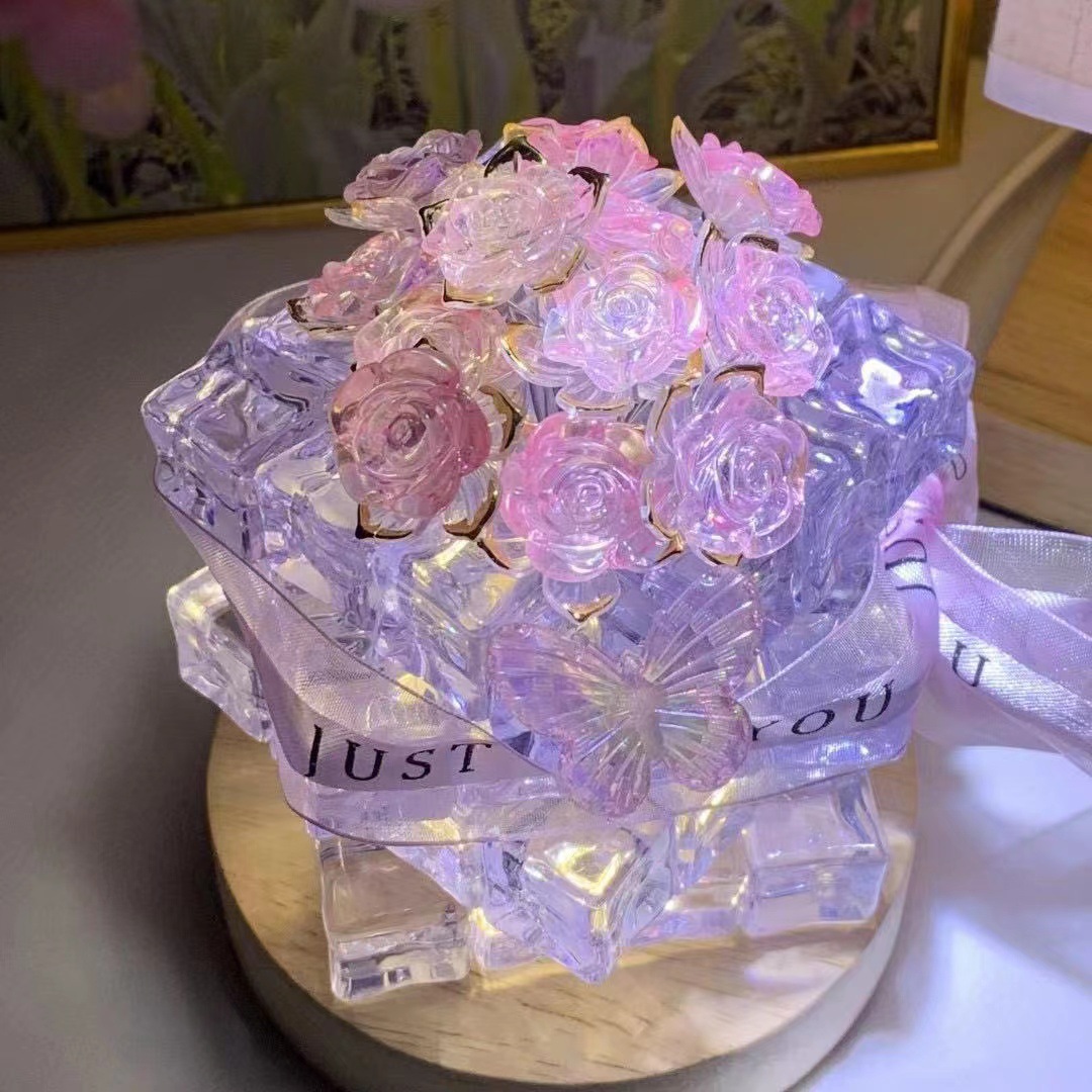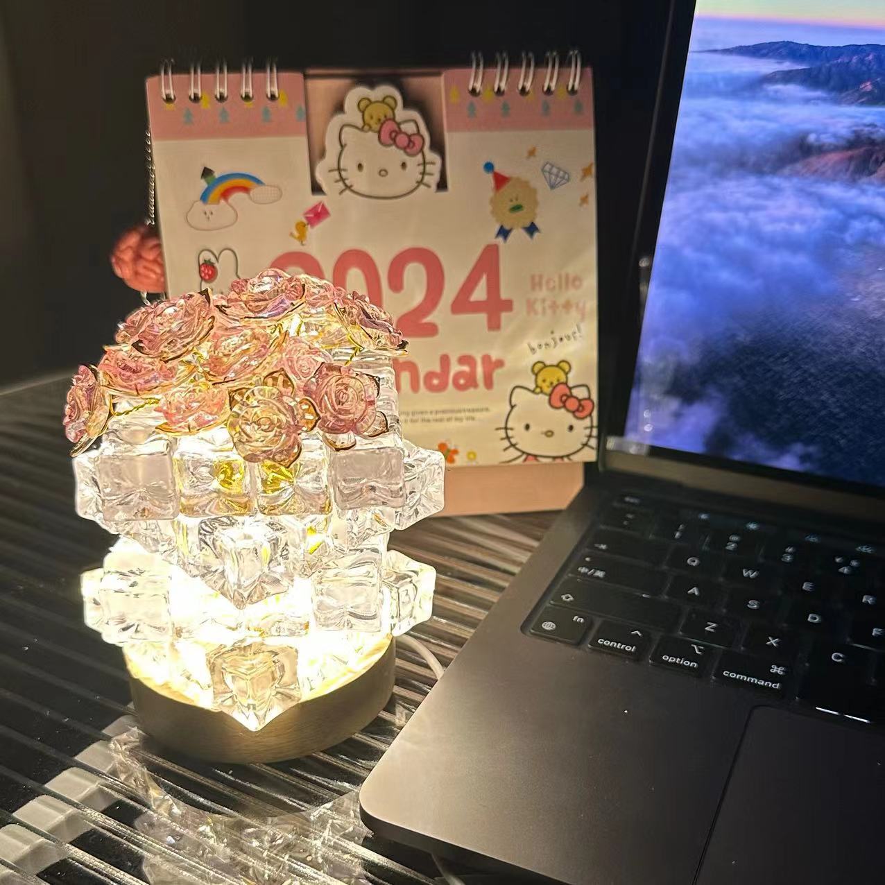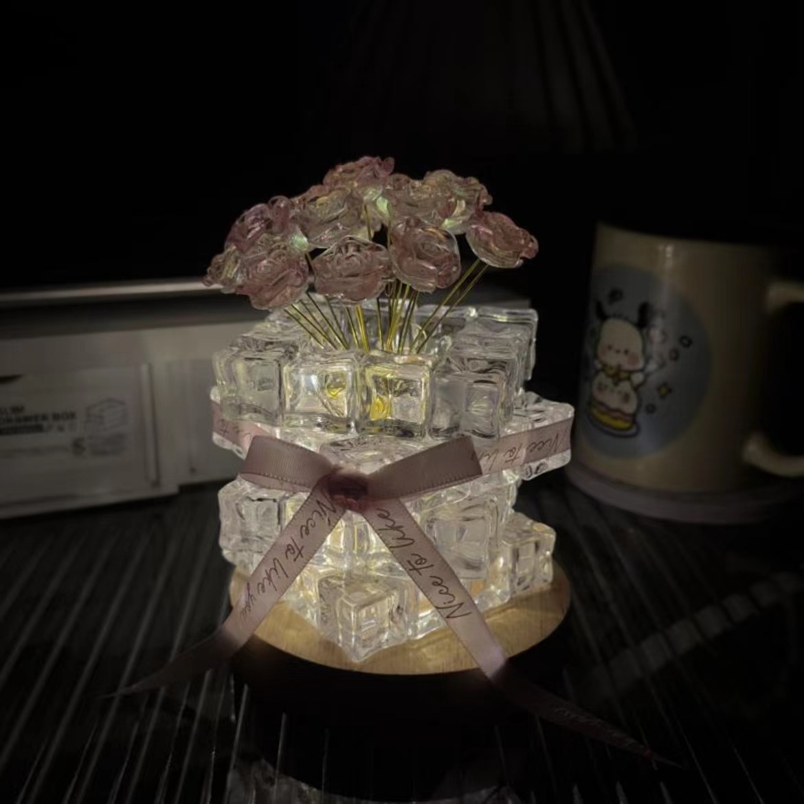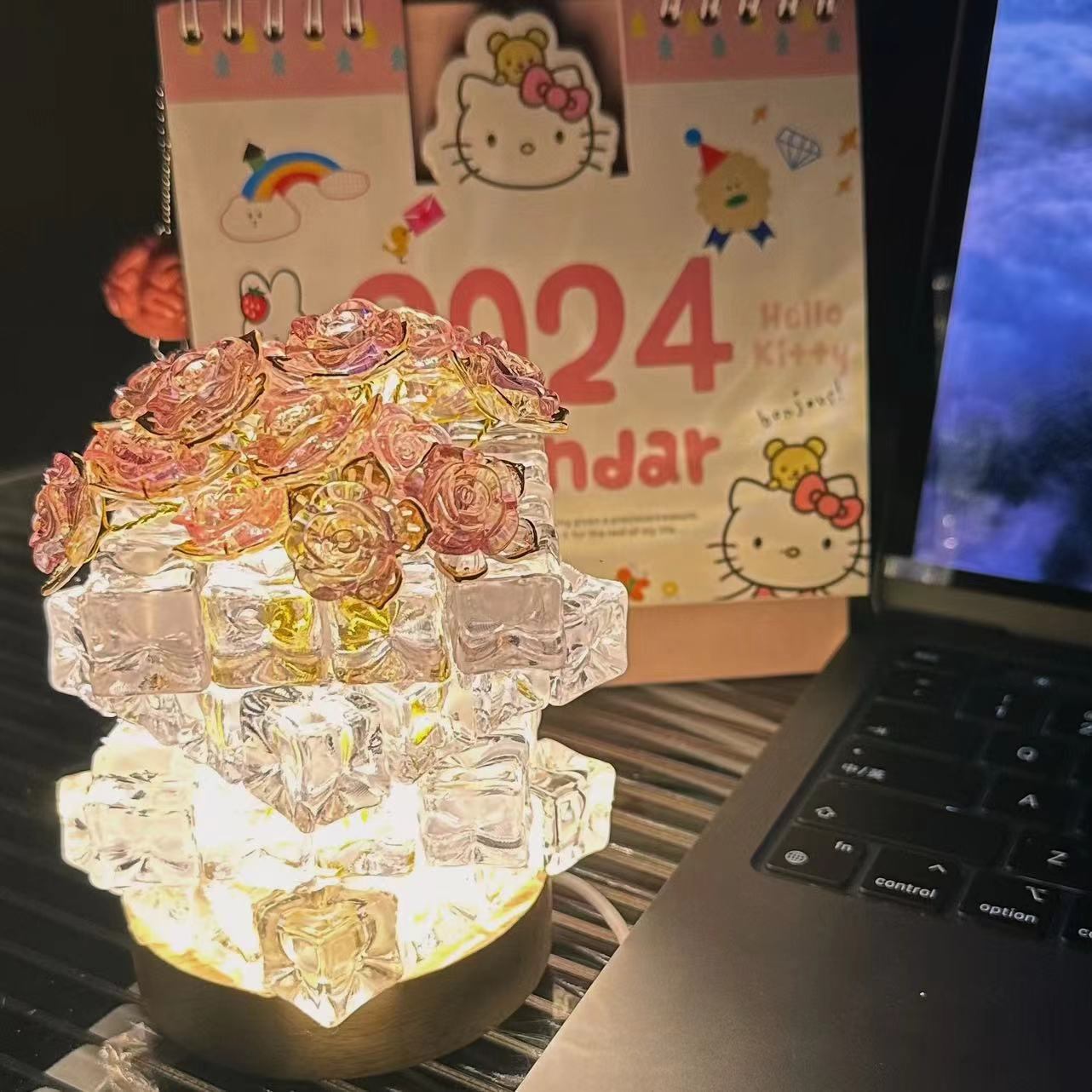 여자 친구 커플 BFF 발렌타인 데이 생일 선물을위한 수제 DIY 로즈 아이스 나이트 라이트 소재 가방