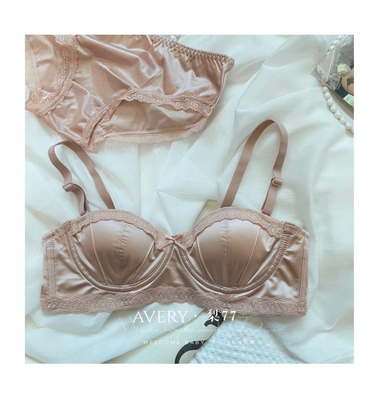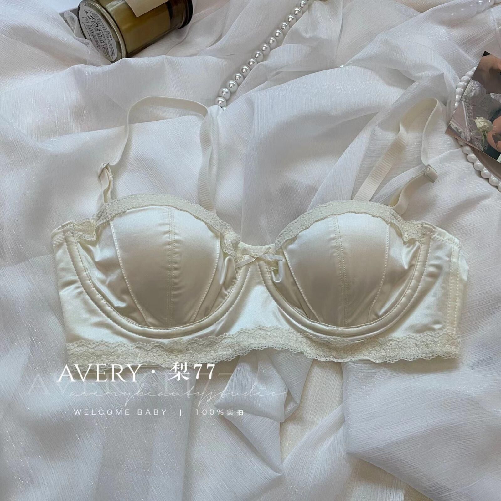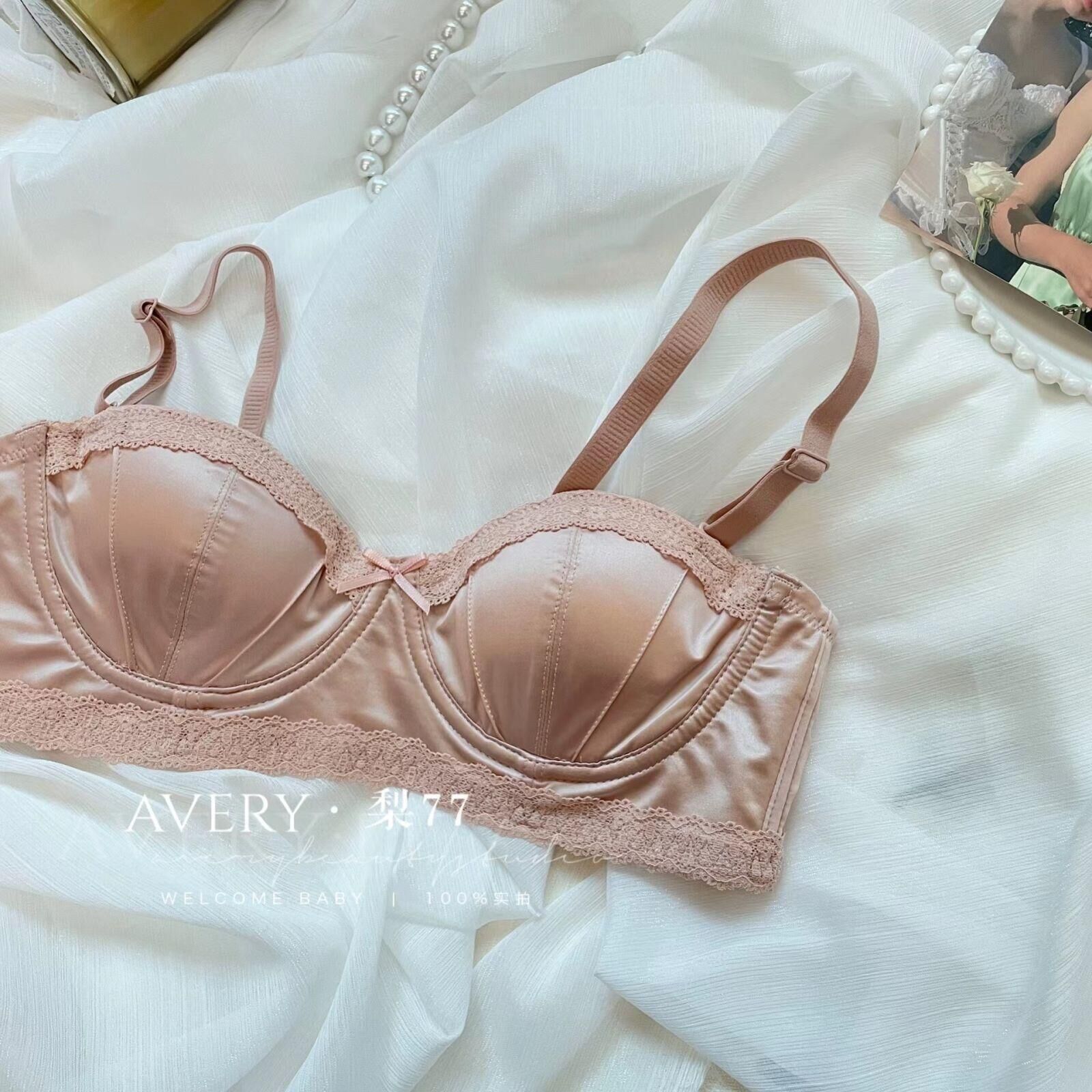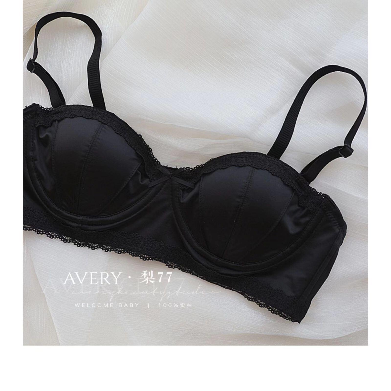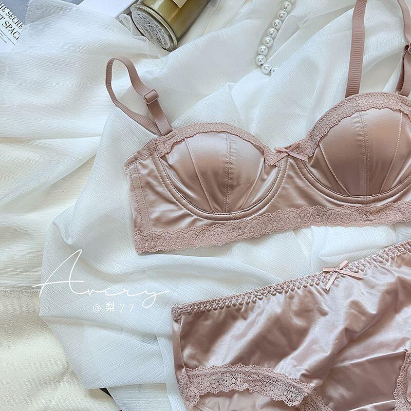 프렌치 스타일 라이트 럭셔리 실크 새틴 속옷 여성의 작은 가슴 푸시 업 소프트 스틸 링 트리스 하프 컵 탑업 Girly Bra 세트