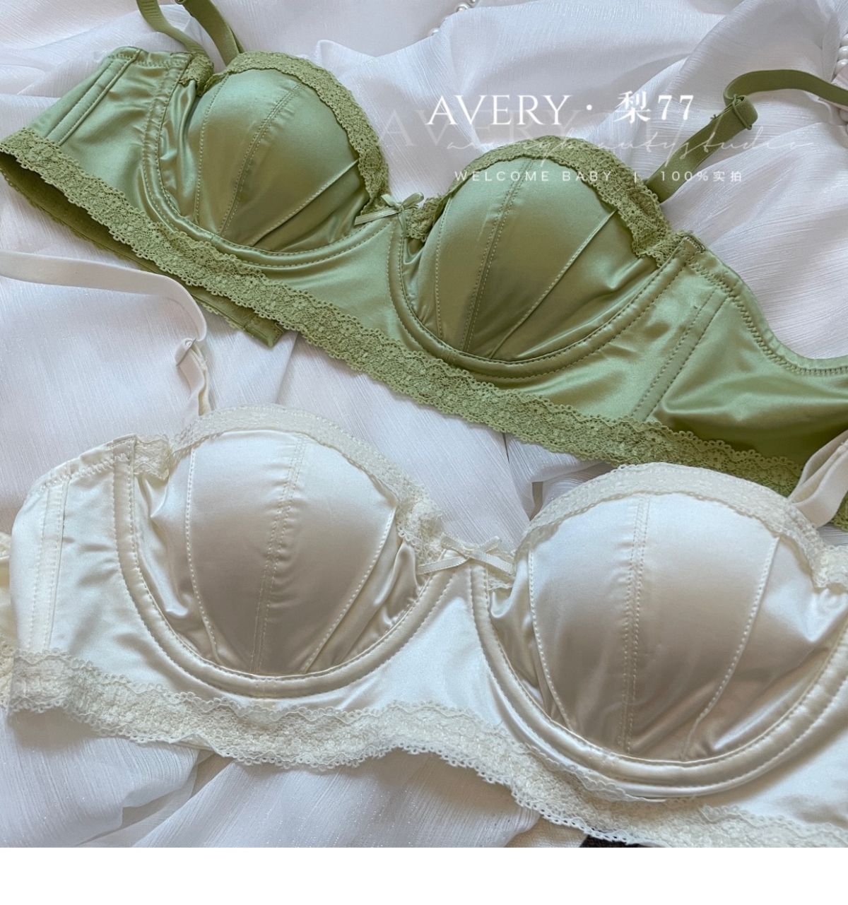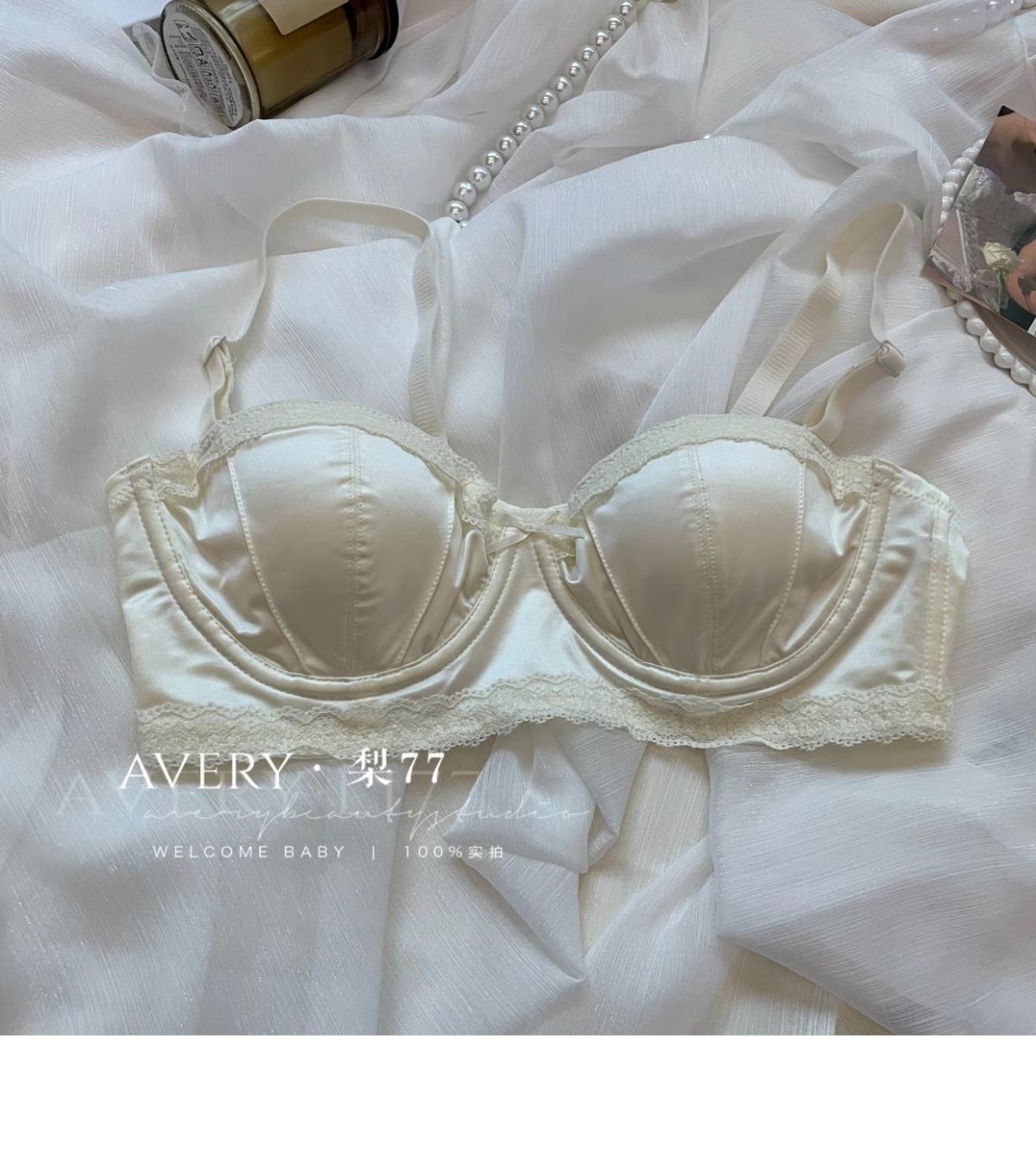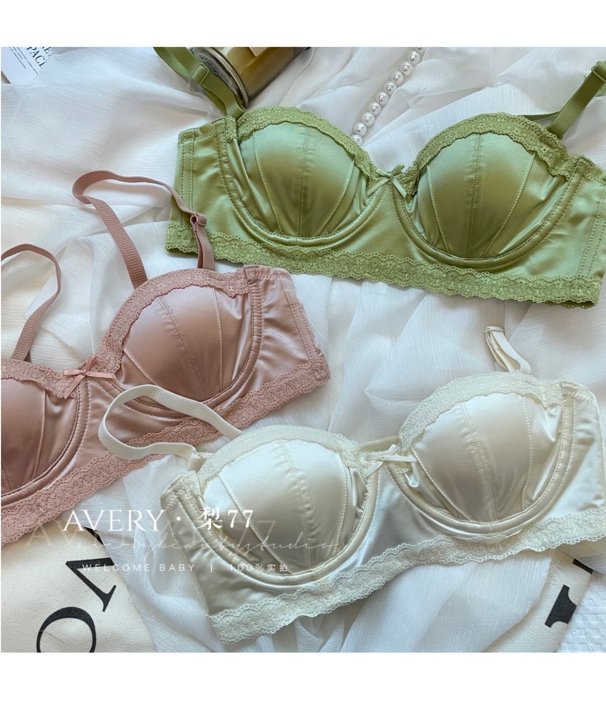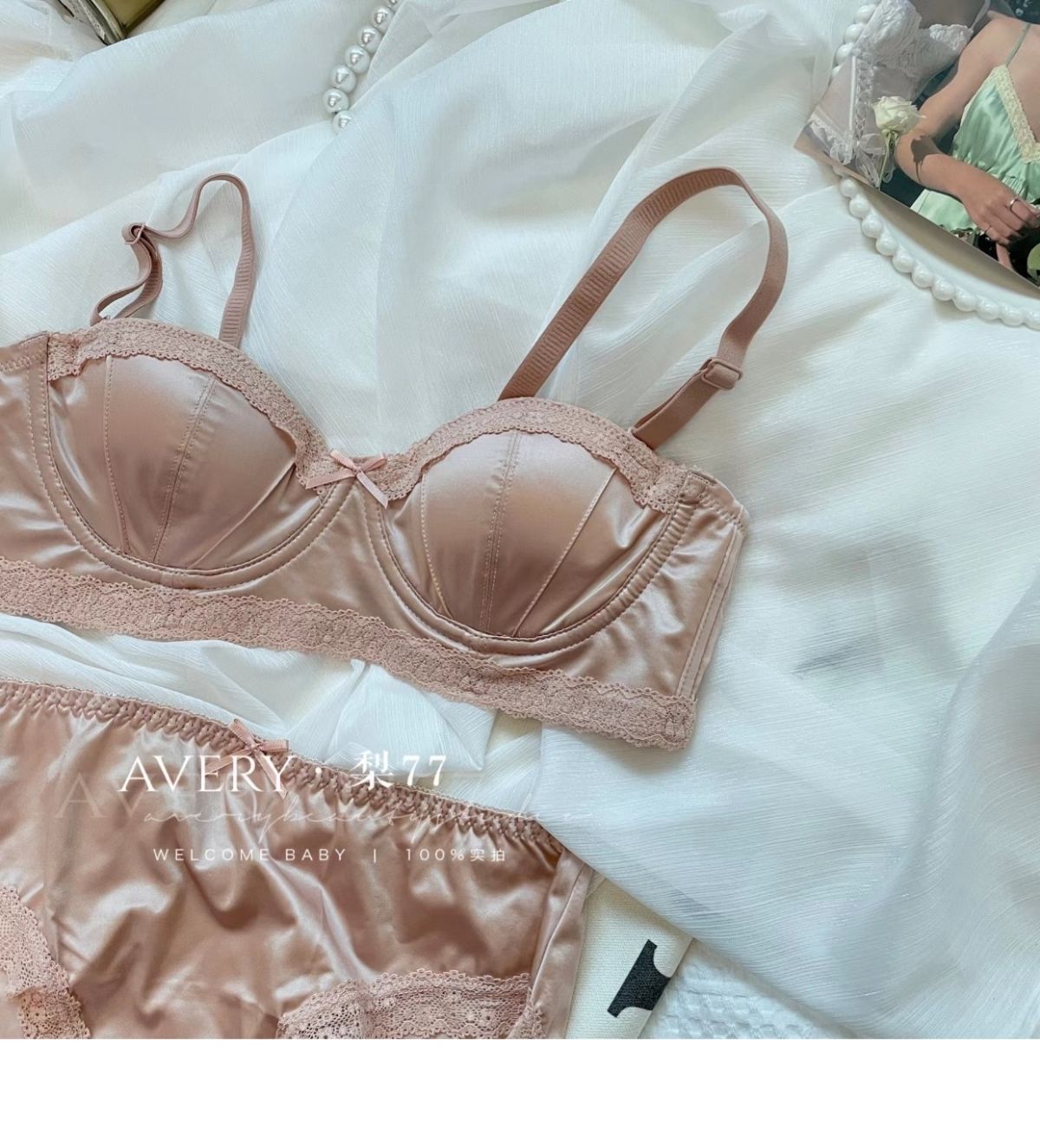 프렌치 스타일 라이트 럭셔리 실크 새틴 속옷 여성의 작은 가슴 푸시 업 소프트 스틸 링 트리스 하프 컵 탑업 Girly Bra 세트