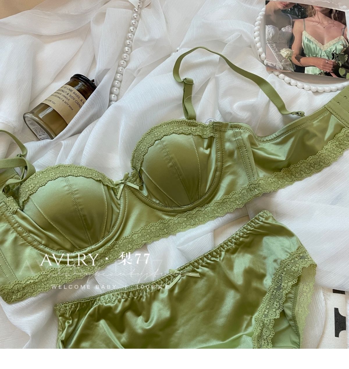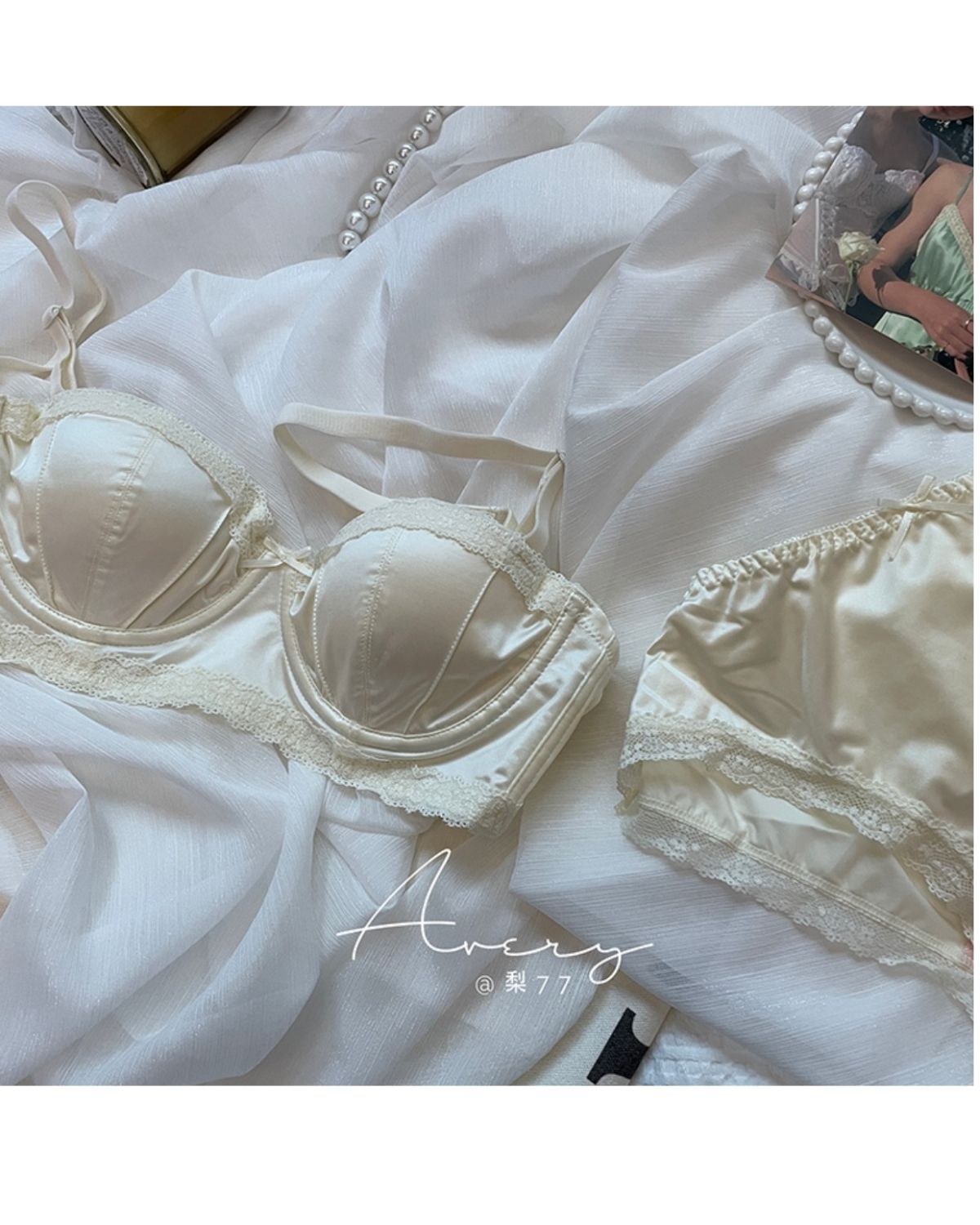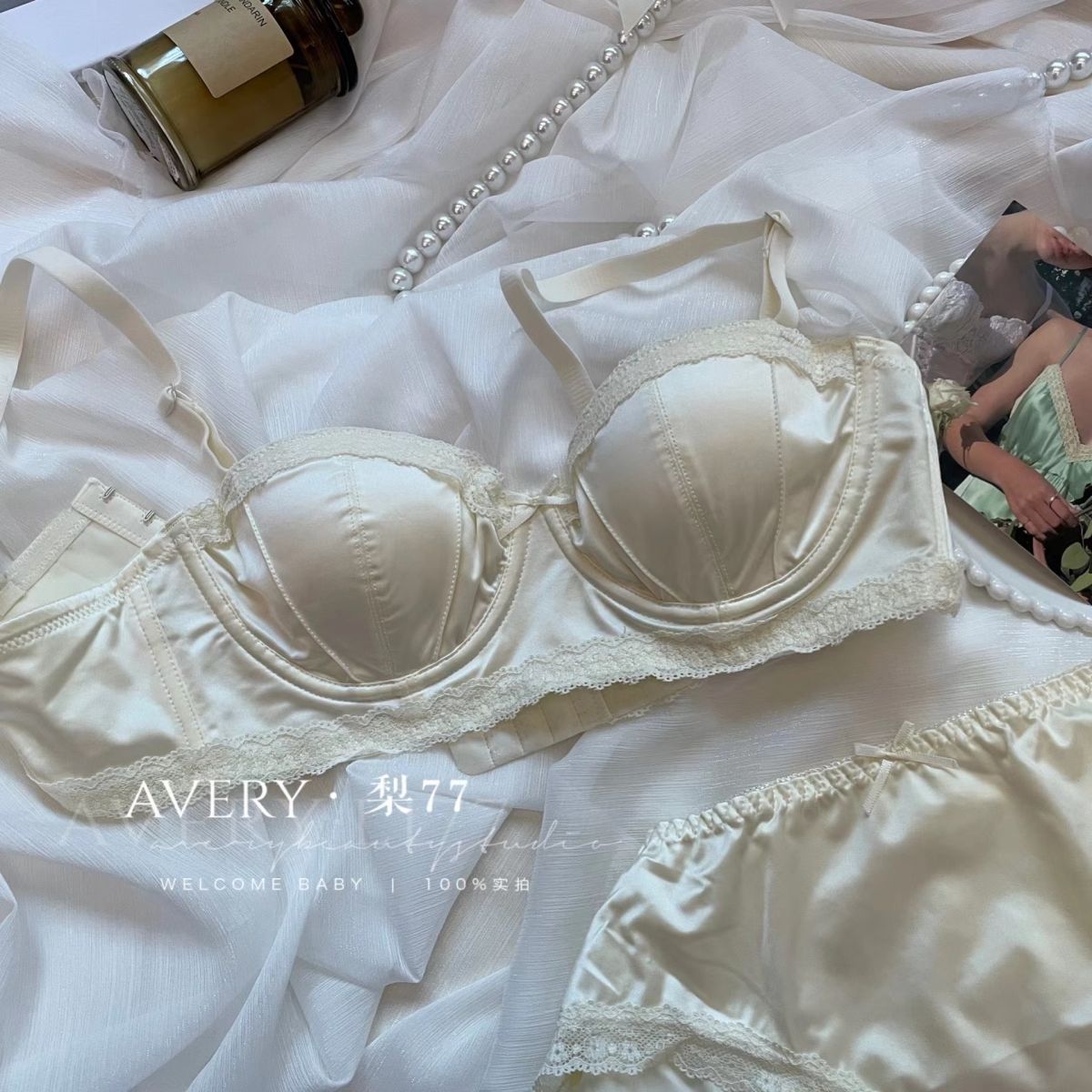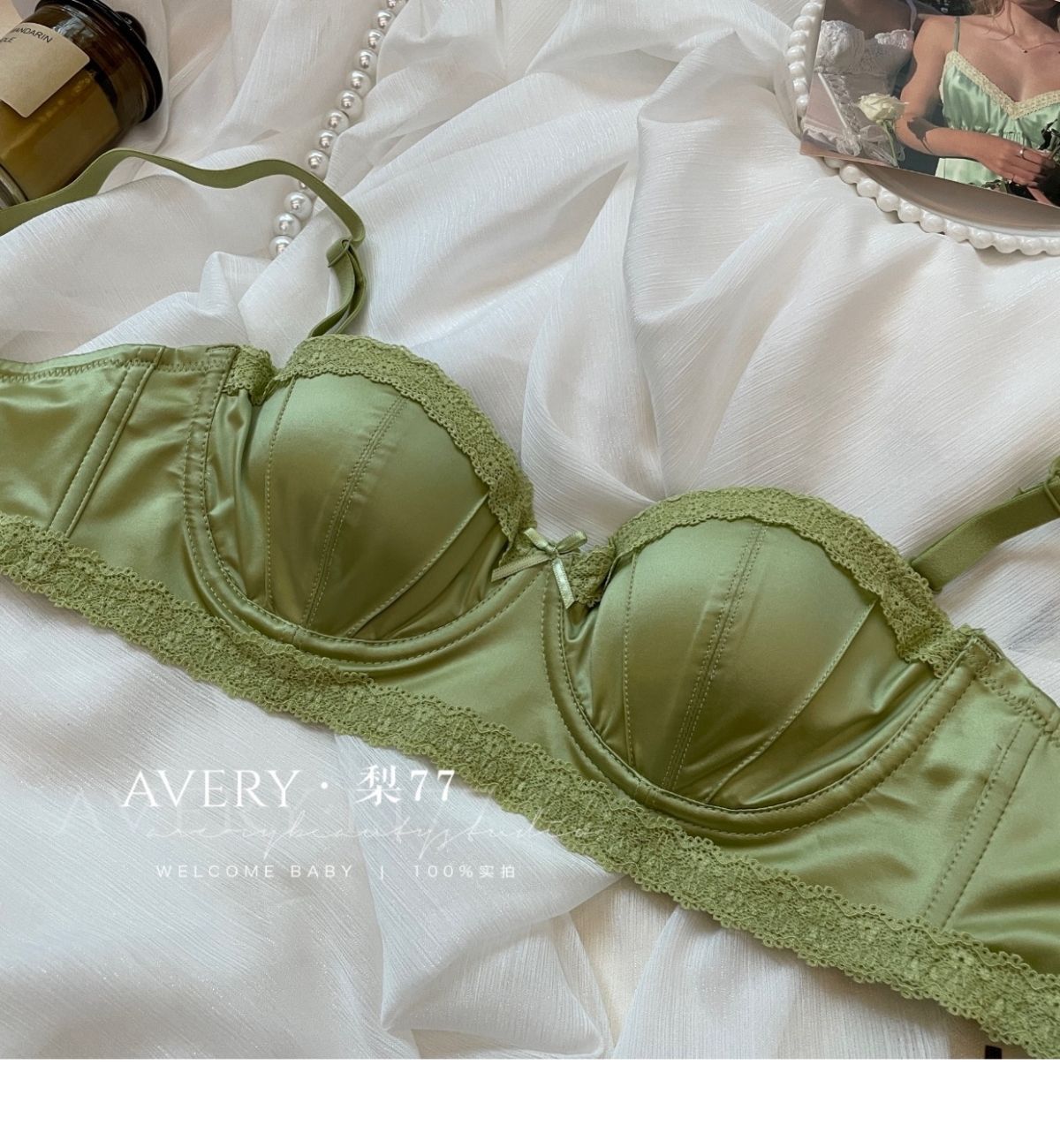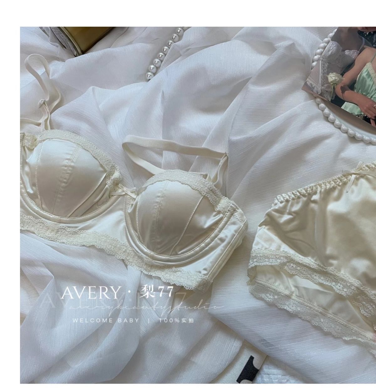 프렌치 스타일 라이트 럭셔리 실크 새틴 속옷 여성의 작은 가슴 푸시 업 소프트 스틸 링 트리스 하프 컵 탑업 Girly Bra 세트
