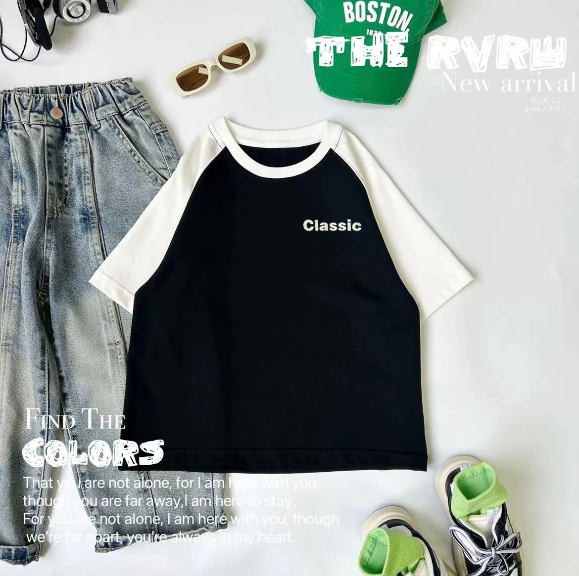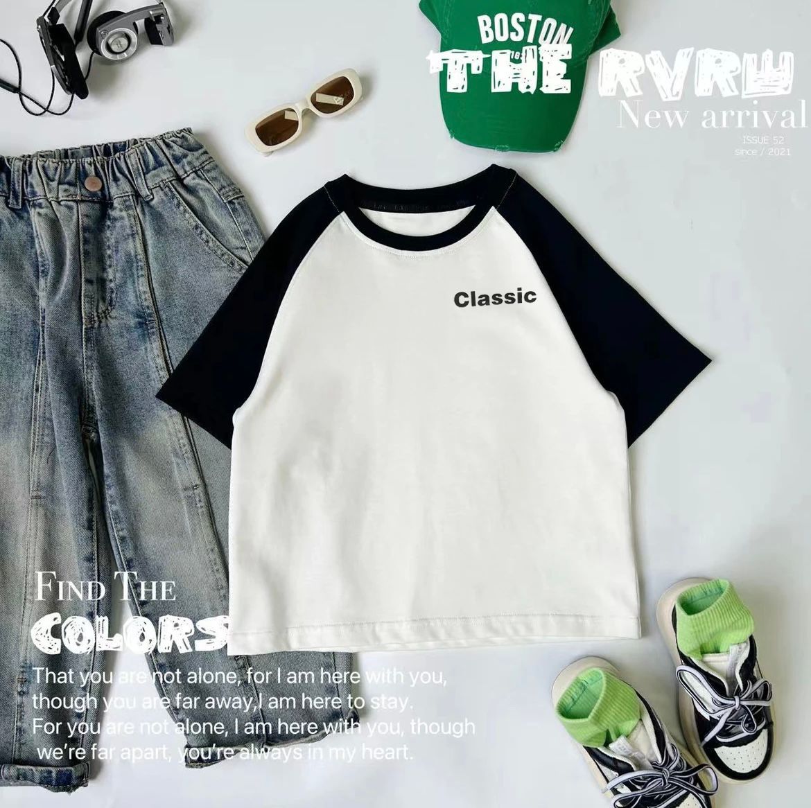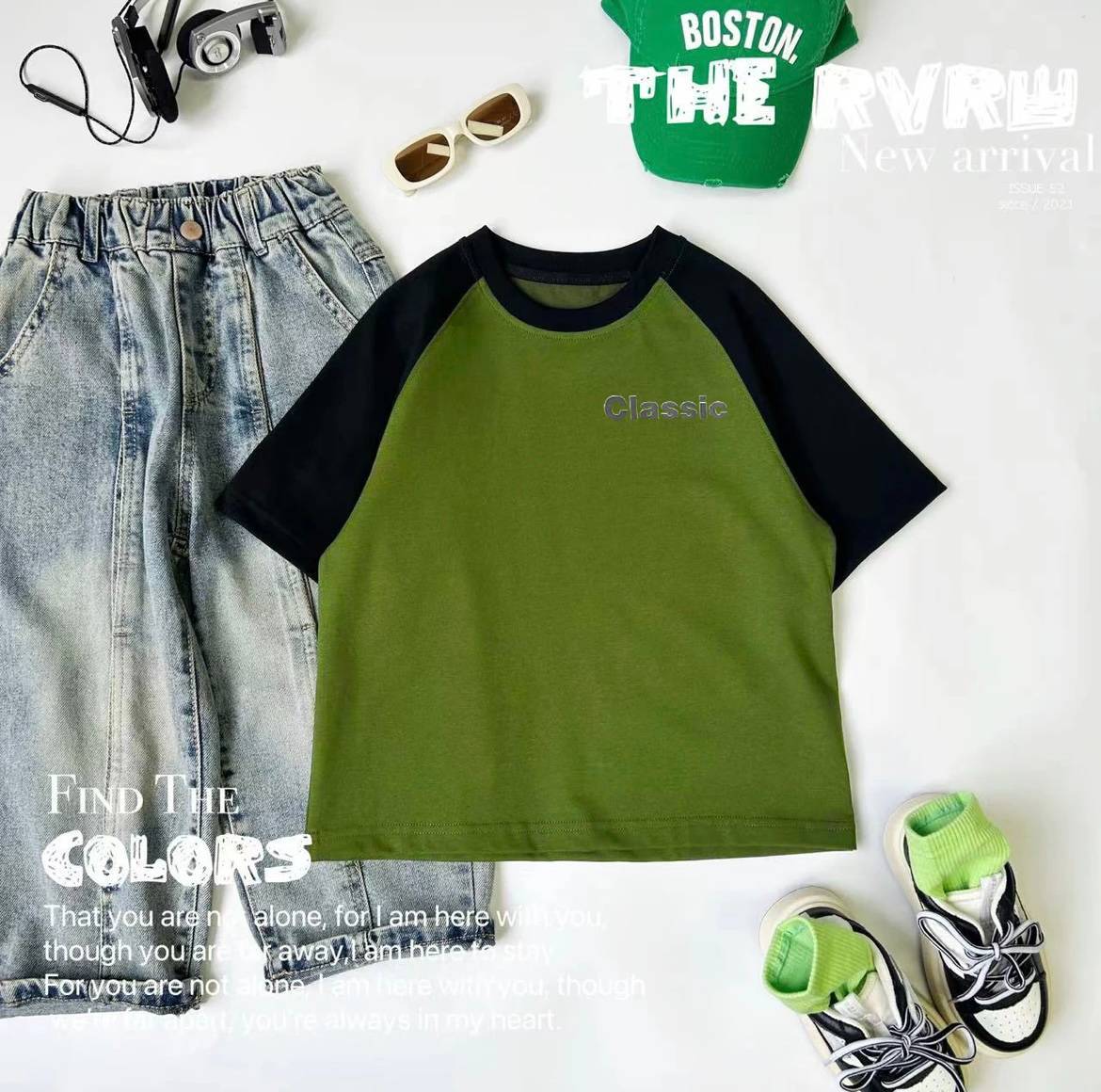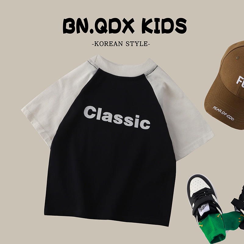 아동용 반팔 티셔츠 여름 소년 소녀 부모-자식 여름 착용 한국 스타일 컬러 매칭 다용도 패션 100 순면 탑