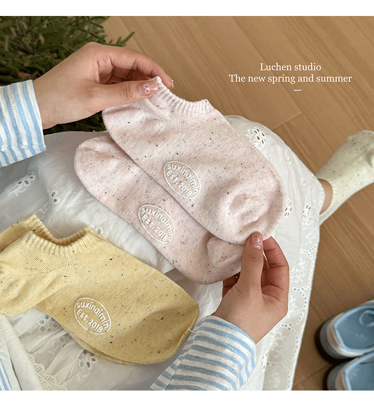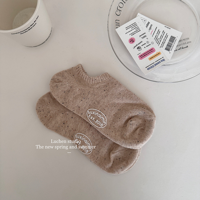 크림 포인트 원사 보트 양말 여성용 얕은 입 봄과 여름 얇은 한국 스타일 Ins 편지 미끄럼 방지 짧은 양말