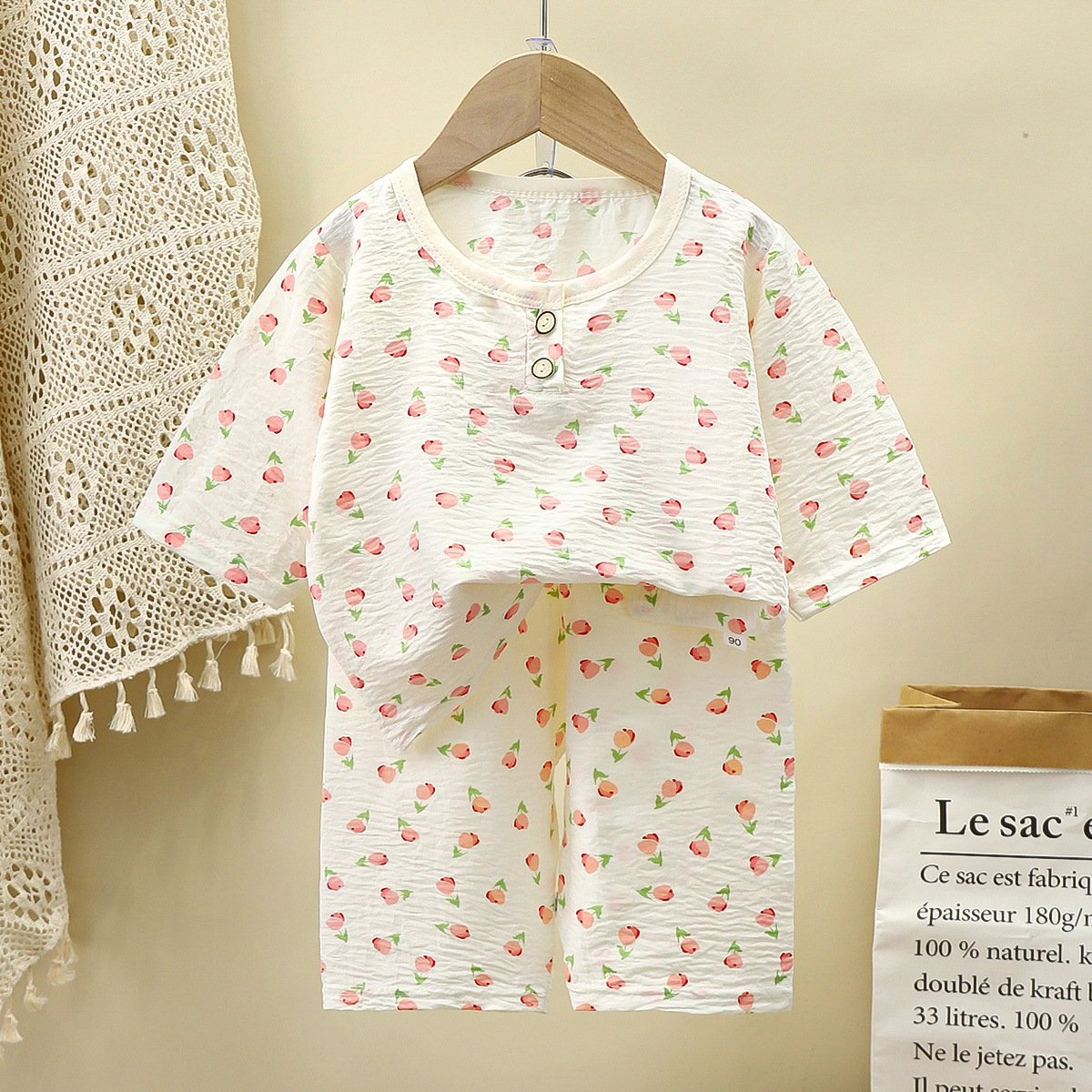 어린이 여름 홈 옷 남학생 얇은 잠옷 어린이 에어컨 옷 여아 캐주얼 한국식 미드 슬리브 세트스토어 가기