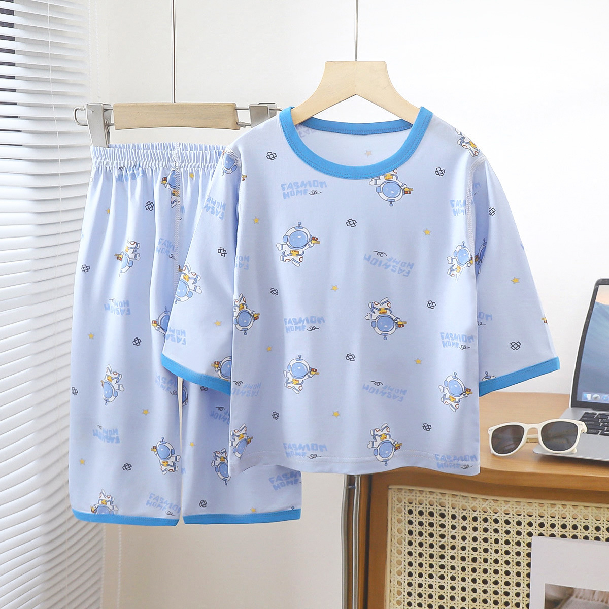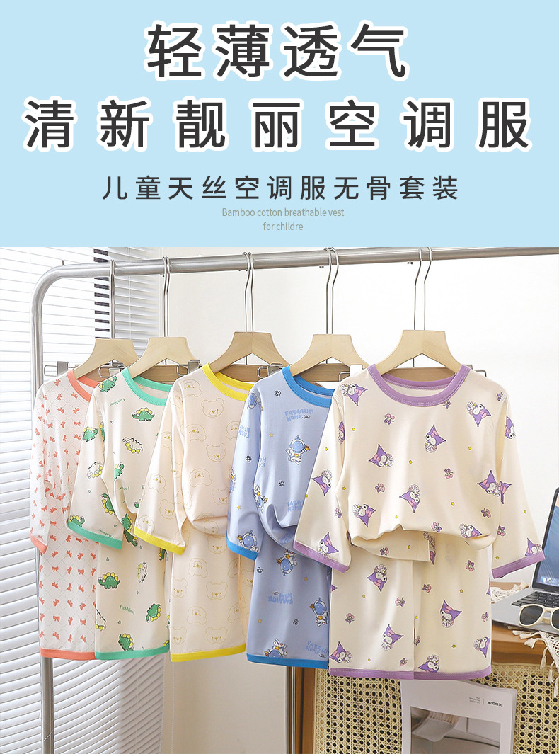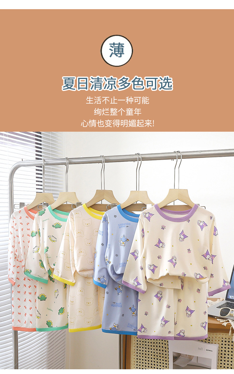 아동용 가정복 긴팔 양복 여름 모달 얼음 느낌 남성과 여성 아기 얇은 아동용 잠옷 에어컨 양복스토어 가기