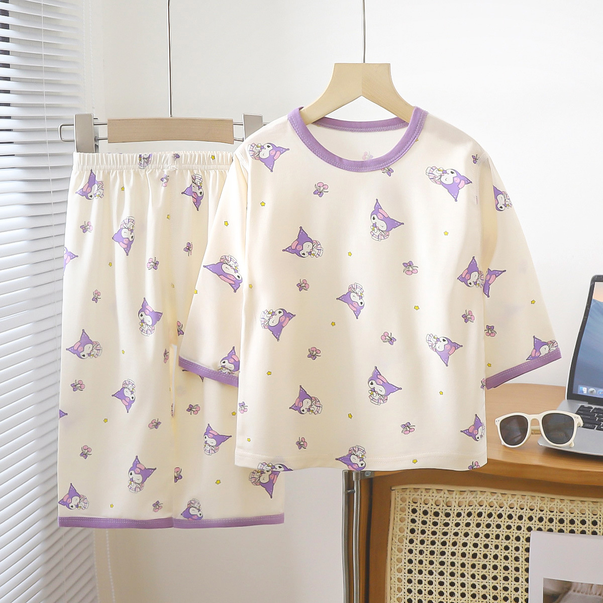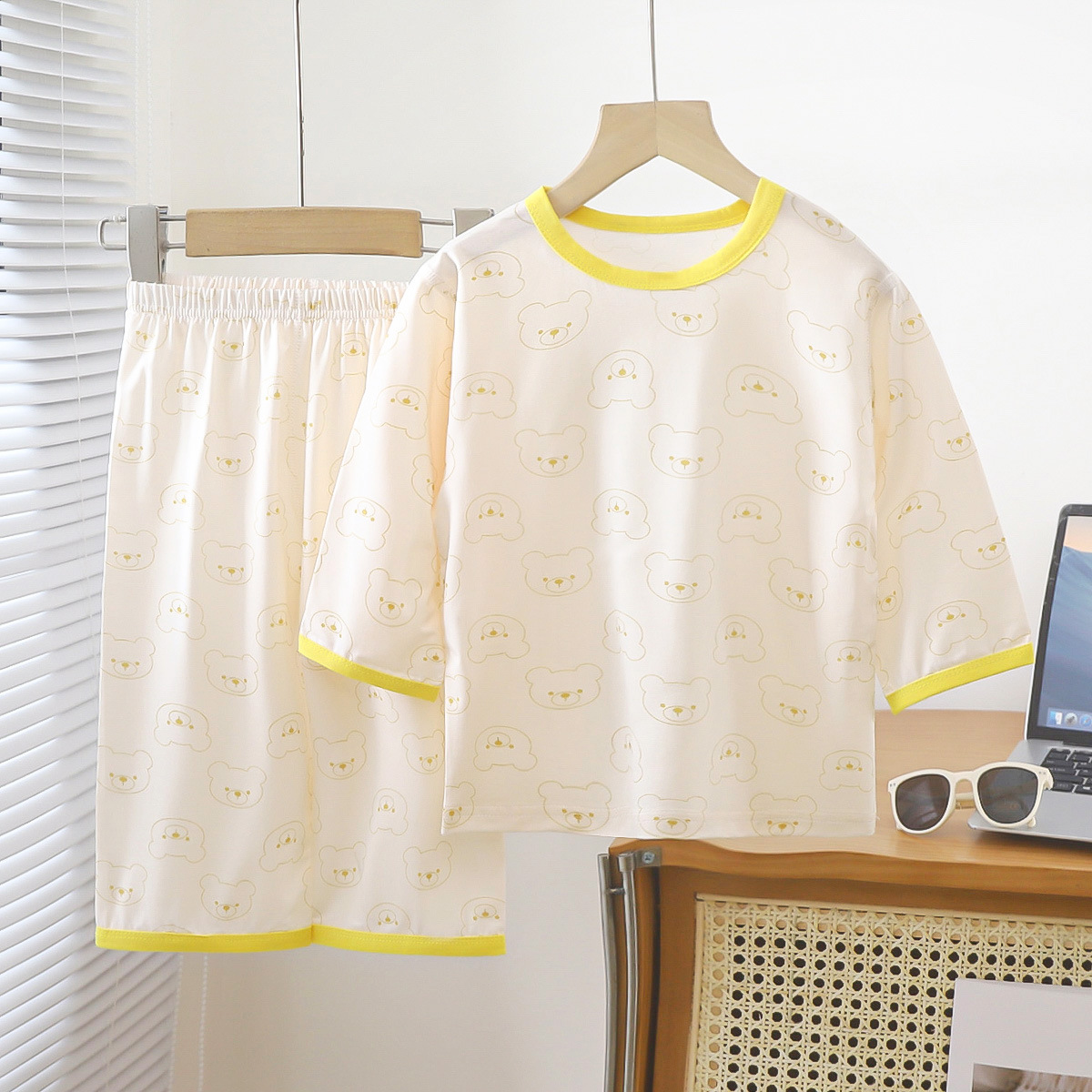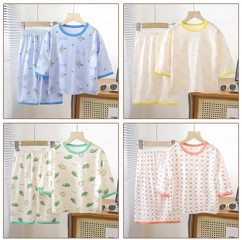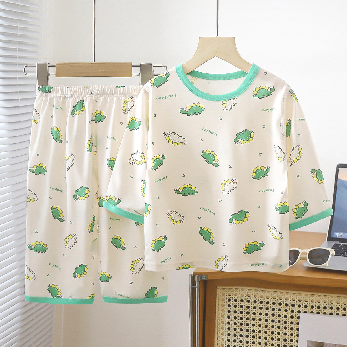 아동용 가정복 긴팔 양복 여름 모달 얼음 느낌 남성과 여성 아기 얇은 아동용 잠옷 에어컨 양복스토어 가기