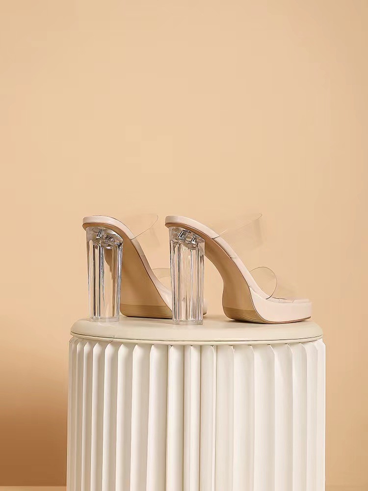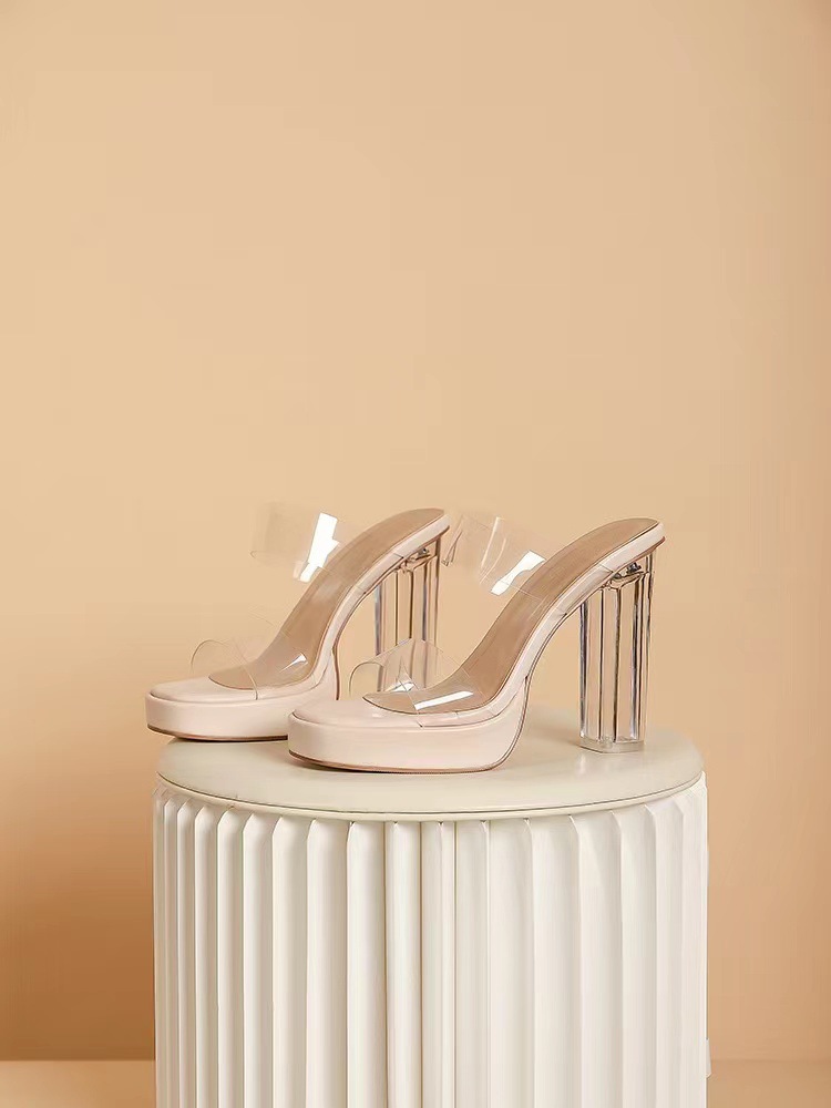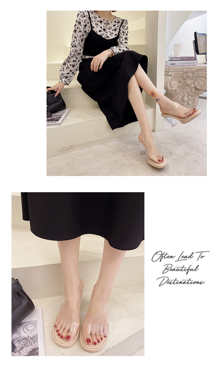 크리스탈 슬리퍼 여성의 2024 여름 아웃 경고 패션 요정 스타일 투명 하이힐 하이힐 샌들