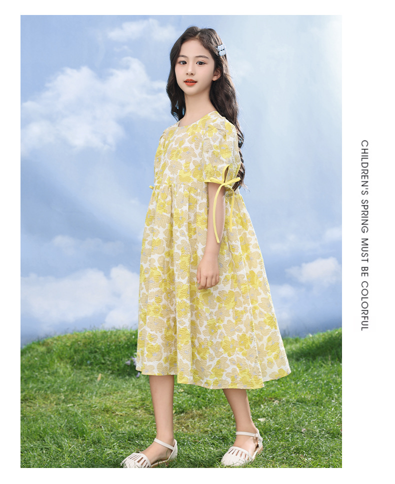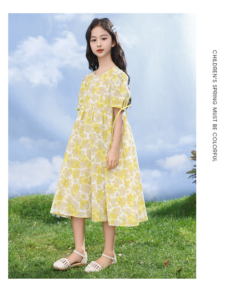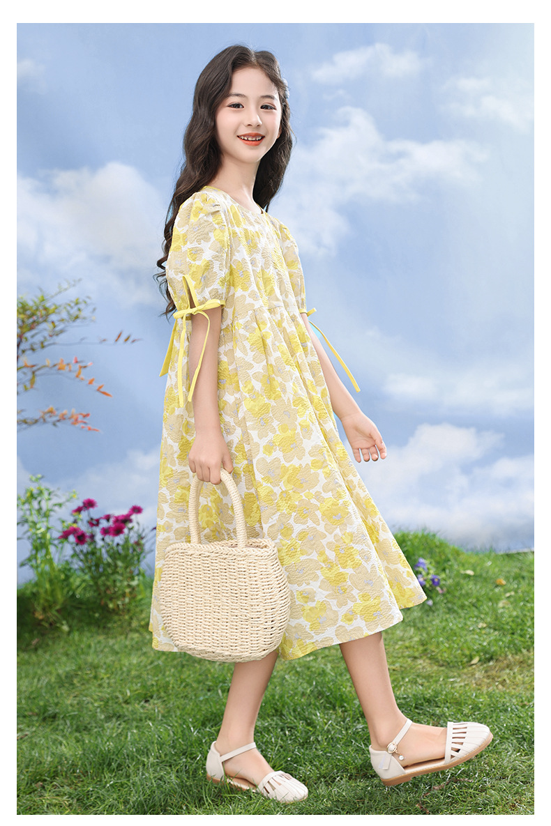 여자 드레스 2025 여름 새로운 스타일 어린이 패션 꽃무늬 드레스, 큰 어린이 공주 드레스, 아기 요정 드레스