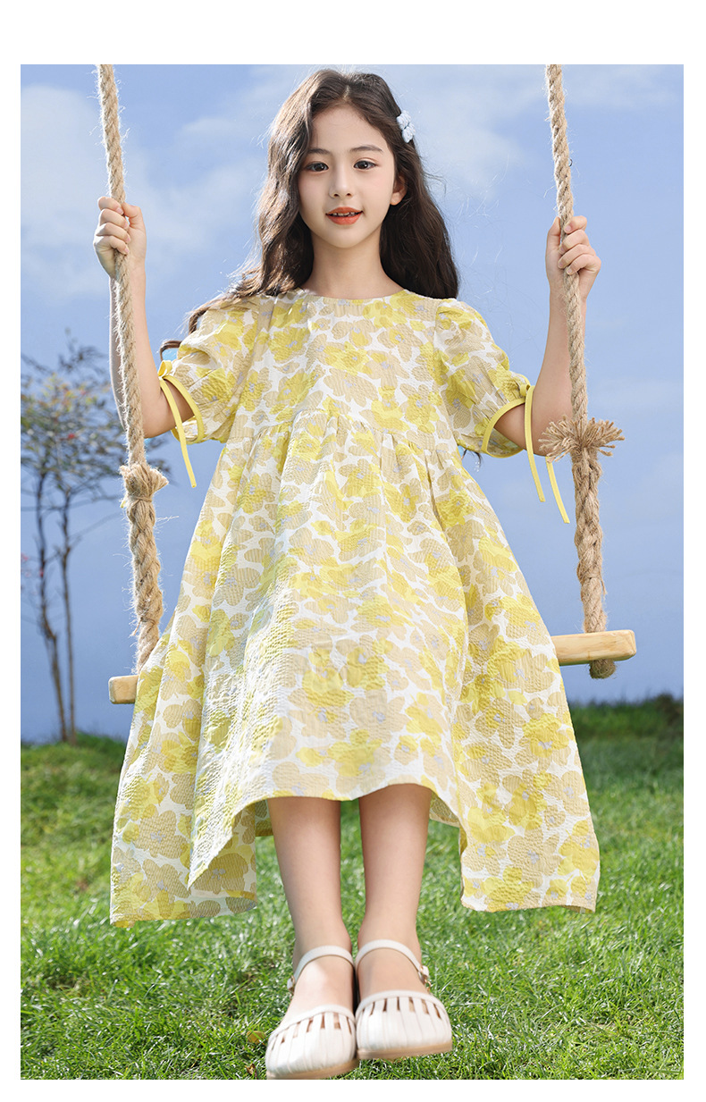 여자 드레스 2025 여름 새로운 스타일 어린이 패션 꽃무늬 드레스, 큰 어린이 공주 드레스, 아기 요정 드레스스토어 가기